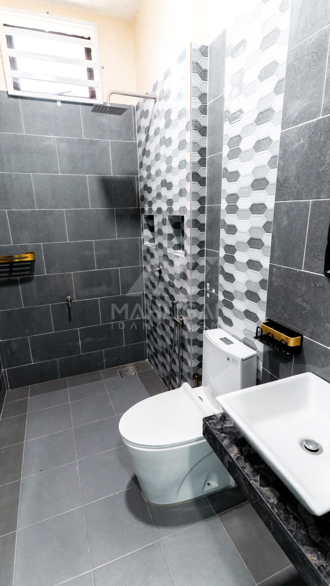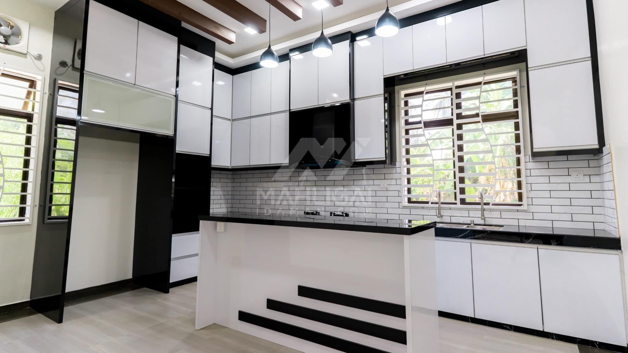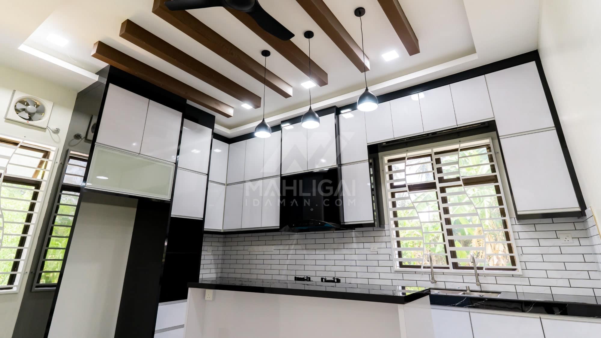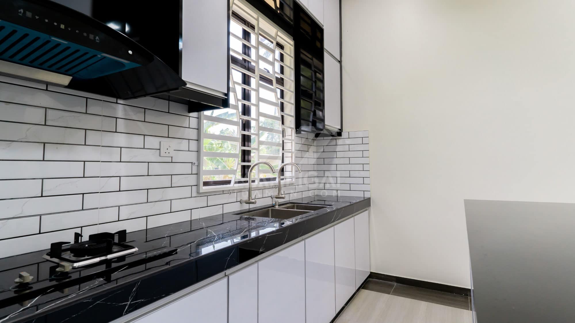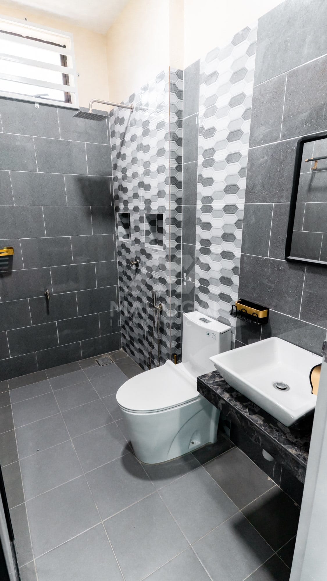 Banglo ini dibina dengan spesifikasi asas Pakej Silver dengan penambahan aksesori iaitu pemasangan cornice pada keseluruhan tingkap dan dinding luar rumah, groove line pada dinding di bahagian luar rumah.