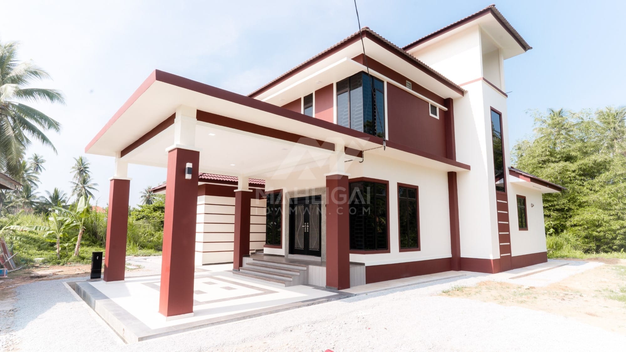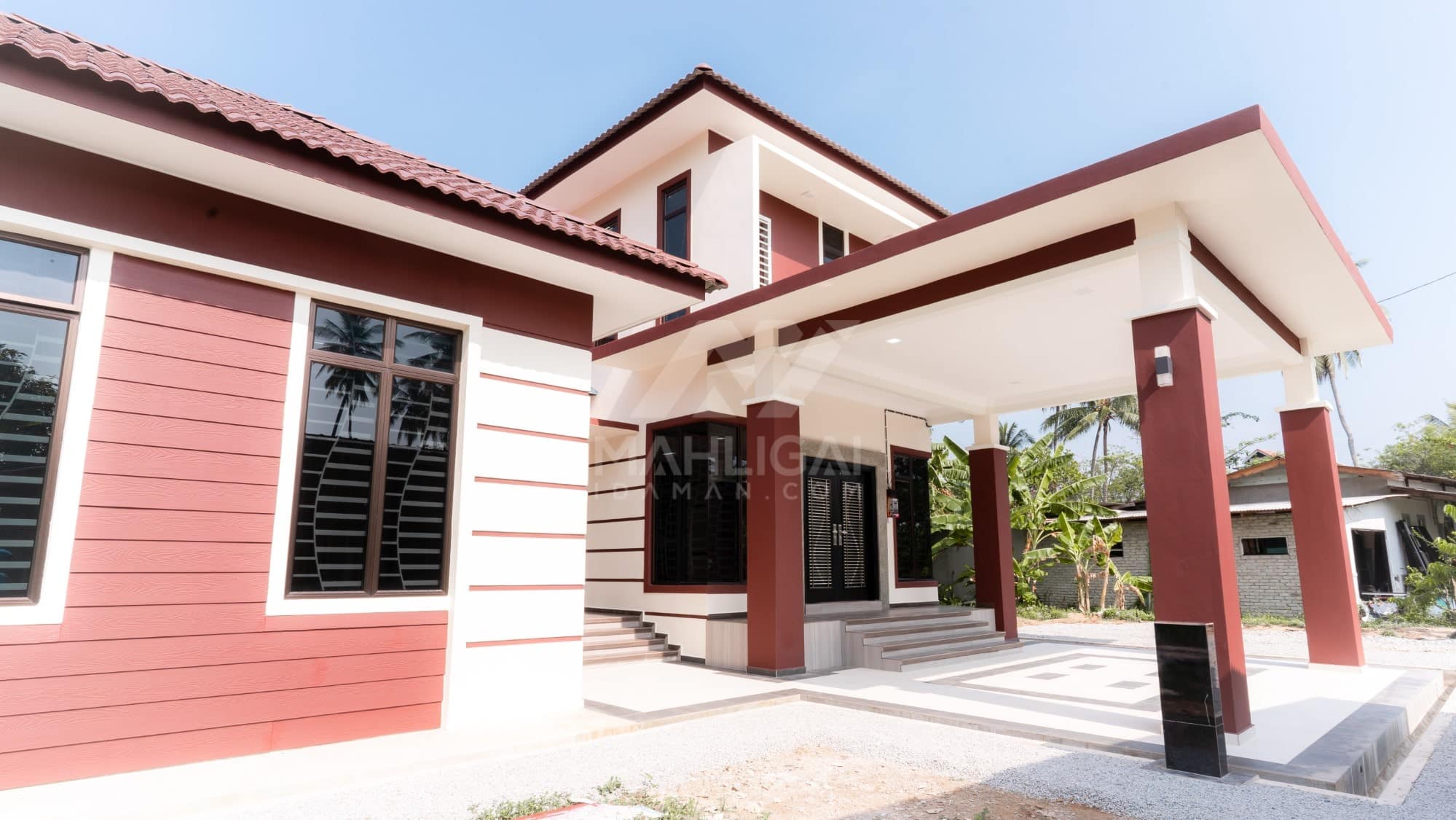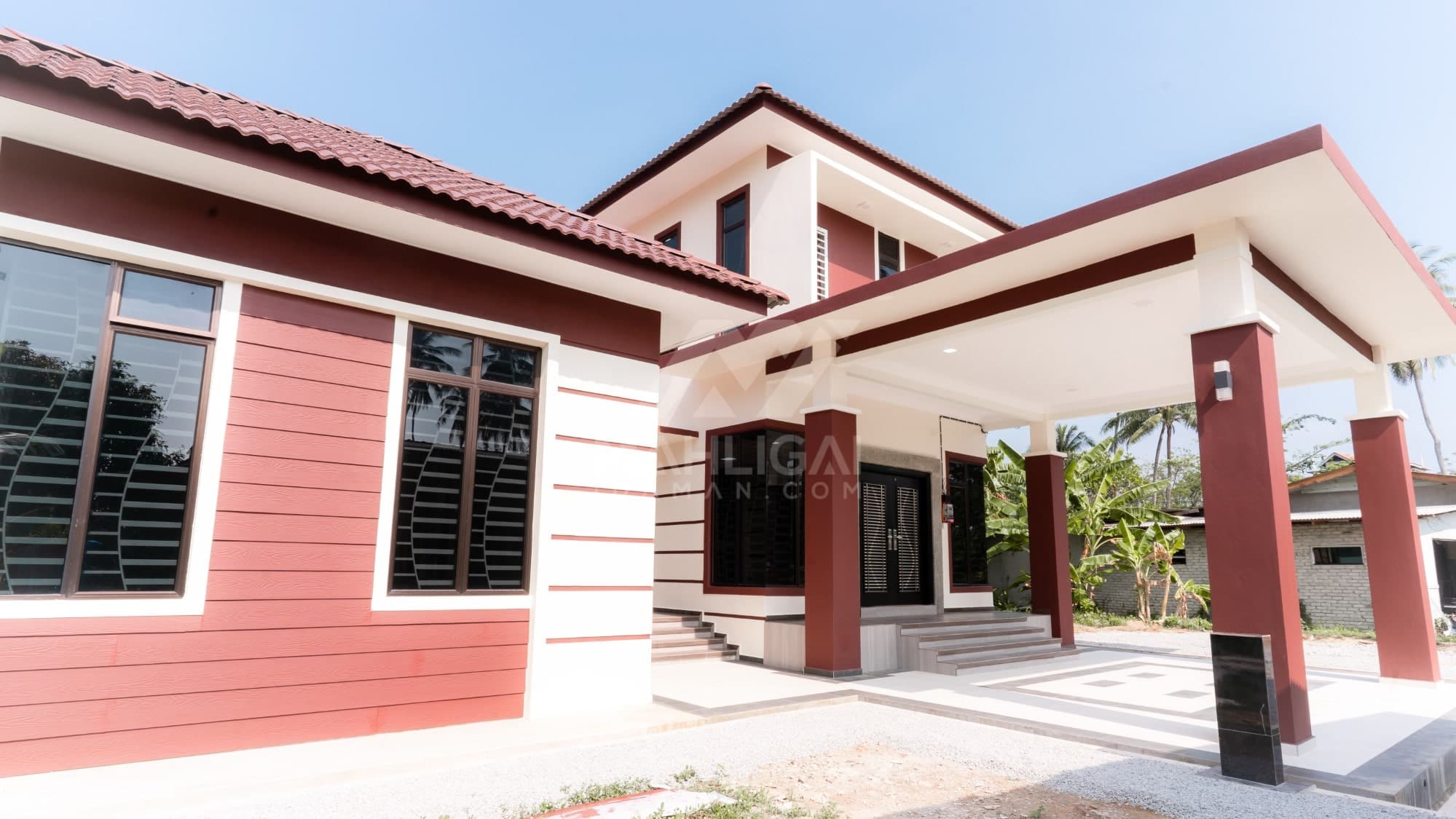 Kini banglo 2 tingkat milik klien kami Tuan Cik Rosdi telah siap dibina sepenuhnya di Bachok, Kelantan. Banglo ini dilengkapi dengan lima bilik tidur dan tiga bilik air. Banglo yang berkeluasan 3,176 kaki persegi ini menggabungkan ciri-ciri banglo moden iaitu dari segi rekabentuk dalaman dan luaran yang sangat menarik. Dari segi penggunaan tona cream dan coklat. Bahagian dalam rumah pula mereka memilih warna biru dan ungu, menaikan lagi seri dan kemewahan dalam rumah.