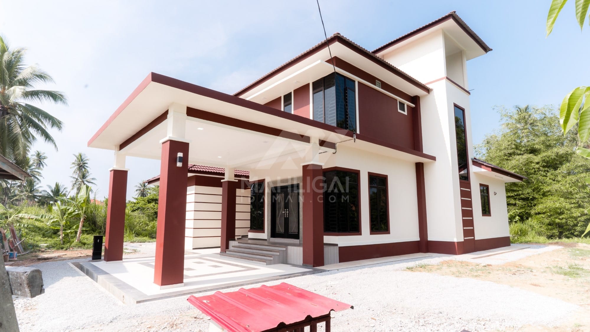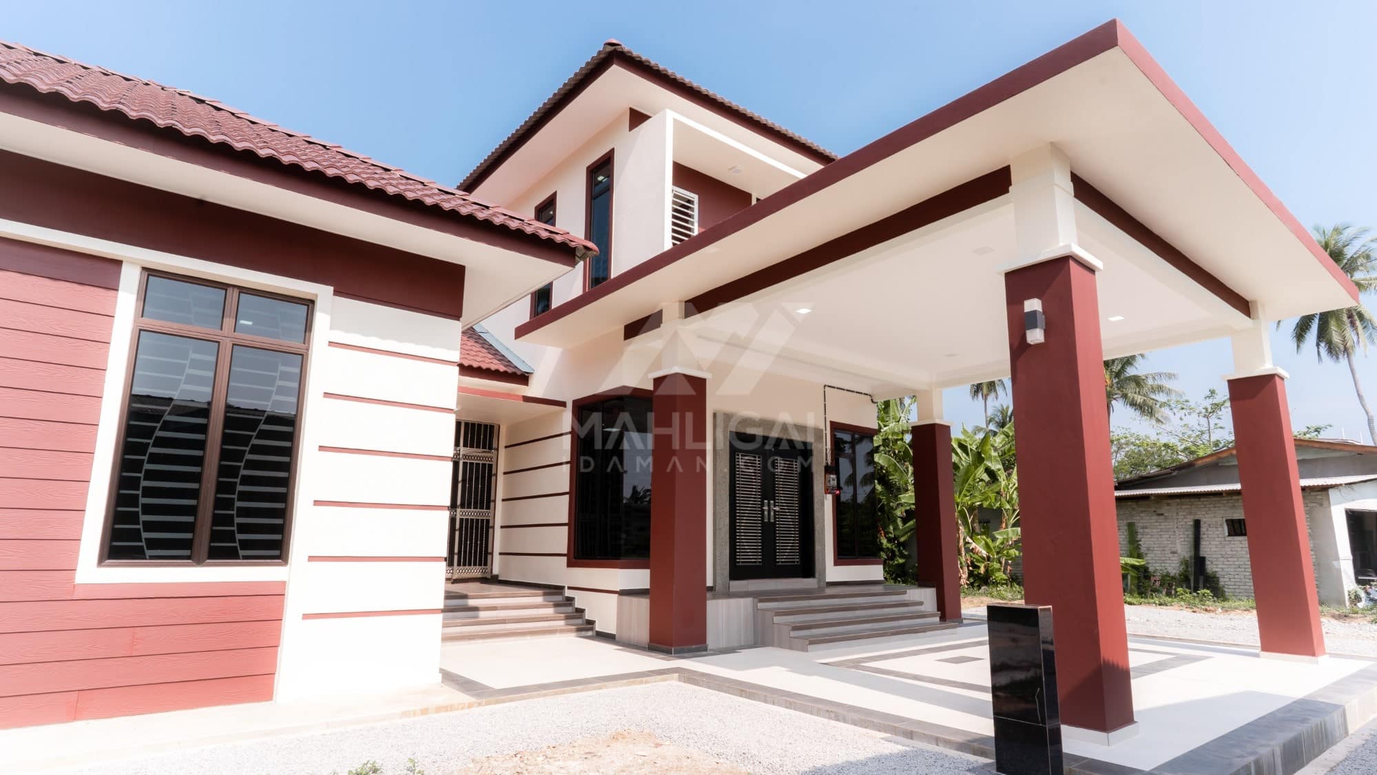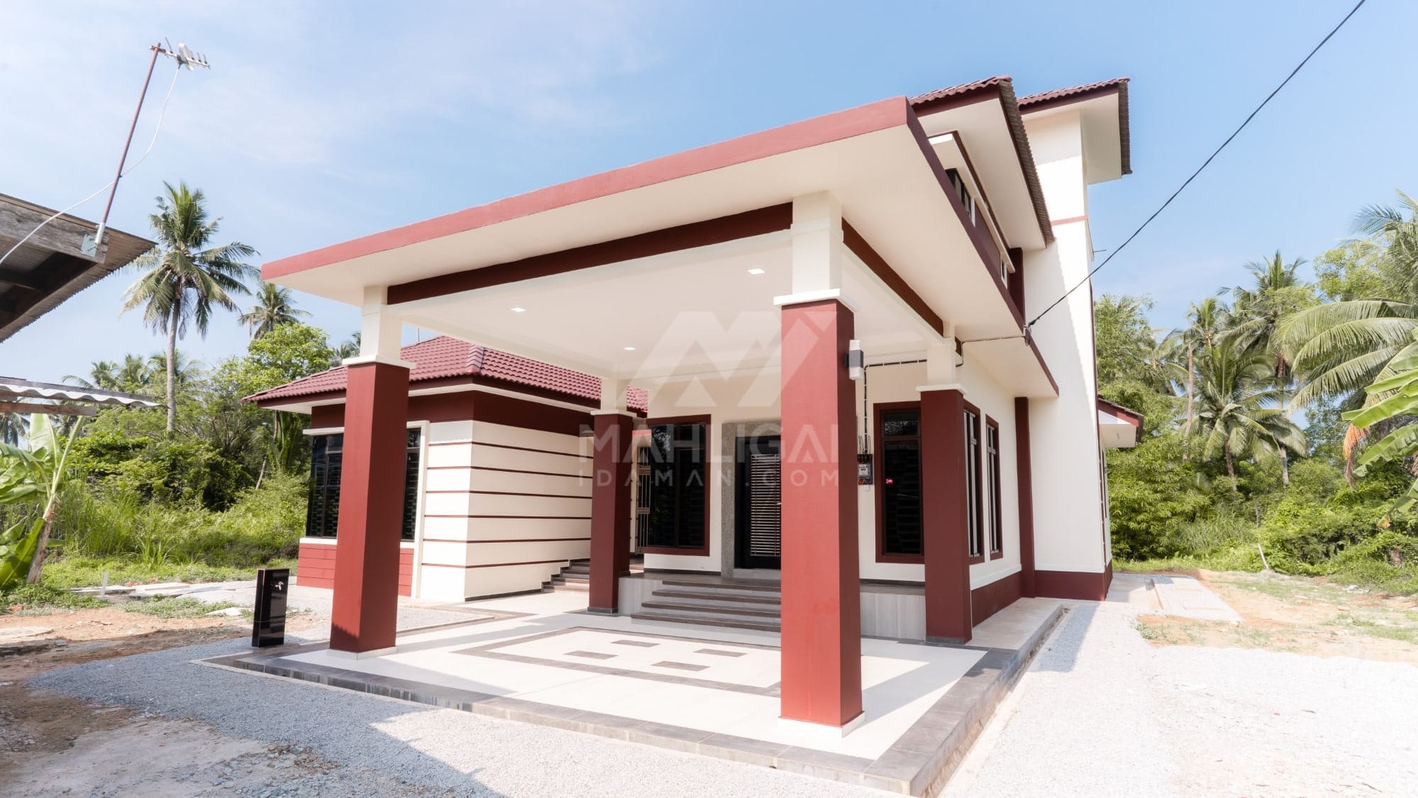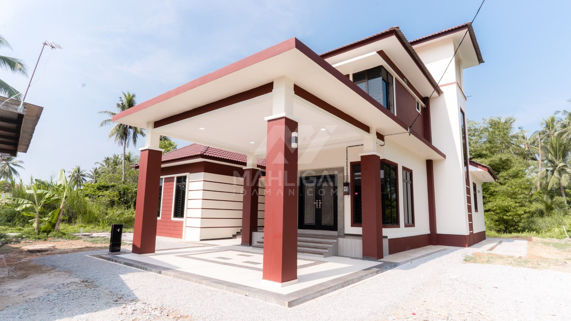 Kini banglo 2 tingkat milik klien kami Tuan Cik Rosdi telah siap dibina sepenuhnya di Bachok, Kelantan. Banglo ini dilengkapi dengan lima bilik tidur dan tiga bilik air. Banglo yang berkeluasan 3,176 kaki persegi ini menggabungkan ciri-ciri banglo moden iaitu dari segi rekabentuk dalaman dan luaran yang sangat menarik. Dari segi penggunaan tona cream dan coklat. Bahagian dalam rumah pula mereka memilih warna biru dan ungu, menaikan lagi seri dan kemewahan dalam rumah.