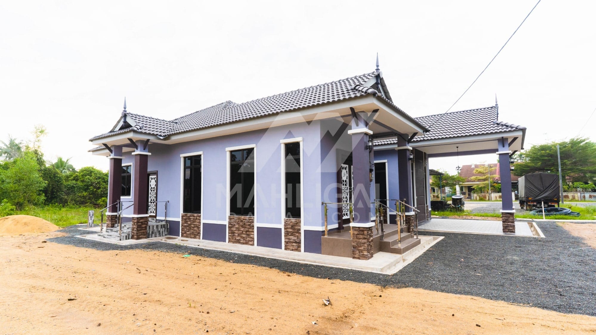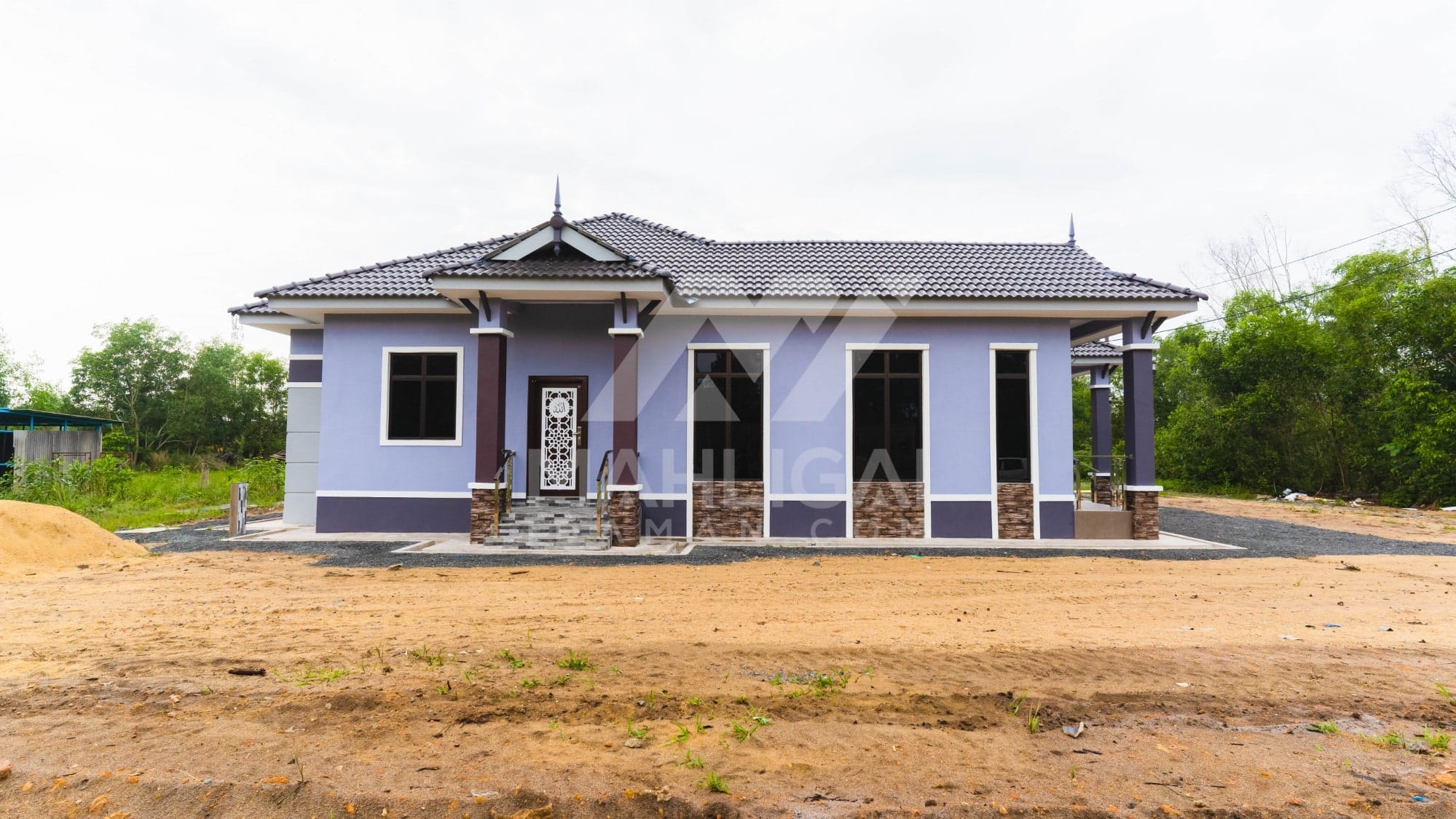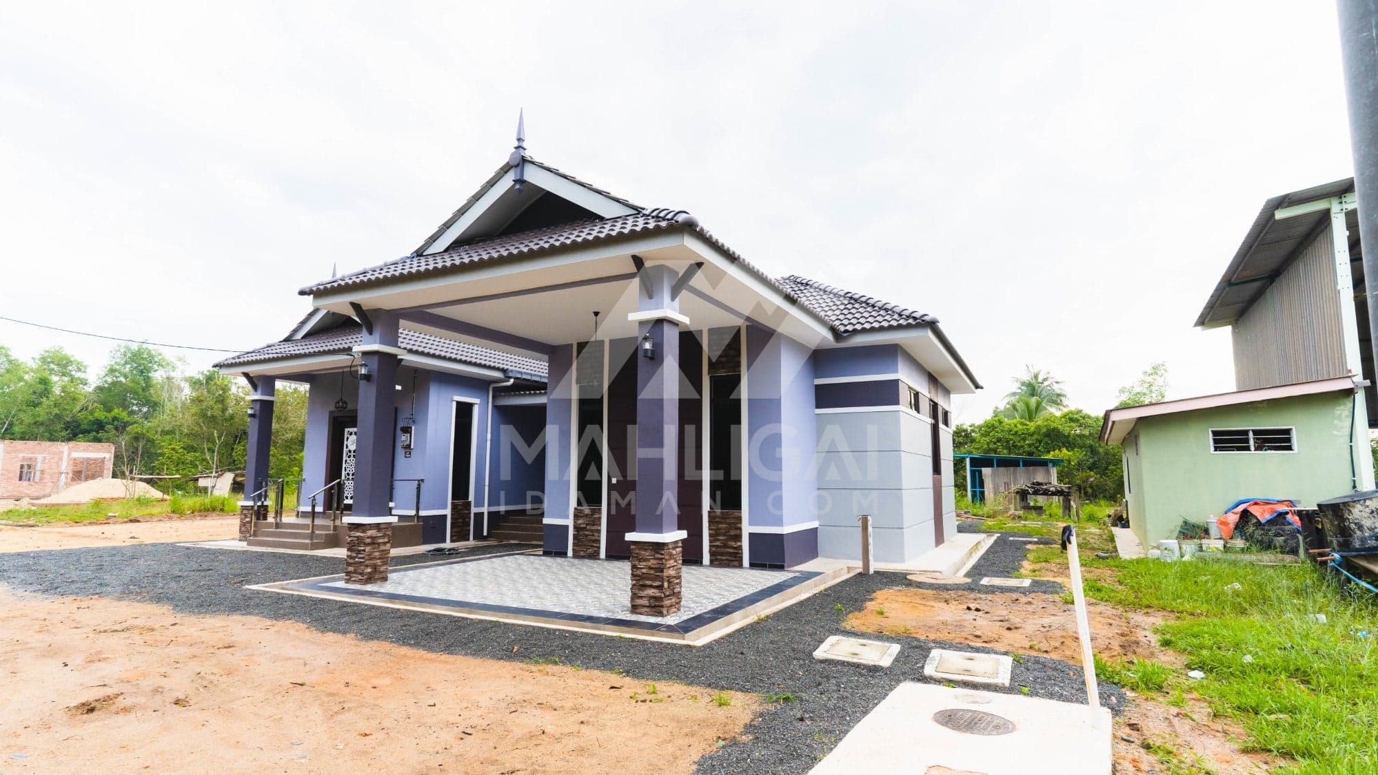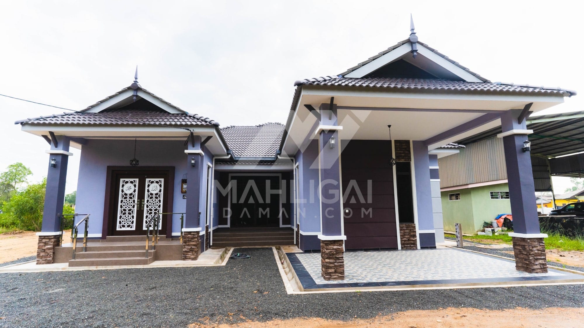 Kini banglo 1 tingkat milik klien kami Tuan Yusop telah siap dibina sepenuhnya di Paka, Terengganu. Banglo ini dilengkapi dengan lima bilik tidur dan tiga bilik air. Banglo yang berkeluasan 2,157 kaki persegi ini menggabungkan ciri-ciri banglo moden iaitu dari segi rekabentuk dalaman dan luaran yang sangat menarik. Dari segi penggunaan tona violet dan dark violet. Bahagian dalam rumah pula mereka memilih warna merah jambu dan ungu, menaikan lagi seri dan kemewahan dalam rumah.