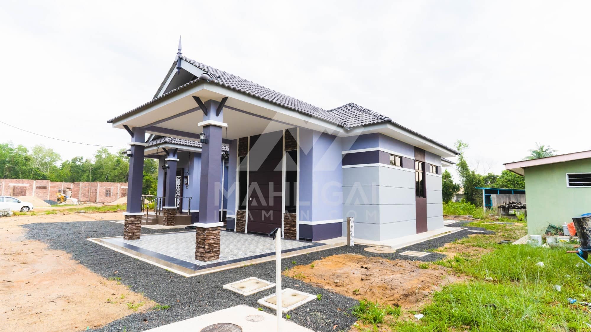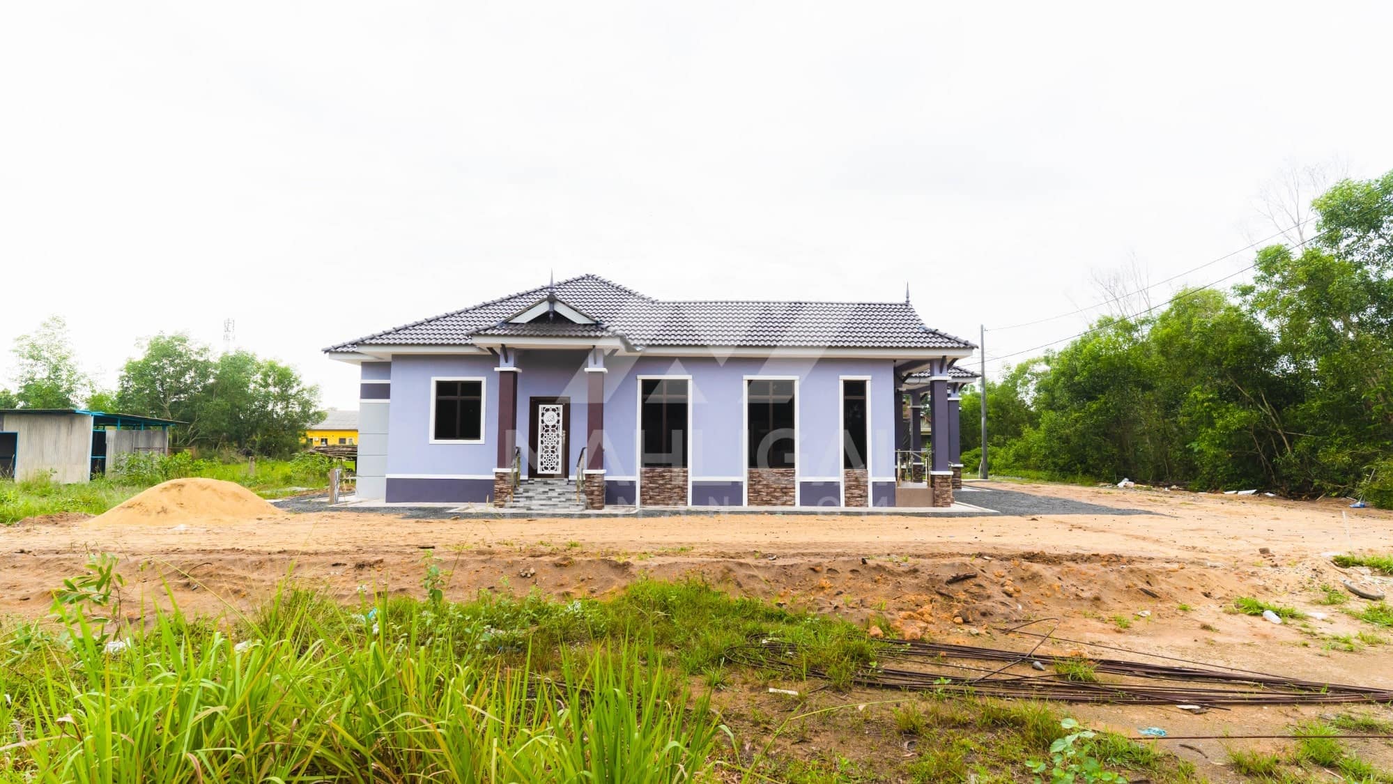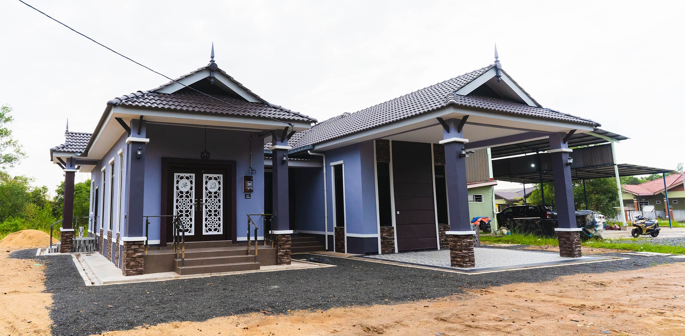 Kini banglo 1 tingkat milik klien kami Tuan Yusop telah siap dibina sepenuhnya di Paka, Terengganu. Banglo ini dilengkapi dengan lima bilik tidur dan tiga bilik air. Banglo yang berkeluasan 2,157 kaki persegi ini menggabungkan ciri-ciri banglo moden iaitu dari segi rekabentuk dalaman dan luaran yang sangat menarik. Dari segi penggunaan tona violet dan dark violet. Bahagian dalam rumah pula mereka memilih warna merah jambu dan ungu, menaikan lagi seri dan kemewahan dalam rumah.