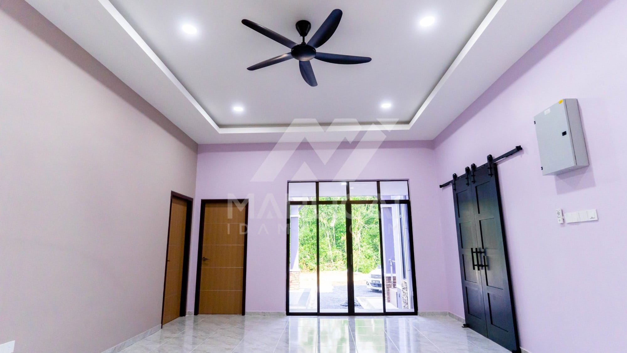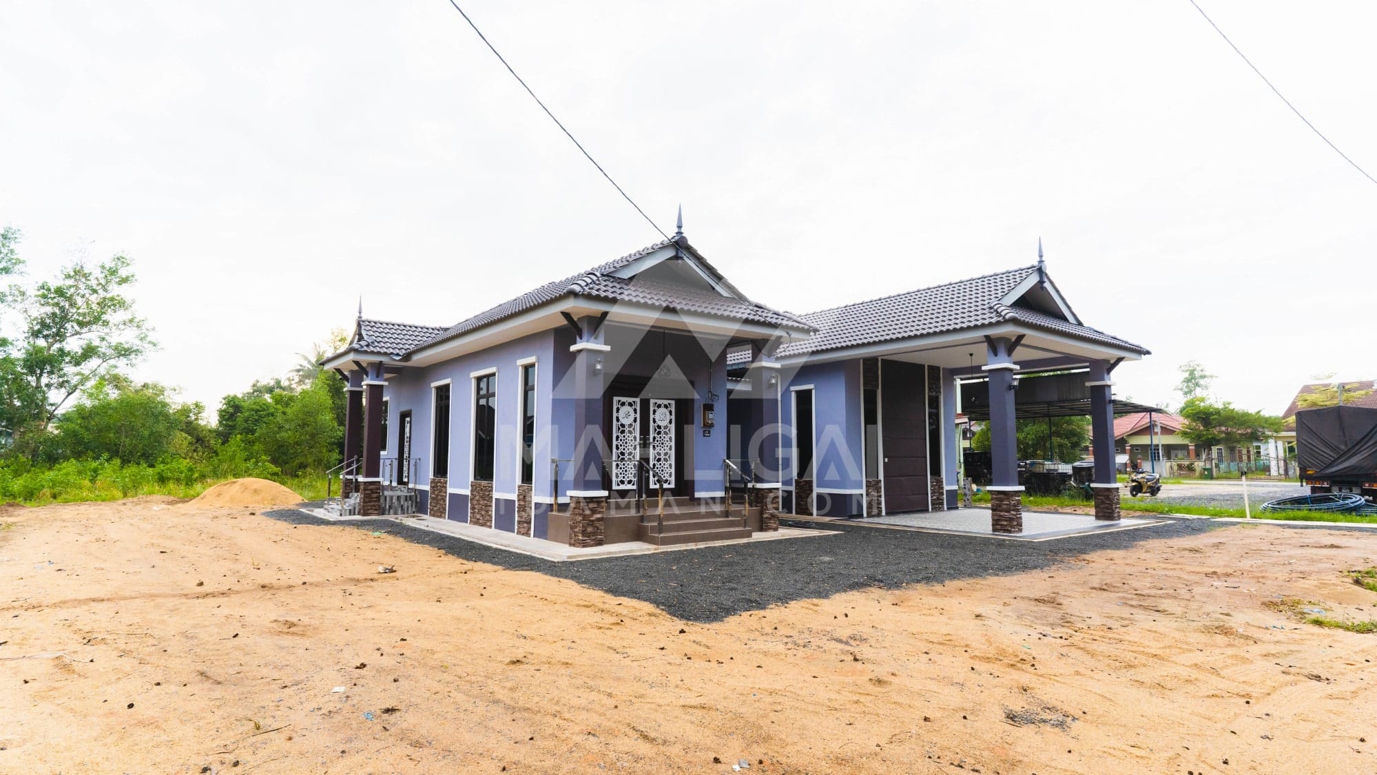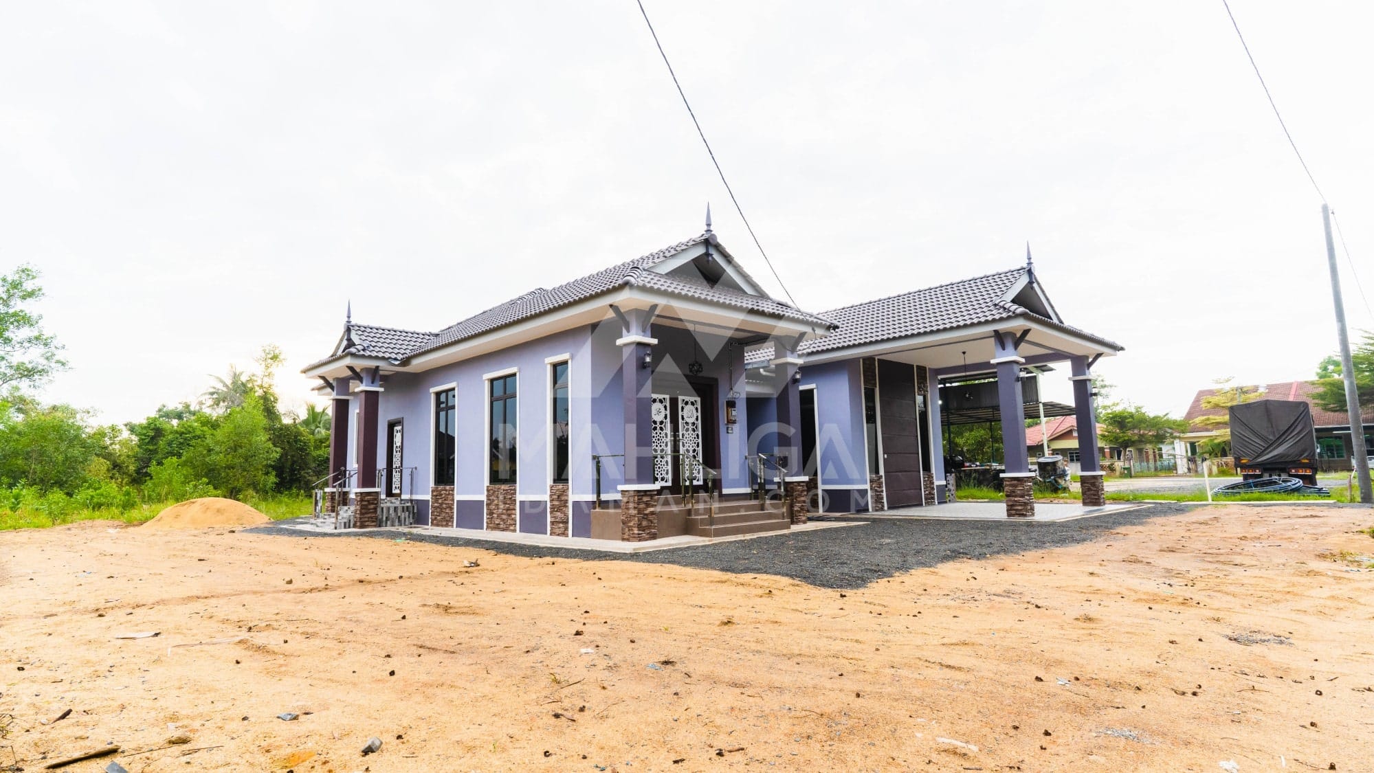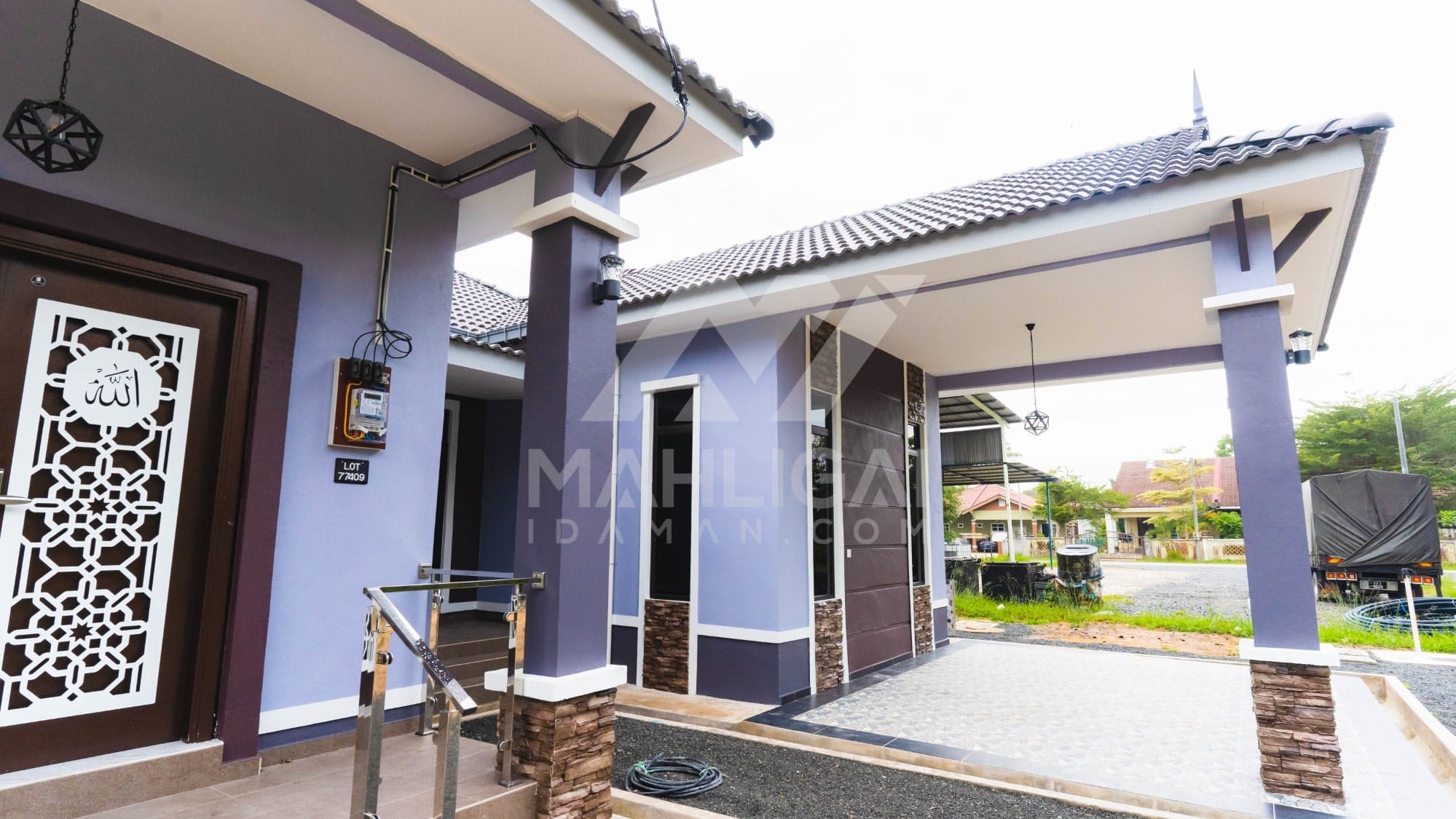 Kini banglo 1 tingkat milik klien kami Tuan Yusop telah siap dibina sepenuhnya di Paka, Terengganu. Banglo ini dilengkapi dengan lima bilik tidur dan tiga bilik air. Banglo yang berkeluasan 2,157 kaki persegi ini menggabungkan ciri-ciri banglo moden iaitu dari segi rekabentuk dalaman dan luaran yang sangat menarik. Dari segi penggunaan tona violet dan dark violet. Bahagian dalam rumah pula mereka memilih warna merah jambu dan ungu, menaikan lagi seri dan kemewahan dalam rumah.