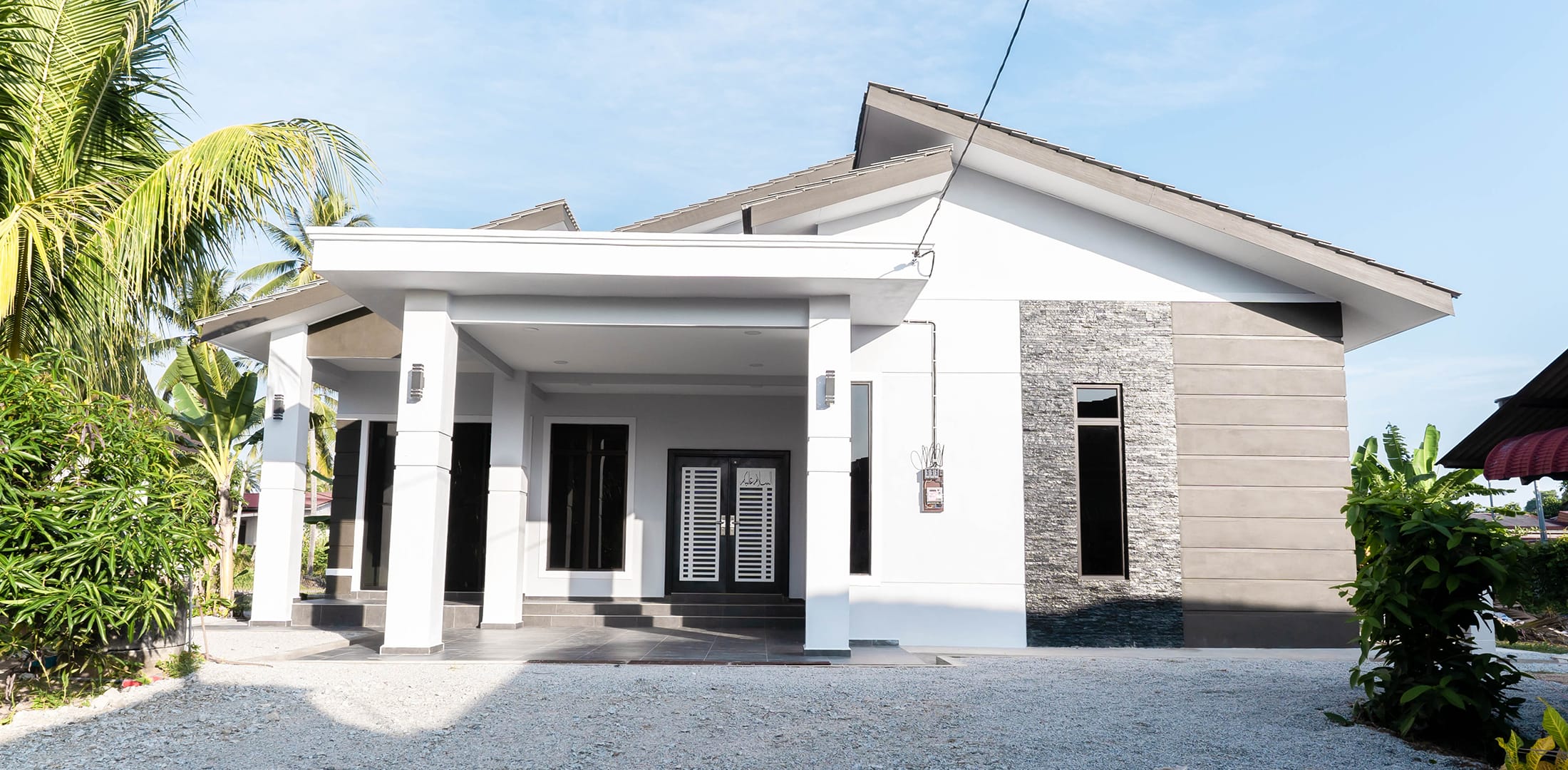 Kini banglo 1 tingkat milik klien kami Puan Anis Izzati telah siap dibina sepenuhnya di Kg Chempaka, Kelantan. Banglo ini dilengkapi dengan tiga bilik tidur dan dua bilik air. Banglo yang berkeluasan 1,640 kaki persegi ini menggabungkan ciri-ciri banglo moden iaitu dari segi rekabentuk dalaman dan luaran yang sangat menarik. Dari segi penggunaan tona putih dan beige. Bahagian dalam rumah pula mereka memilih warna putih, menaikan lagi seri dan kemewahan dalam rumah.