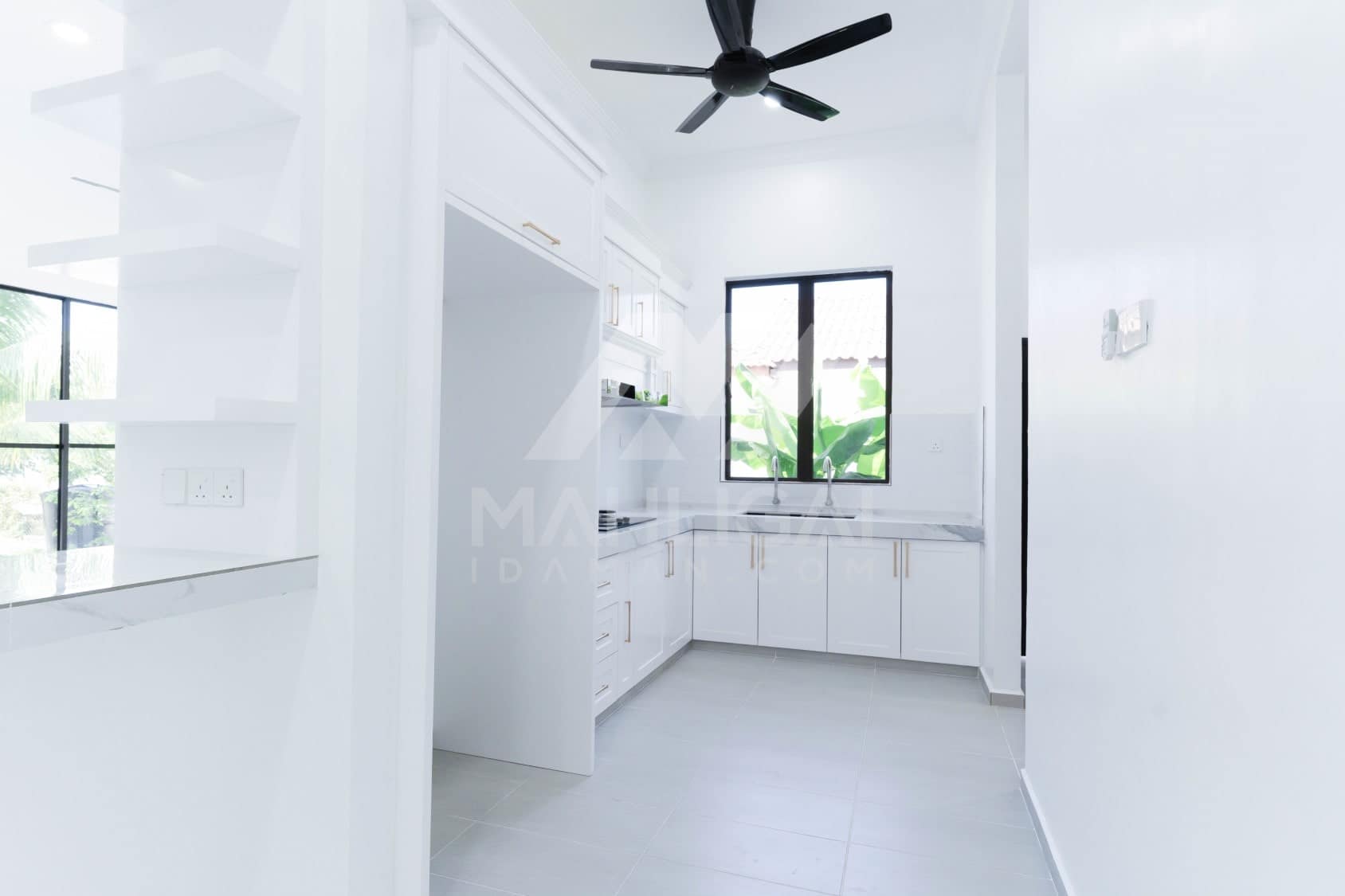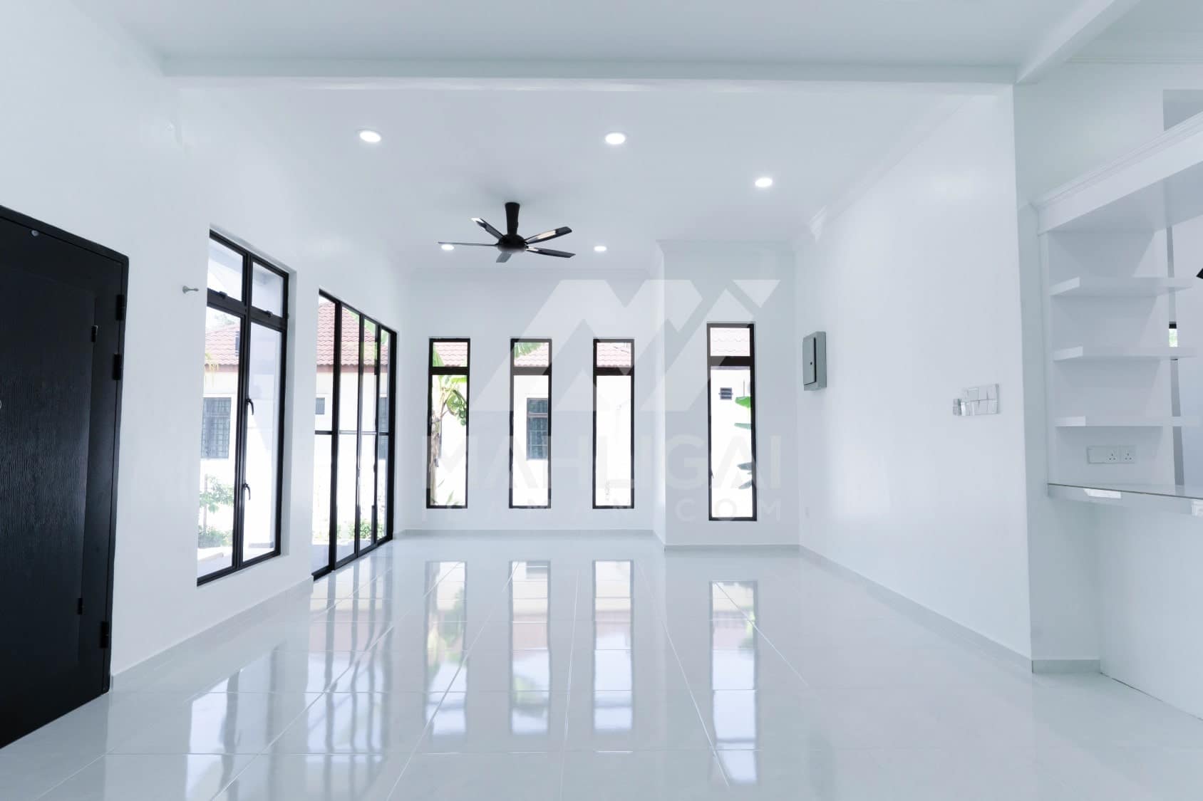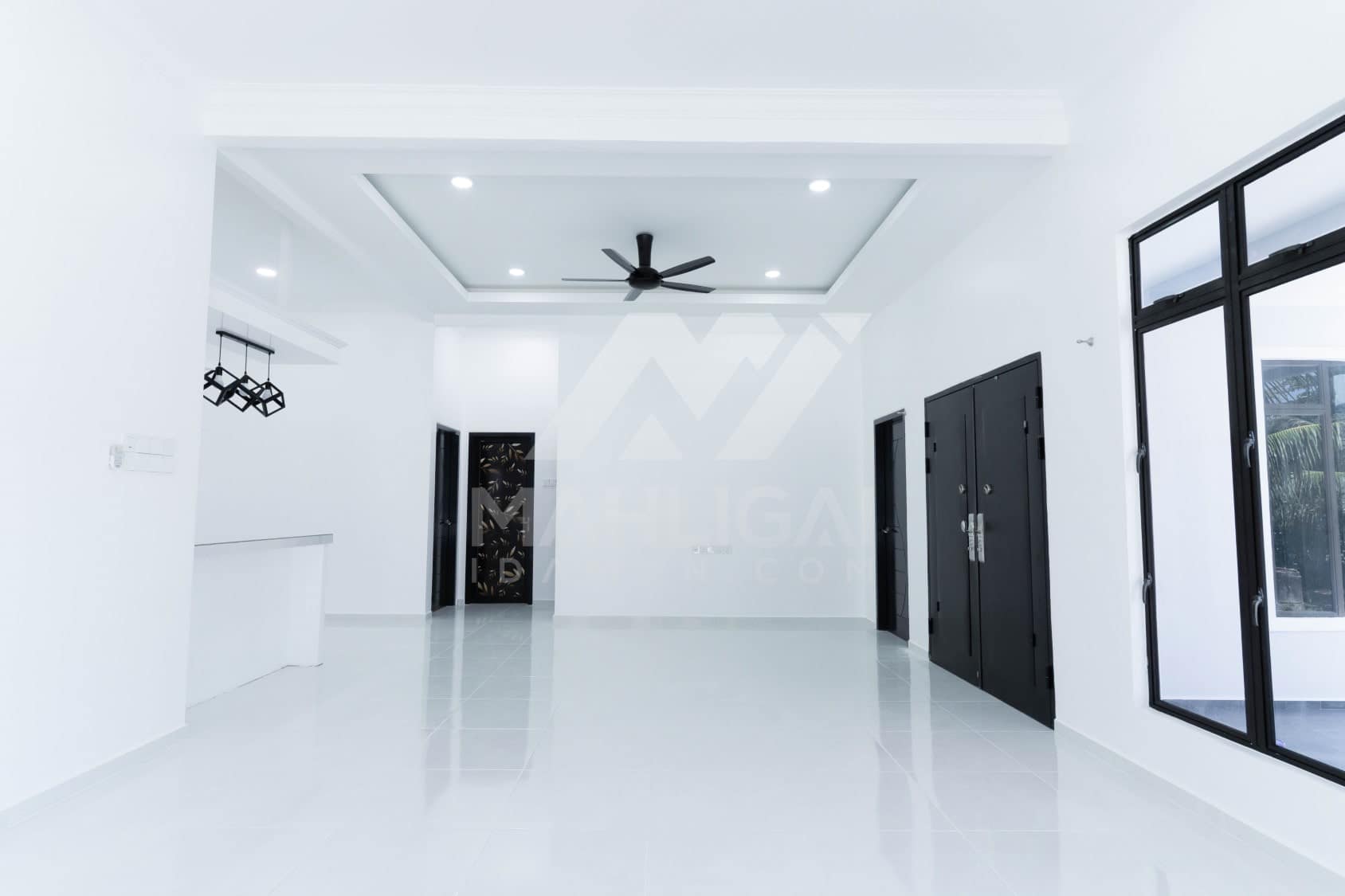 Kini banglo 1 tingkat milik klien kami Puan Anis Izzati telah siap dibina sepenuhnya di Kg Chempaka, Kelantan. Banglo ini dilengkapi dengan tiga bilik tidur dan dua bilik air. Banglo yang berkeluasan 1,640 kaki persegi ini menggabungkan ciri-ciri banglo moden iaitu dari segi rekabentuk dalaman dan luaran yang sangat menarik. Dari segi penggunaan tona putih dan beige. Bahagian dalam rumah pula mereka memilih warna putih, menaikan lagi seri dan kemewahan dalam rumah.