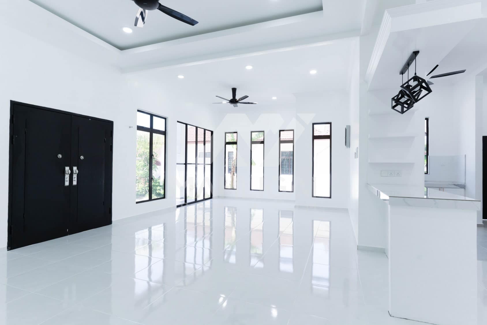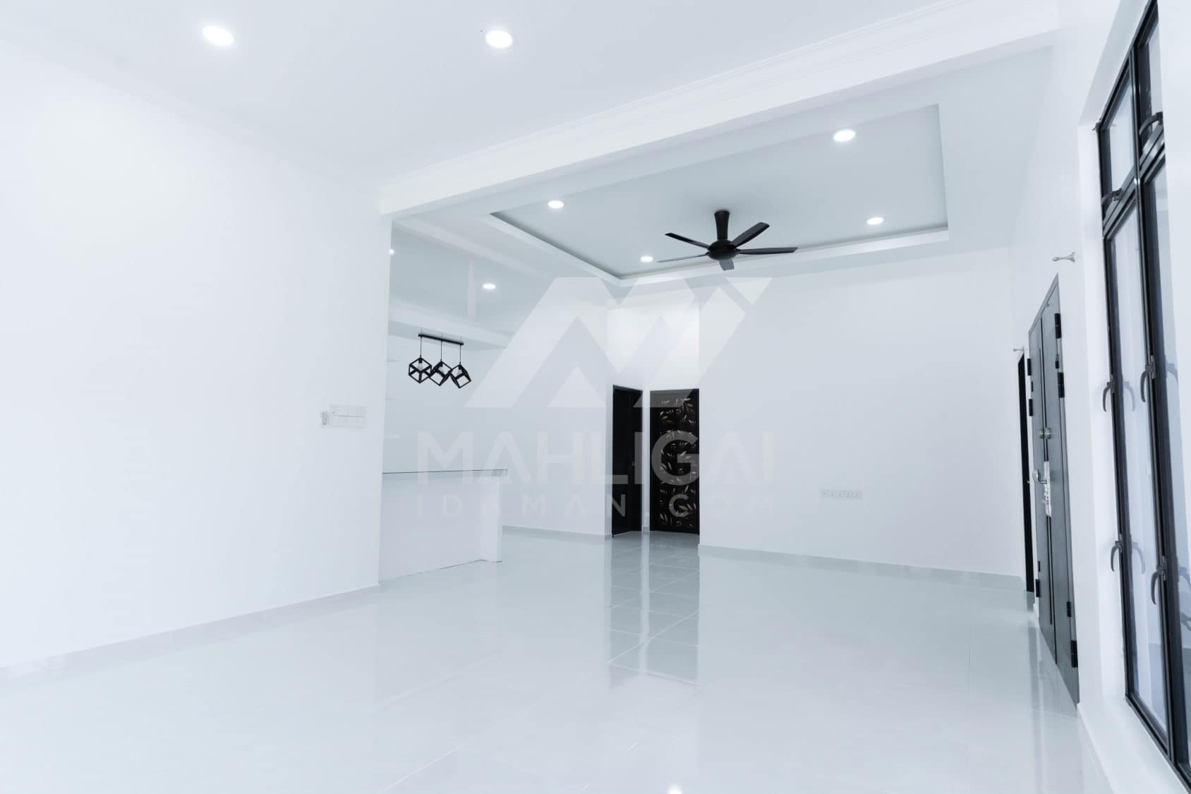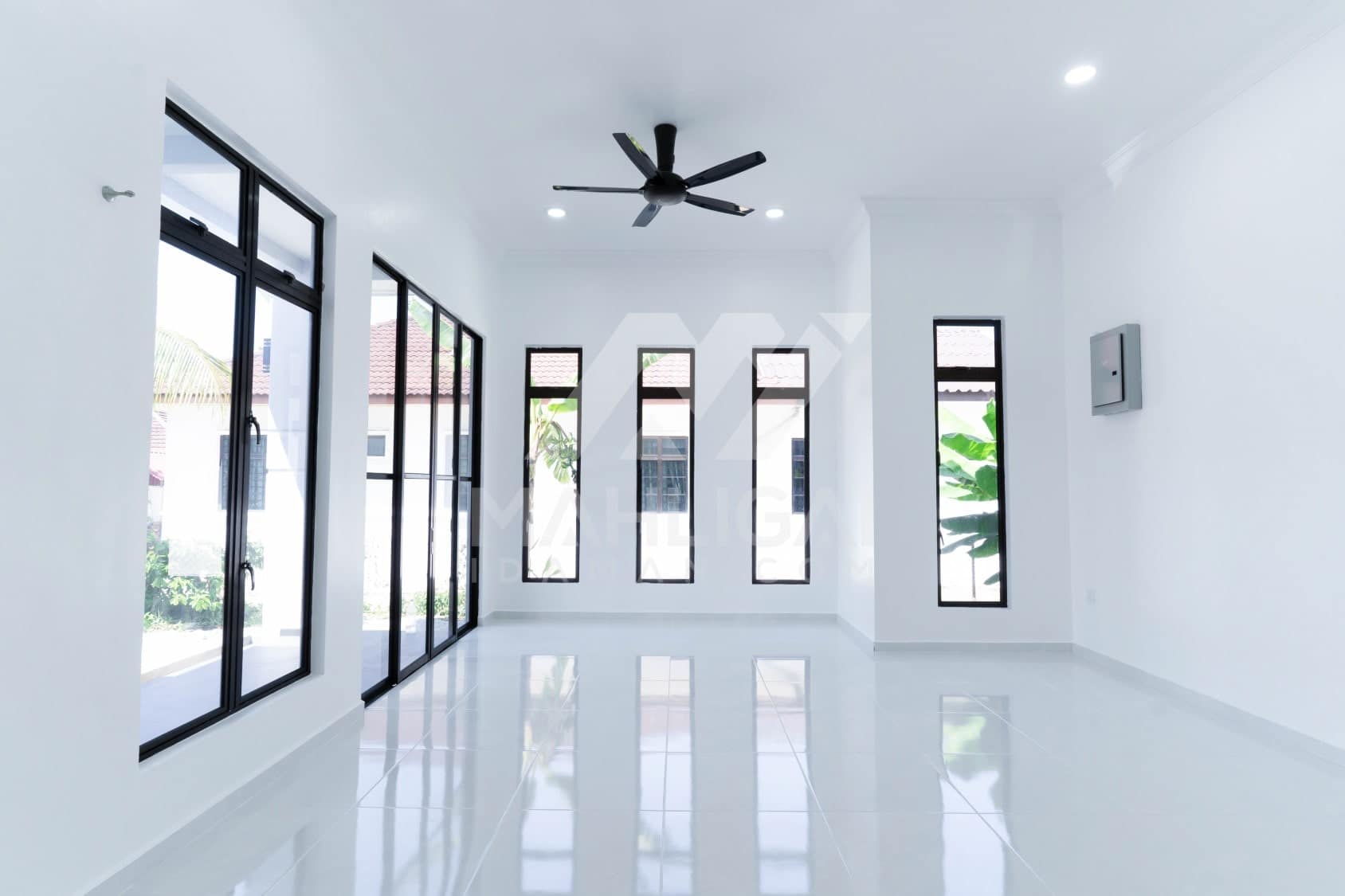 Kini banglo 1 tingkat milik klien kami Puan Anis Izzati telah siap dibina sepenuhnya di Kg Chempaka, Kelantan. Banglo ini dilengkapi dengan tiga bilik tidur dan dua bilik air. Banglo yang berkeluasan 1,640 kaki persegi ini menggabungkan ciri-ciri banglo moden iaitu dari segi rekabentuk dalaman dan luaran yang sangat menarik. Dari segi penggunaan tona putih dan beige. Bahagian dalam rumah pula mereka memilih warna putih, menaikan lagi seri dan kemewahan dalam rumah.