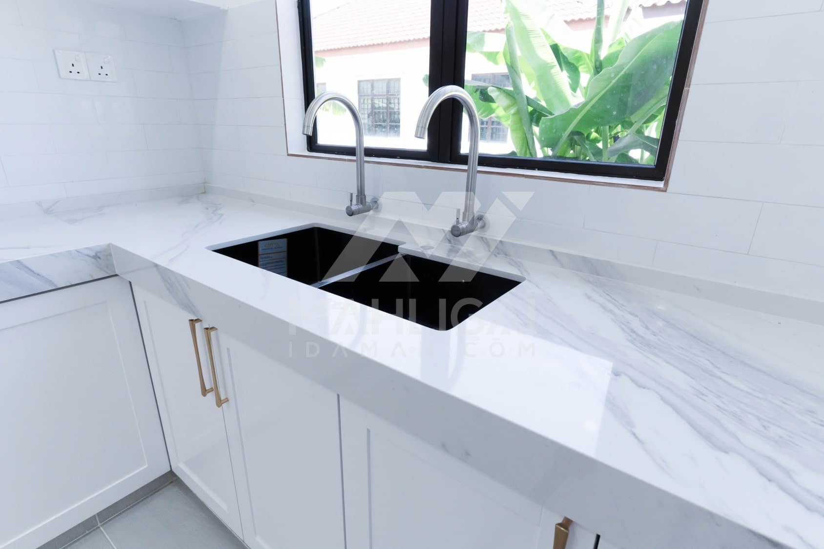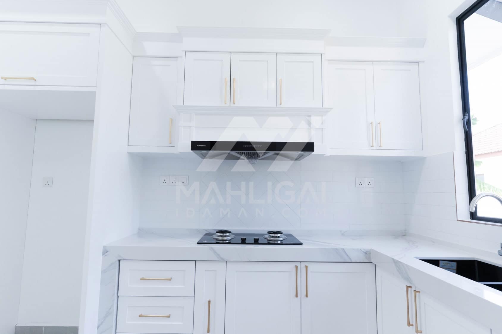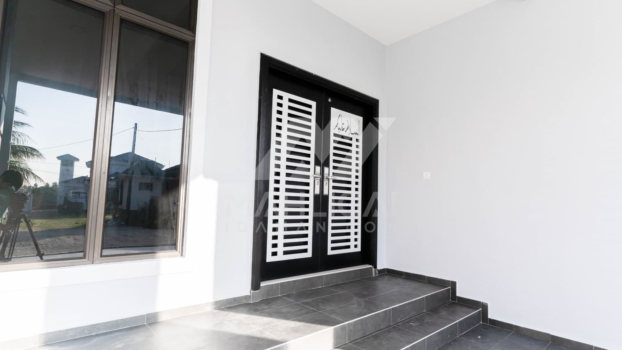 Banglo ini dibina dengan spesifikasi asas Pakej Gold dengan penambahan aksesori iaitu pemasangan cornice pada keseluruhan tingkap dan dinding luar rumah, groove line pada dinding di bahagian luar rumah.