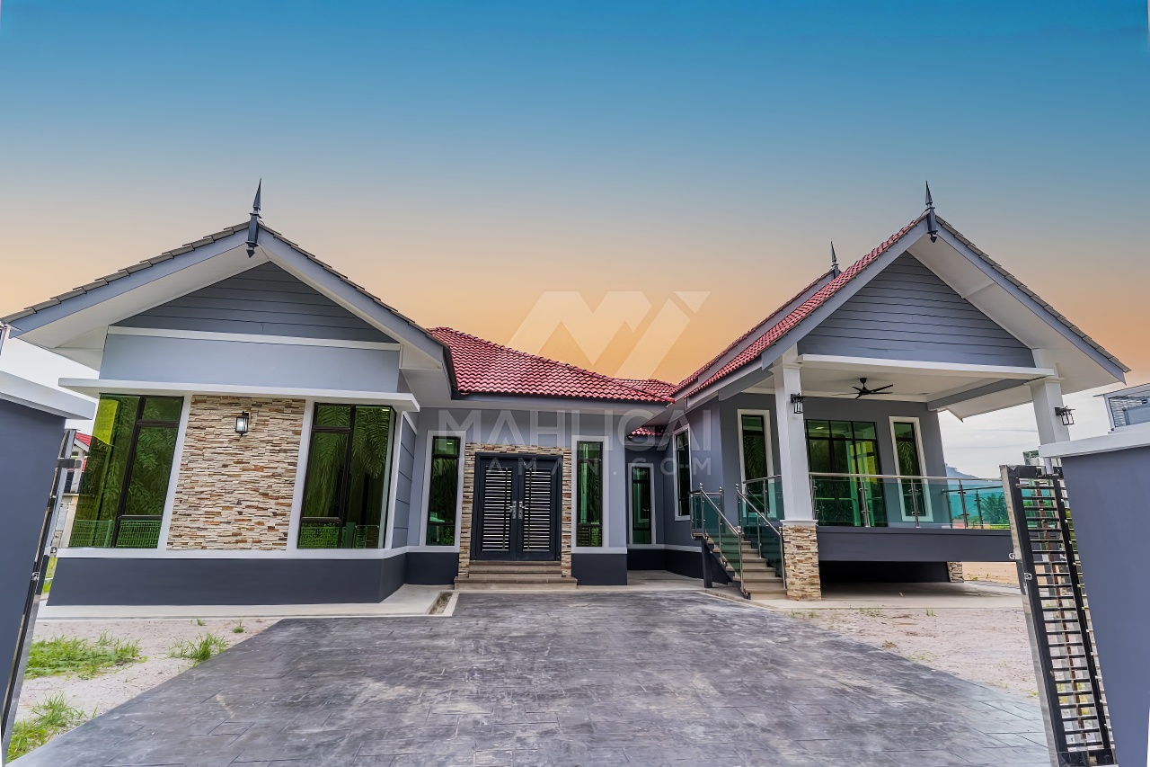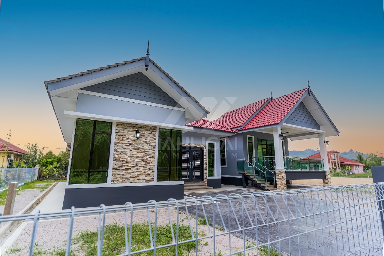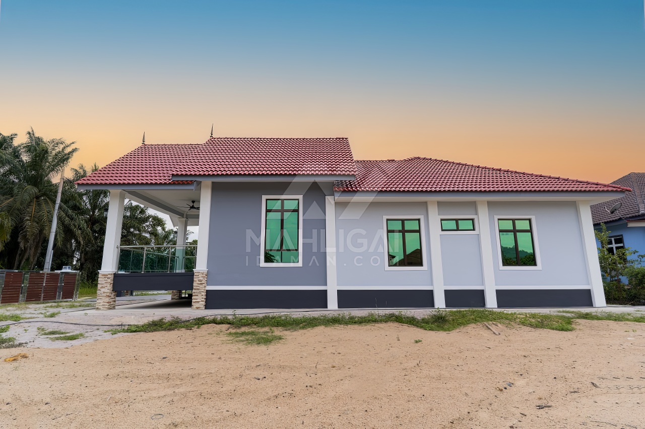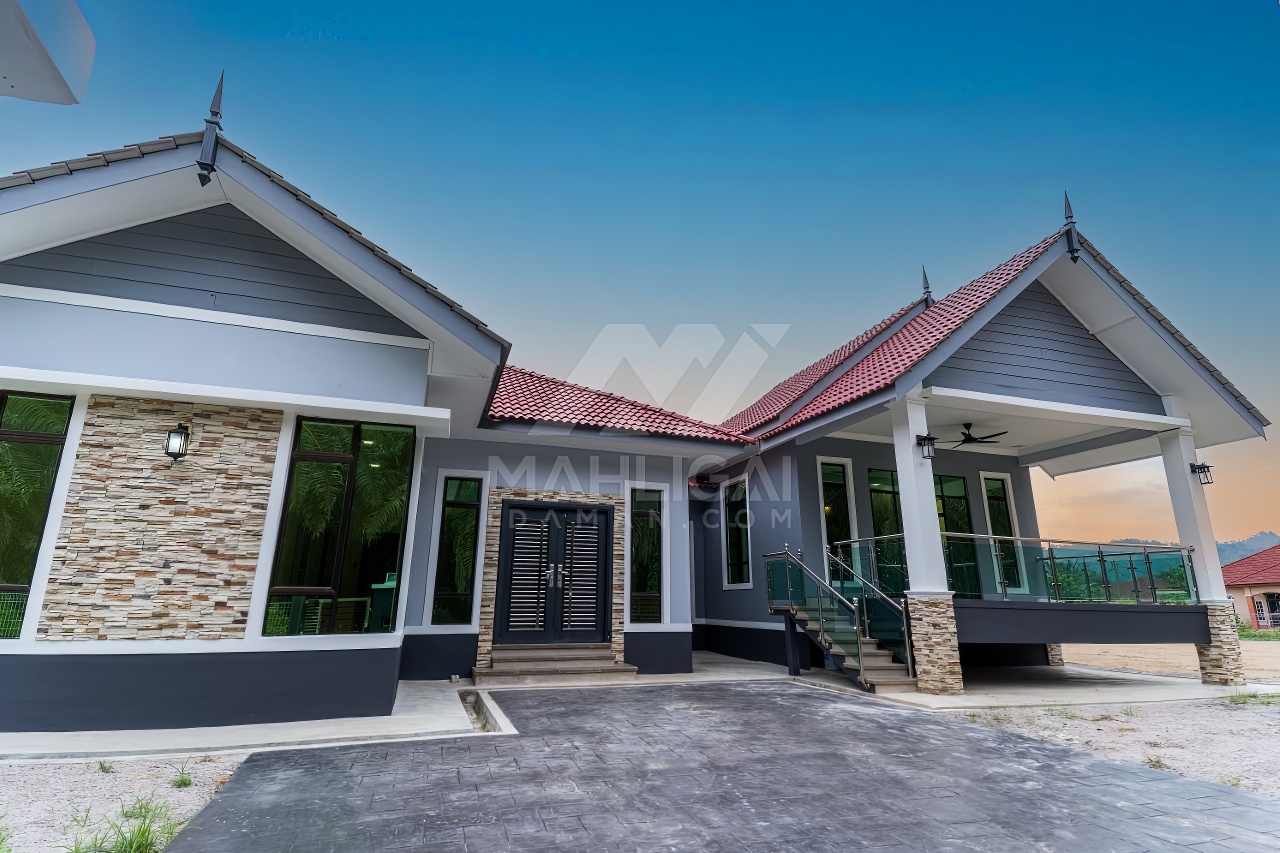 Banglo satu tingkat milik klien kami Puan Hasliza kini telah siap dibina sepenuhnya di Pahi, Kelantan. Banglo ini dilengkapi dengan lima (5) bilik tidur dan empat (4) bilik air. Banglo yang berkeluasan 2,512 kaki persegi ini menggabungkan ciri-ciri banglo moden iaitu dari segi rekabentuk dalaman dan luaran yang sangat menarik. Dari segi penggunaan tona biru dan biru gelap. Bahagian dalam rumah pula mereka memilih warna putih, menaikan lagi seri dan kemewahan dalam rumah.