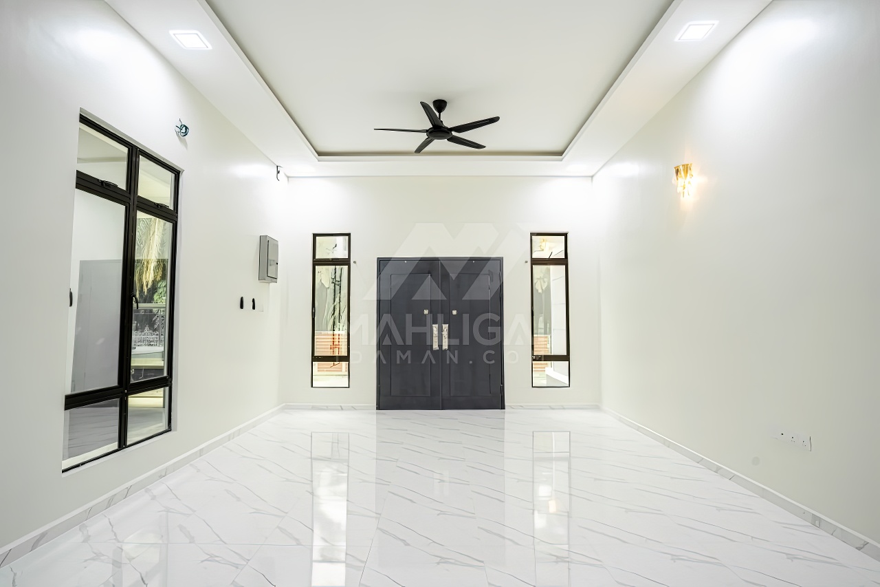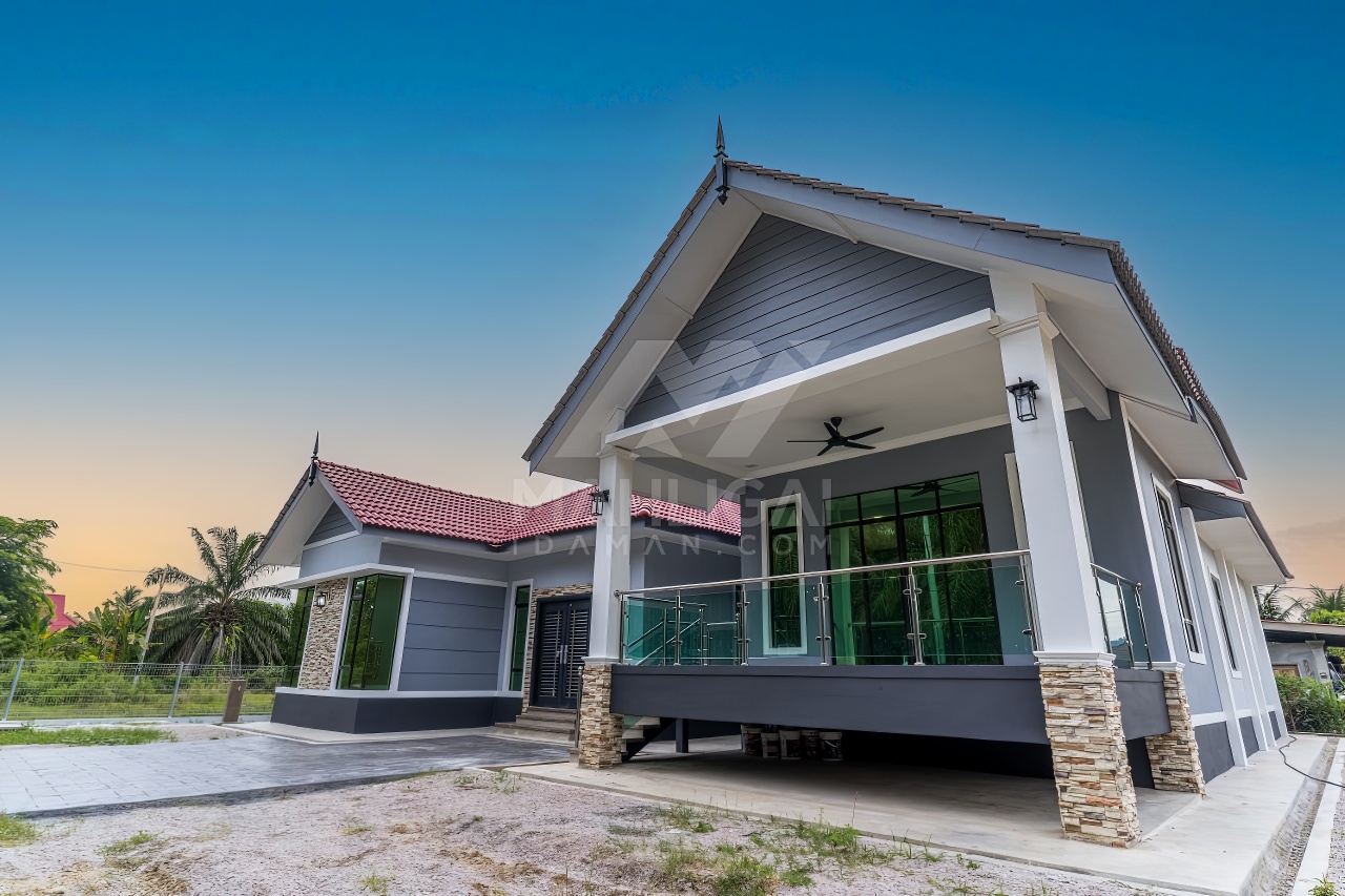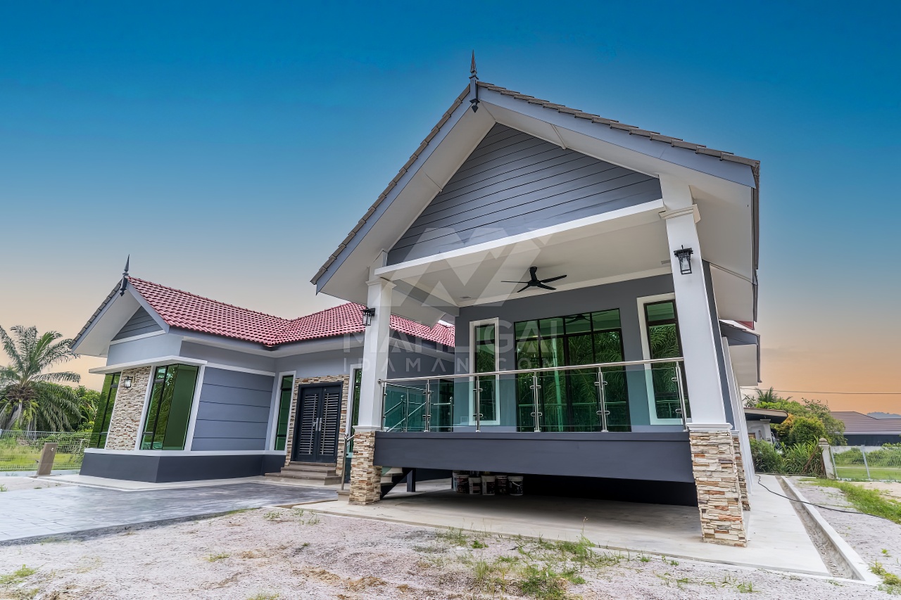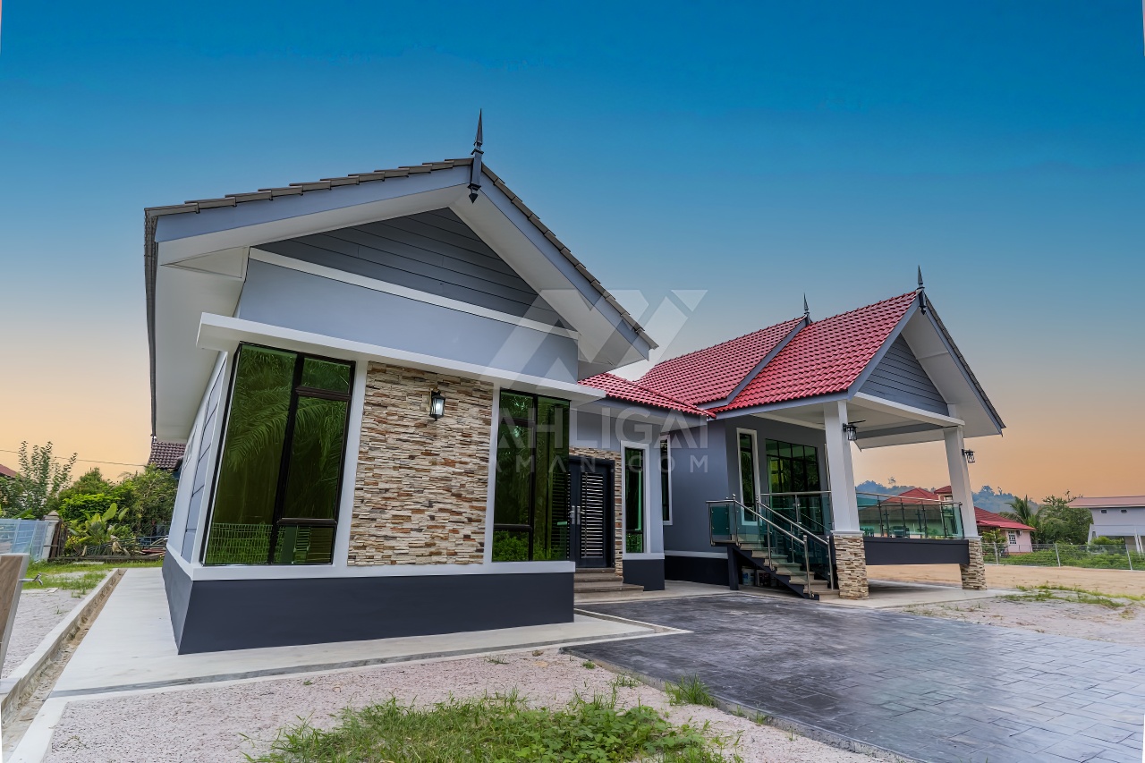 Banglo satu tingkat milik klien kami Puan Hasliza kini telah siap dibina sepenuhnya di Pahi, Kelantan. Banglo ini dilengkapi dengan lima (5) bilik tidur dan empat (4) bilik air. Banglo yang berkeluasan 2,512 kaki persegi ini menggabungkan ciri-ciri banglo moden iaitu dari segi rekabentuk dalaman dan luaran yang sangat menarik. Dari segi penggunaan tona biru dan biru gelap. Bahagian dalam rumah pula mereka memilih warna putih, menaikan lagi seri dan kemewahan dalam rumah.