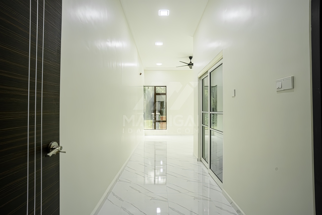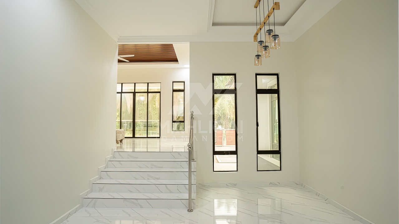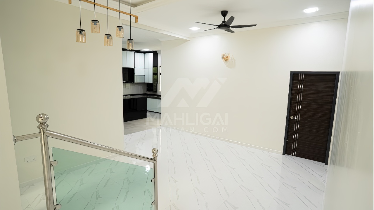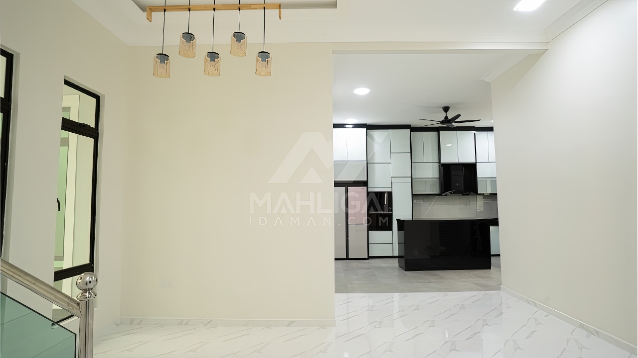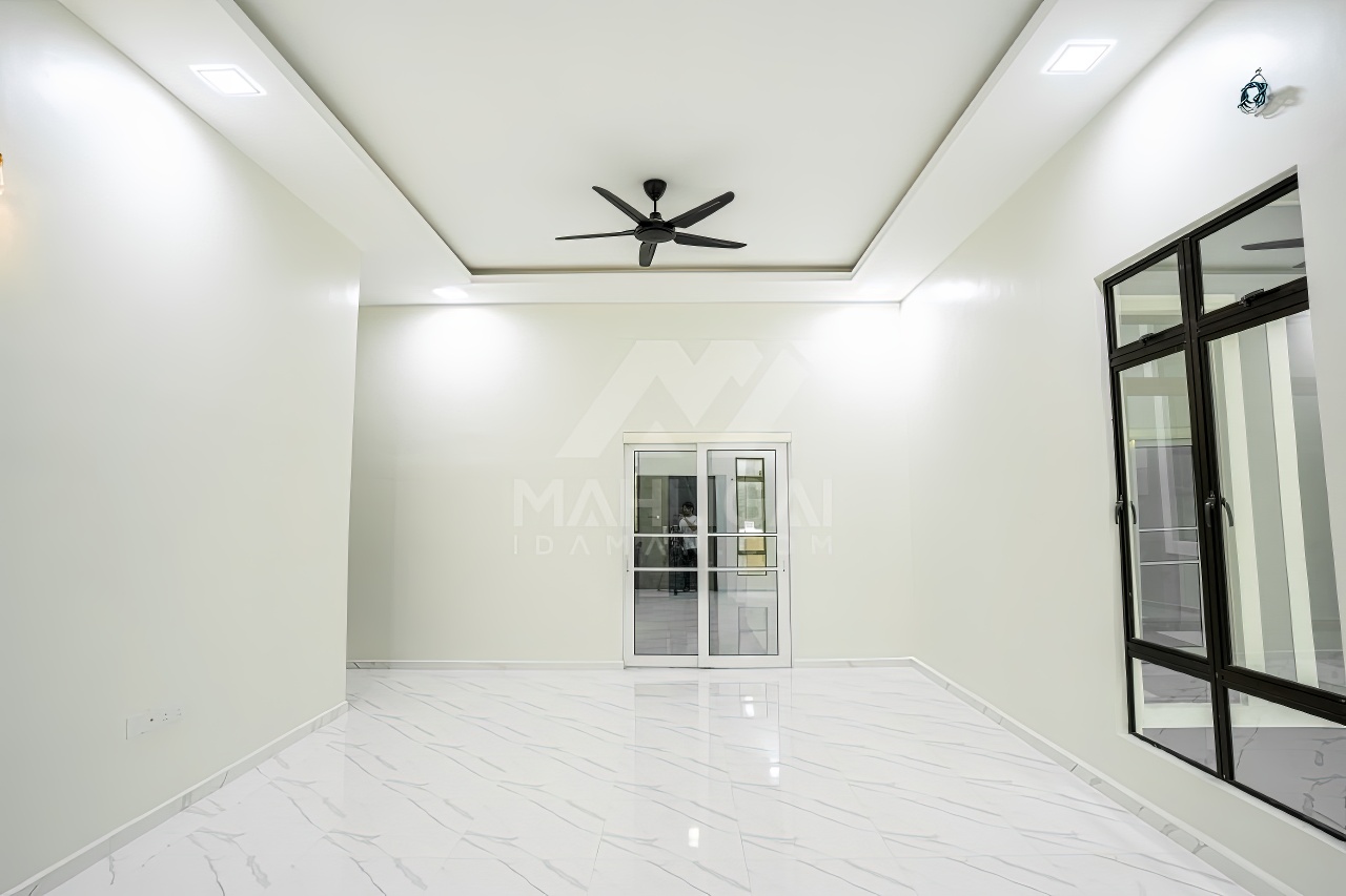 Banglo ini dibina dengan spesifikasi asas pakej gold dengan penambahan aksesori iaitu pemasangan cornice pada keseluruhan tingkap dan dinding luar rumah, groove line pada dinding di bahagian luar rumah