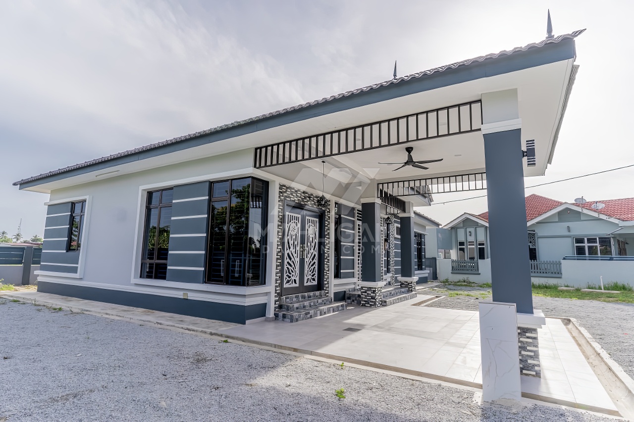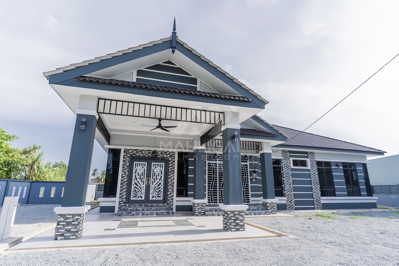 Banglo satu tingkat milik klien kami Tuan Engku Asyraff kini telah siap dibina sepenuhnya di Ketereh Kota Bharu, Kelantan. Banglo ini dilengkapi dengan lima (5) bilik tidur dan tiga (3) bilik air. Banglo yang berkeluasan 1,994 kaki persegi ini menggabungkan ciri-ciri banglo moden iaitu dari segi rekabentuk dalaman dan luaran yang sangat menarik. Dari segi penggunaan tona biru dan biru gelap. Bahagian dalam rumah pula mereka memilih warna putih dan merah jambu, menaikan lagi seri dan kemewahan dalam rumah.