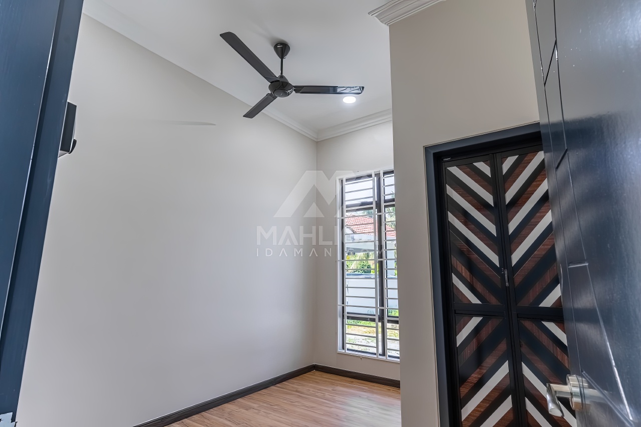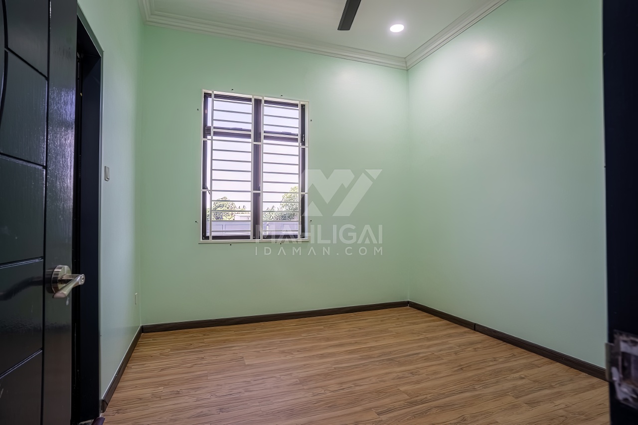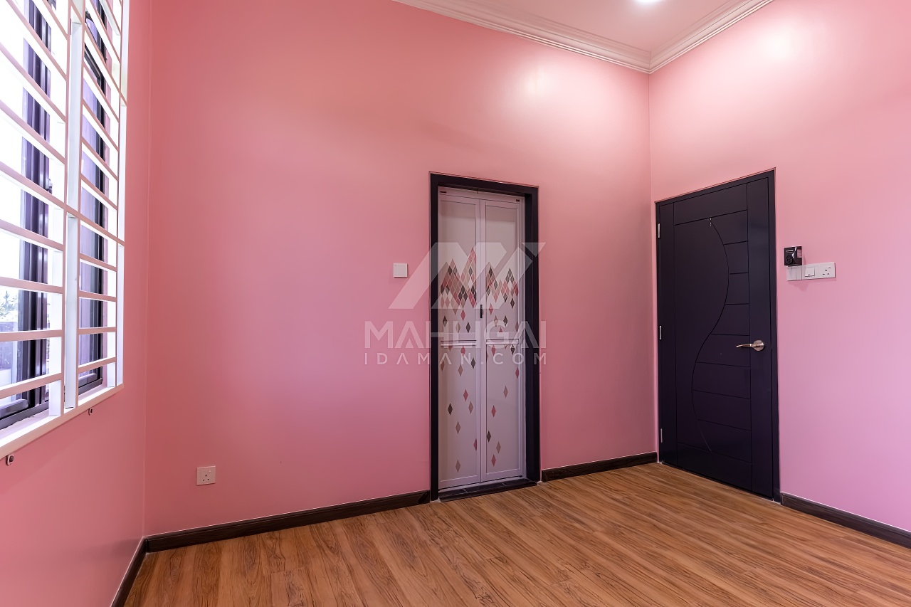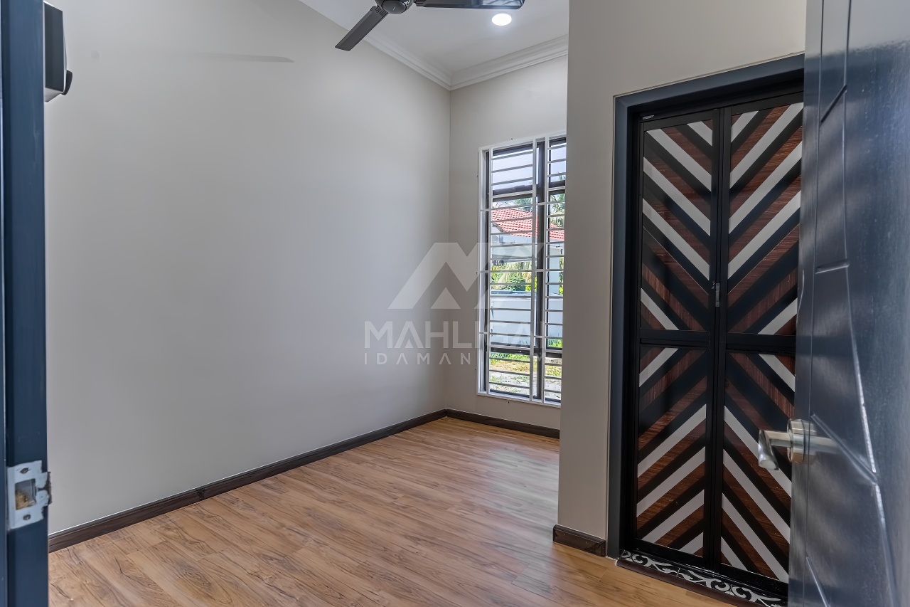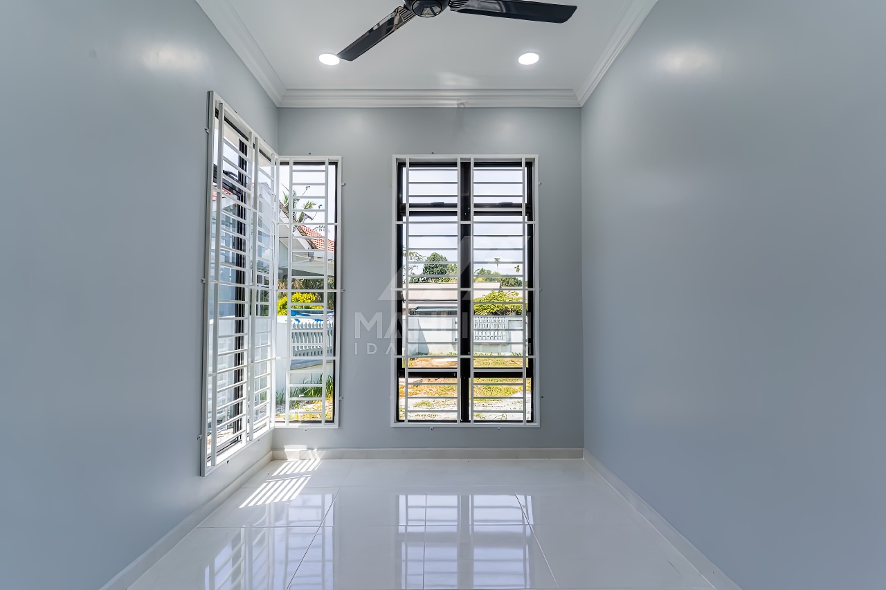 Banglo ini dibina dengan spesifikasi asas pakej gold dengan penambahan aksesori iaitu pemasangan cornice pada keseluruhan tingkap dan dinding luar rumah, groove line pada dinding di bahagian luar rumah