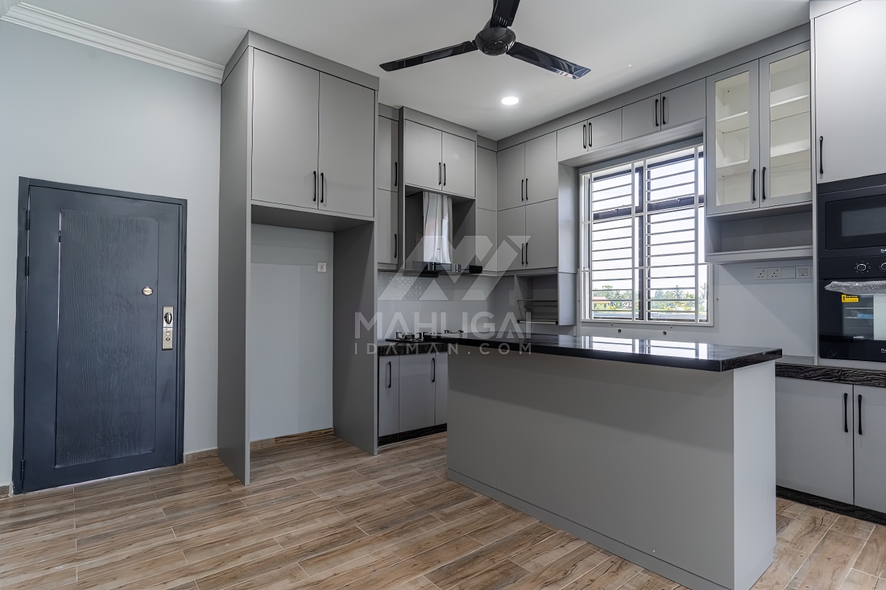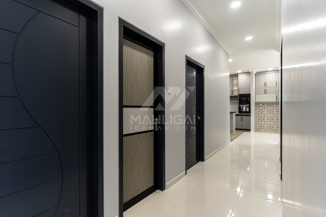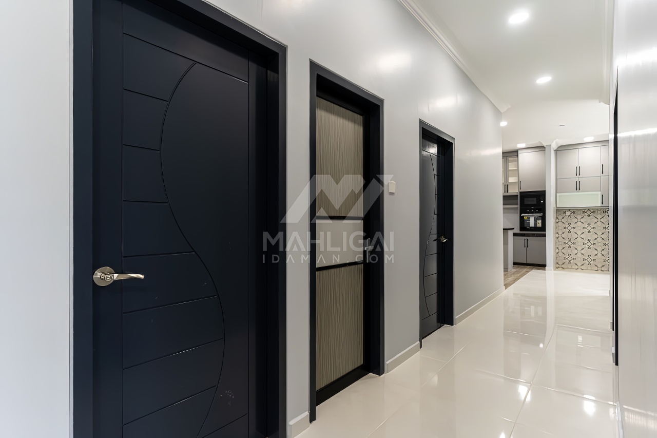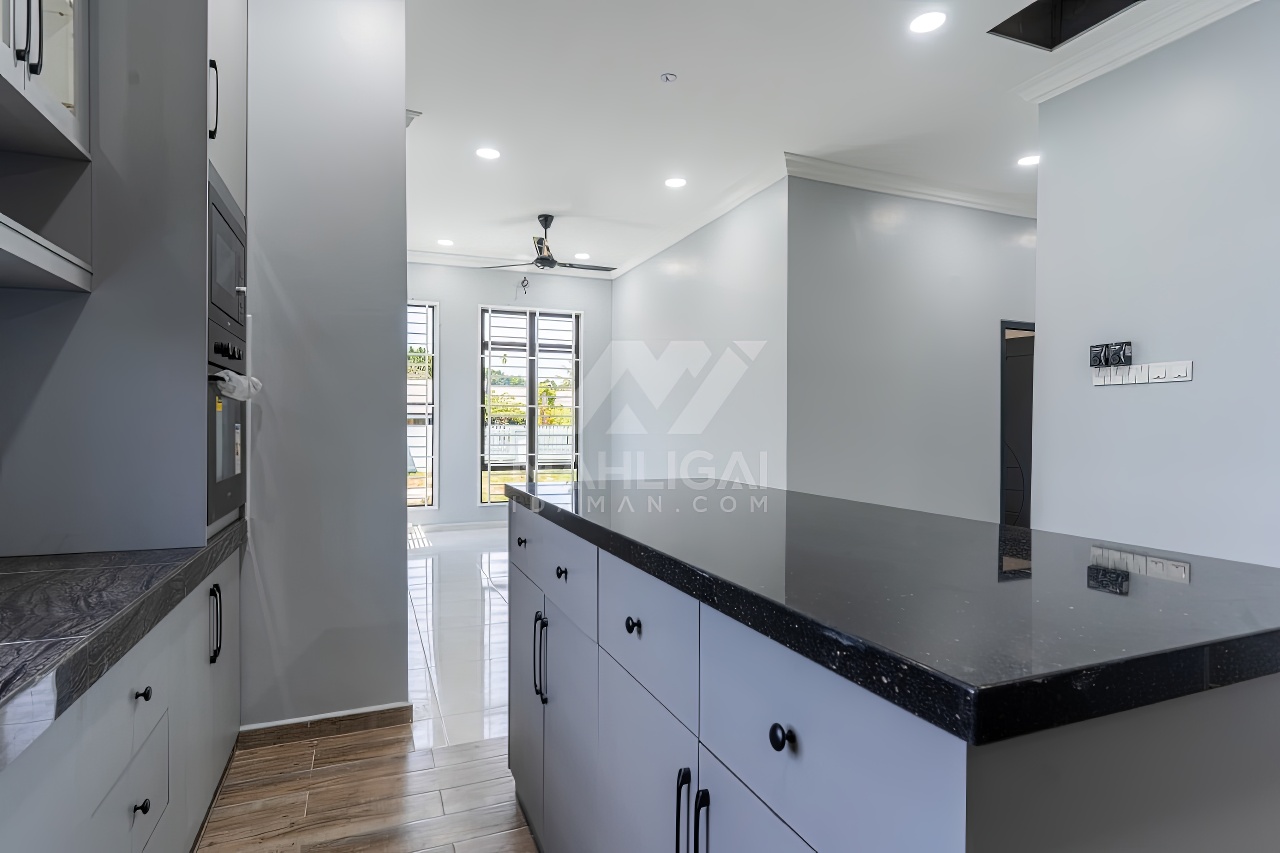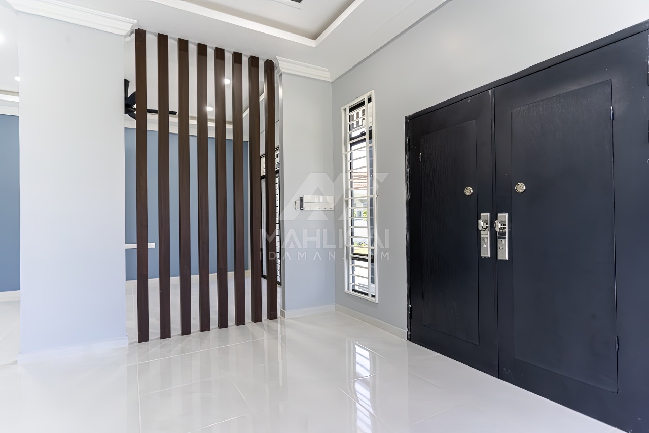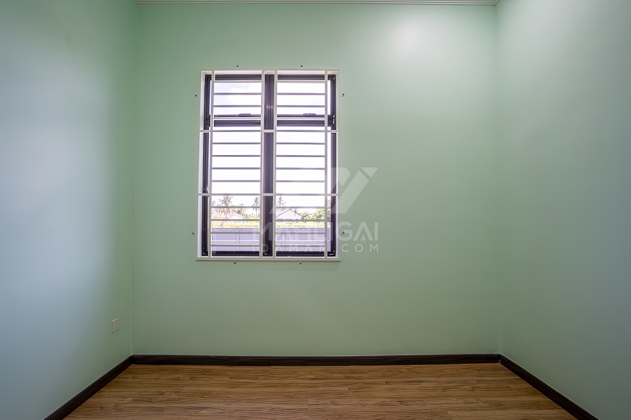 Banglo ini dibina dengan spesifikasi asas pakej gold dengan penambahan aksesori iaitu pemasangan cornice pada keseluruhan tingkap dan dinding luar rumah, groove line pada dinding di bahagian luar rumah