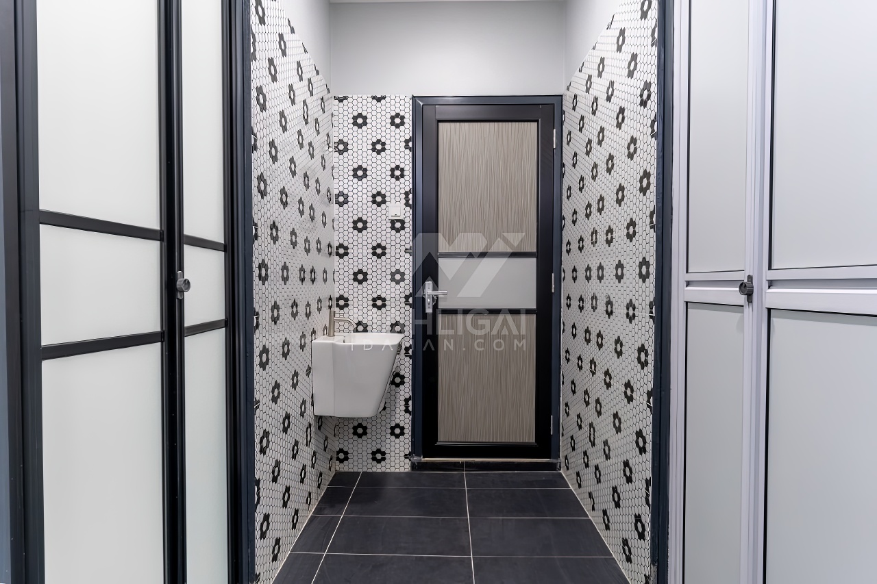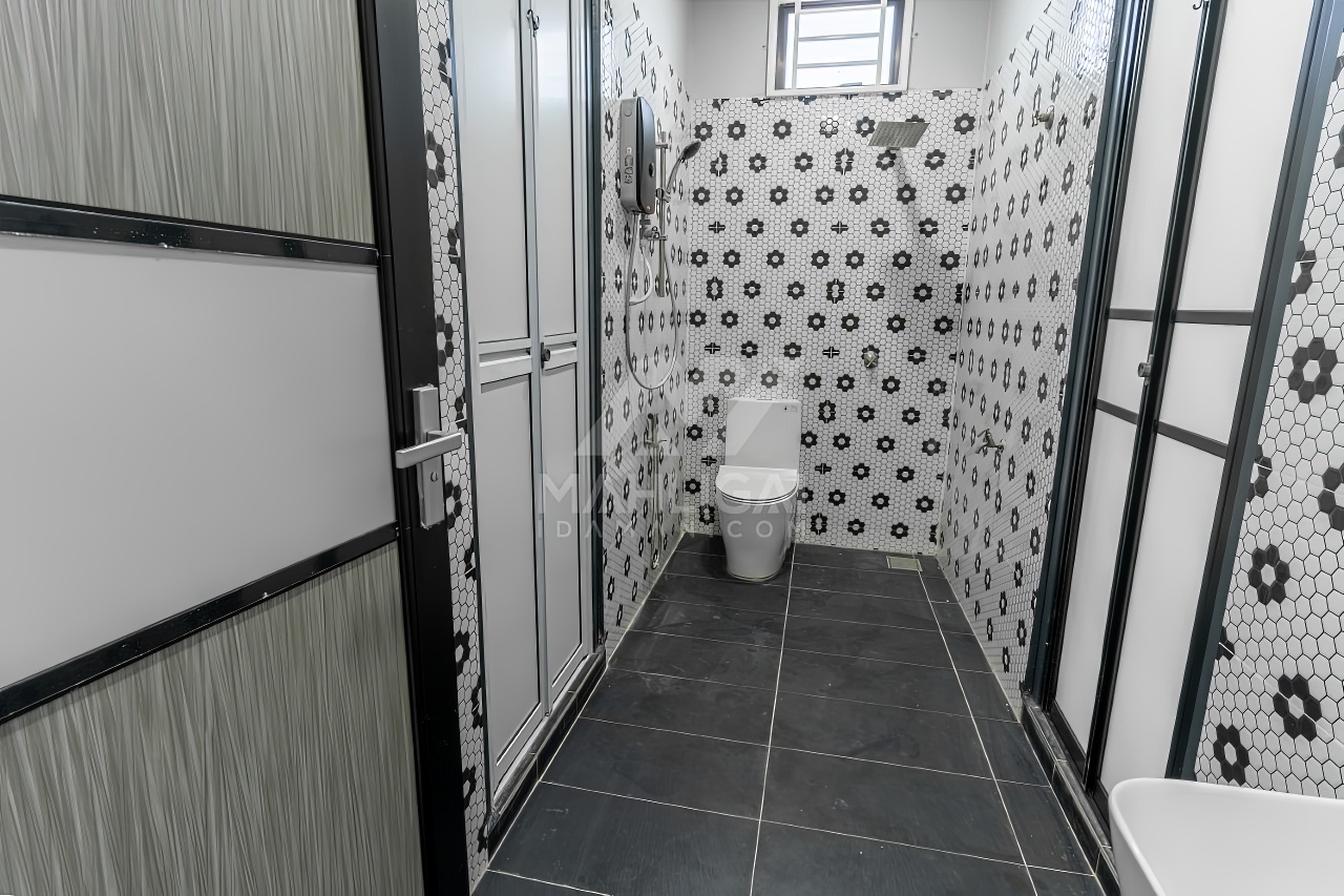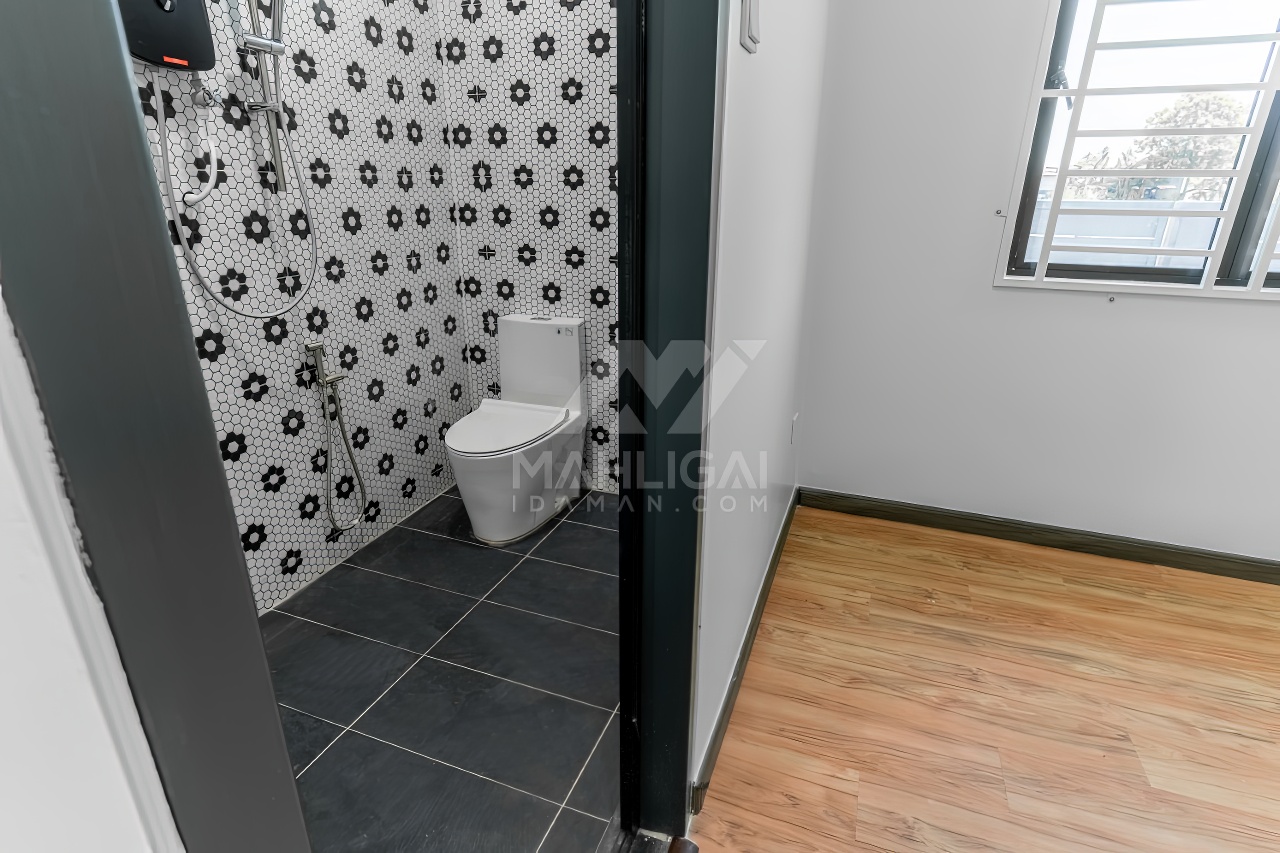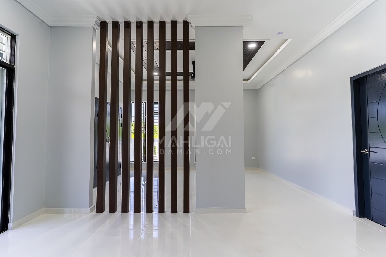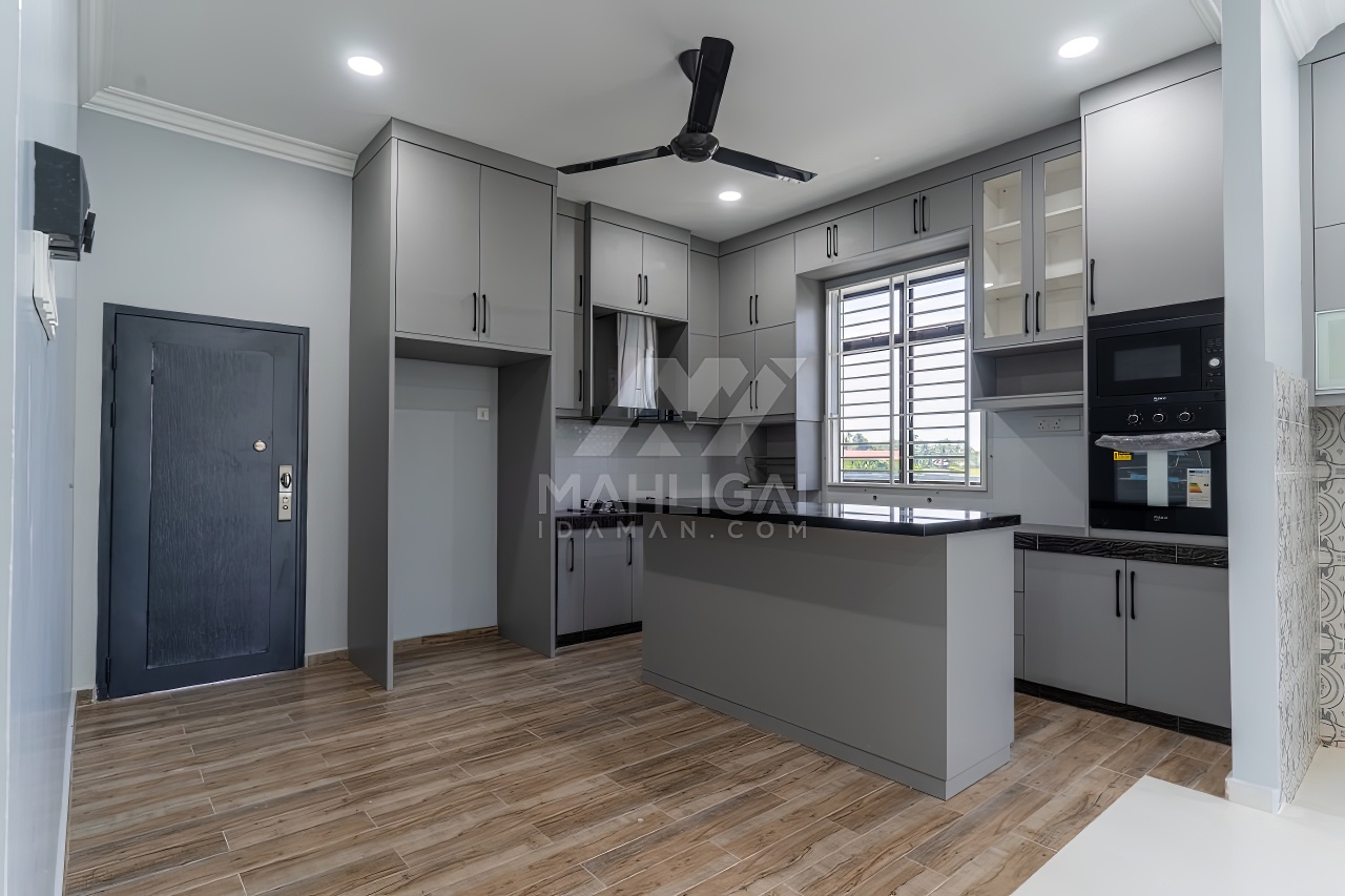 Banglo ini dibina dengan spesifikasi asas pakej gold dengan penambahan aksesori iaitu pemasangan cornice pada keseluruhan tingkap dan dinding luar rumah, groove line pada dinding di bahagian luar rumah