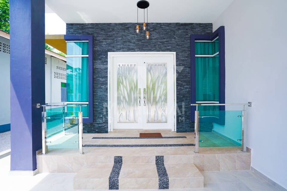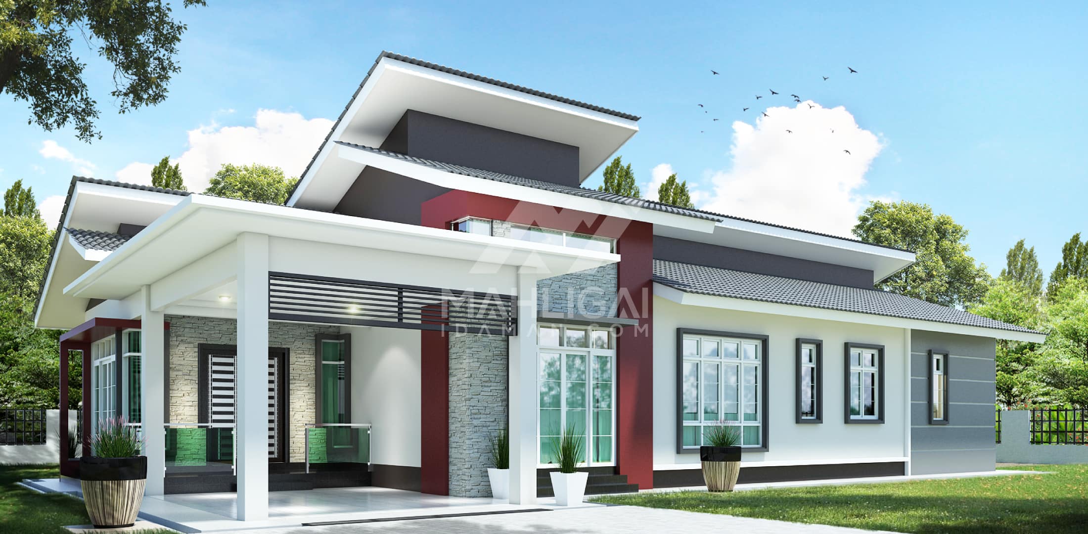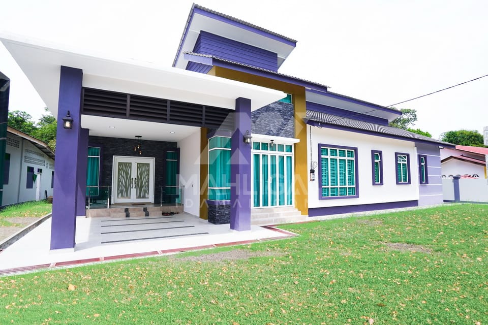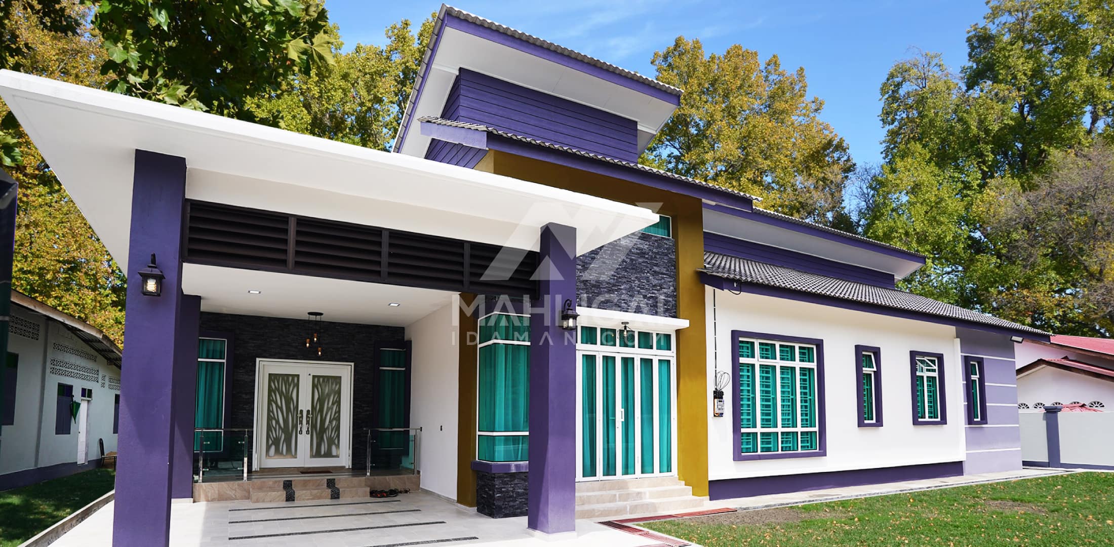 Banglo Idaman client kami lokasinya berdekatan UITM Machang, Kelantan. Banglo ini mempunyai lima bilik tidur dan enam bilik air. Banglo ini menggabungkan ciri-ciri berkonsepkan banglo moden seperti penggunaan tambahan ketinggian roof beam yang tinggi pada bahagian hadapan ruang tamu, hadapan ruang keluarga, ruang makan dan sebahagian ruang keluarga menampakan ruang yang lebih luas dan selesa bila berada di dalam rumah. Dari segi penggunaan gabungan tona warna unggu dan kuning ‘King Ransom’ nenambahkan lagi keunikan banglo moden ini.