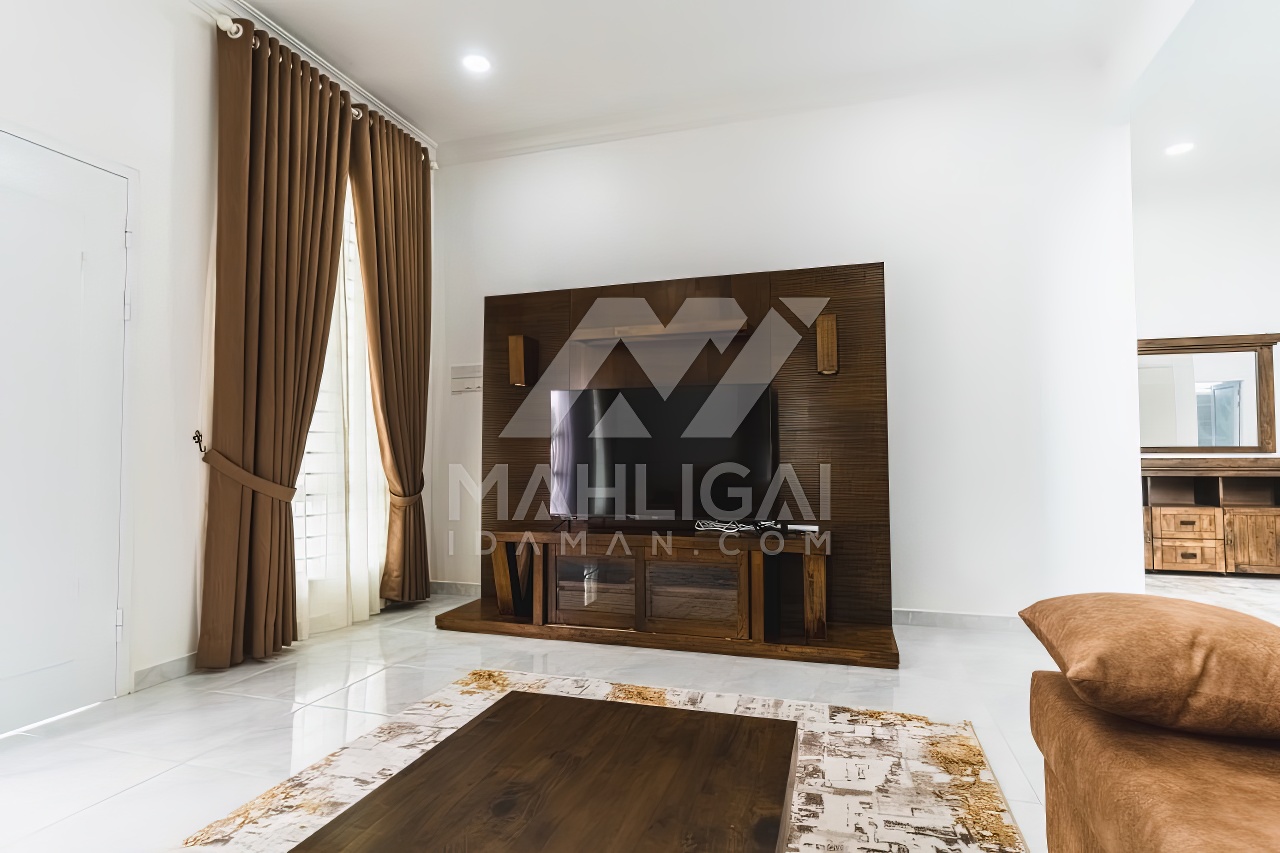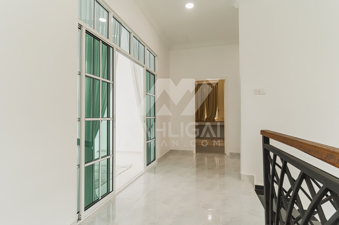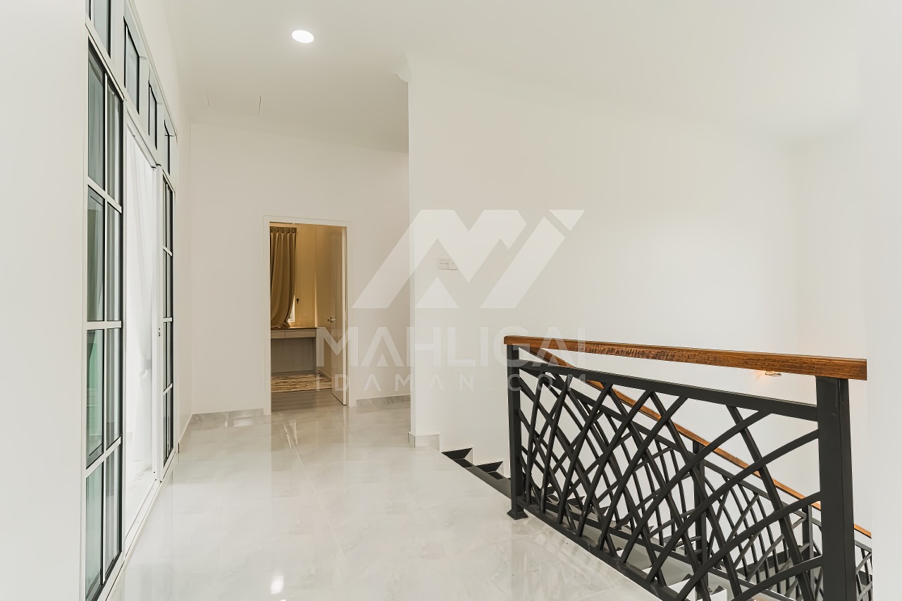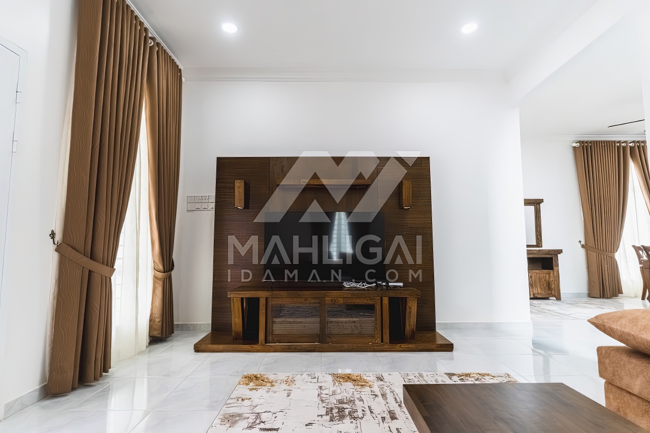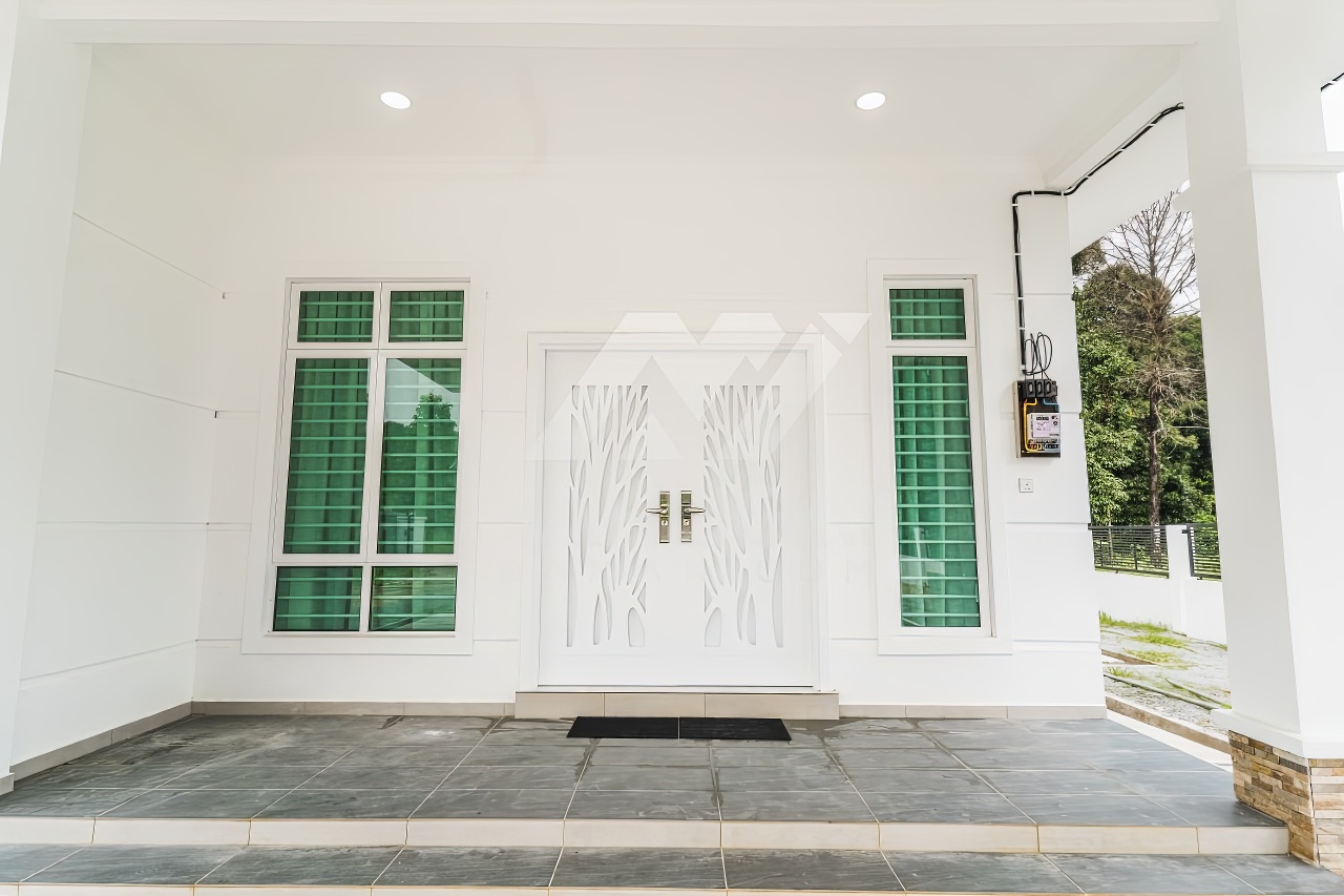 Banglo ini dibina dengan spesifikasi asas pakej gold dengan penambahan aksesori iaitu pemasangan cornice pada keseluruhan tingkap dan dinding luar rumah, groove line pada dinding di bahagian luar rumah