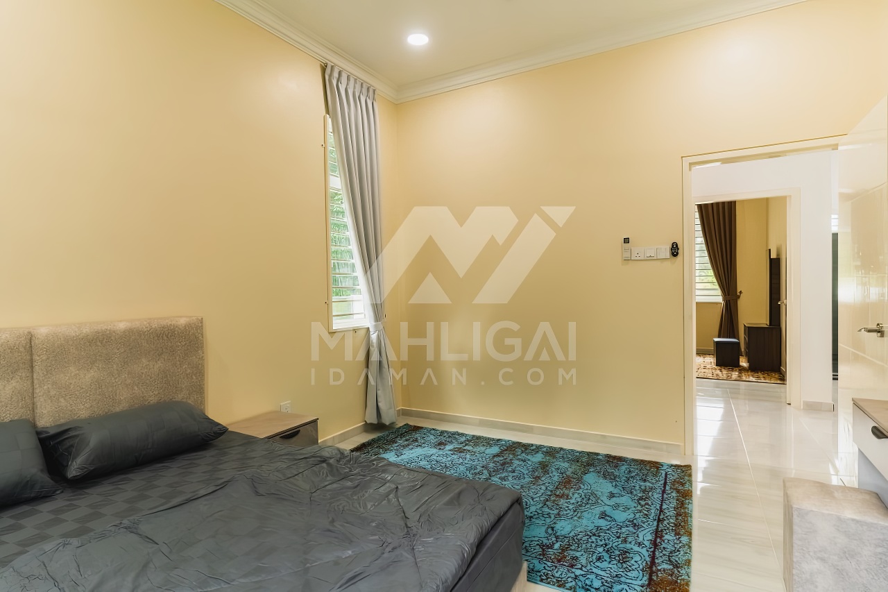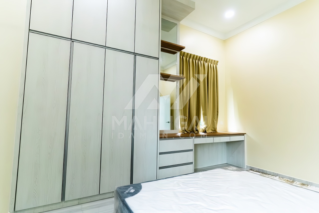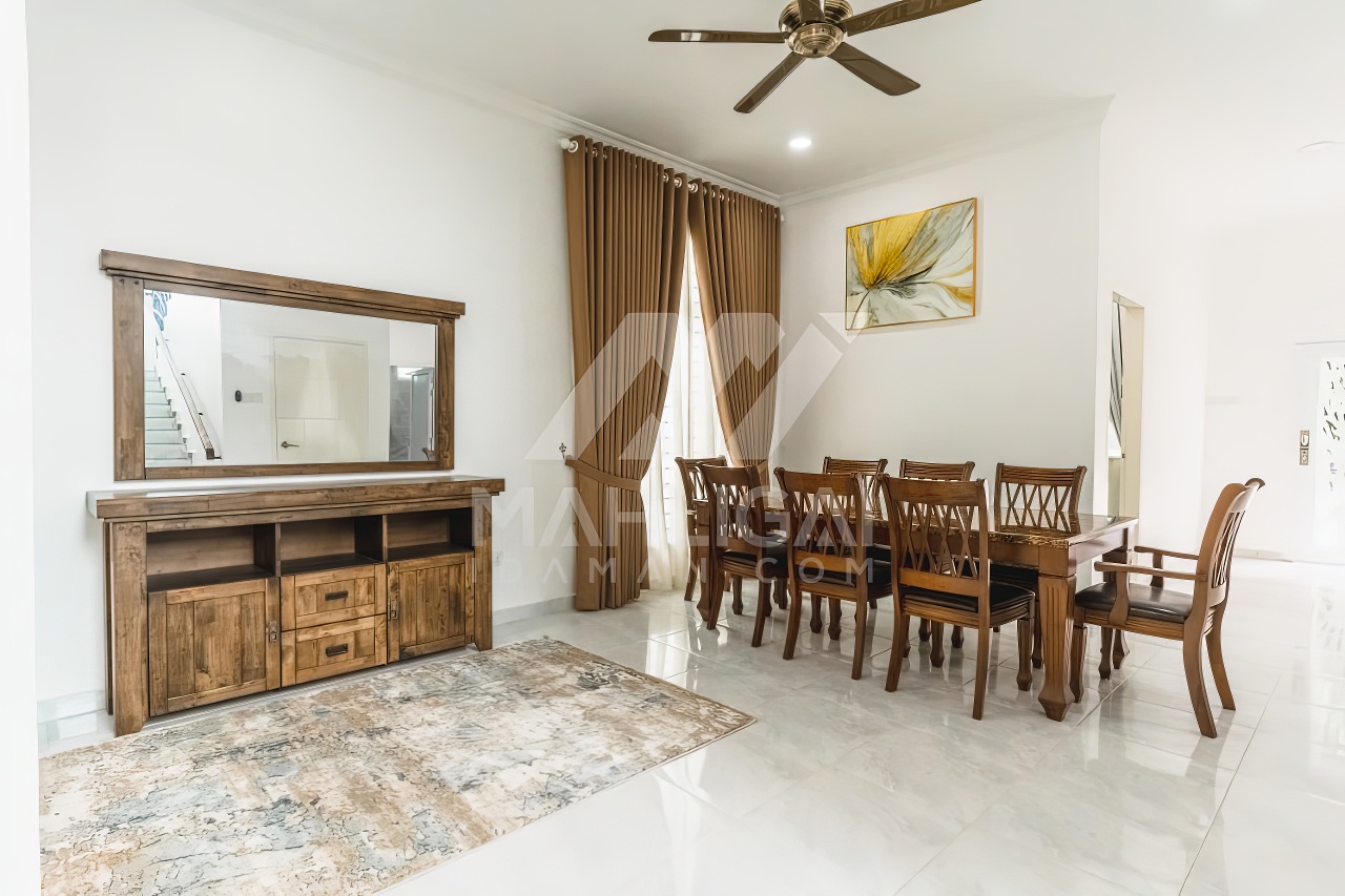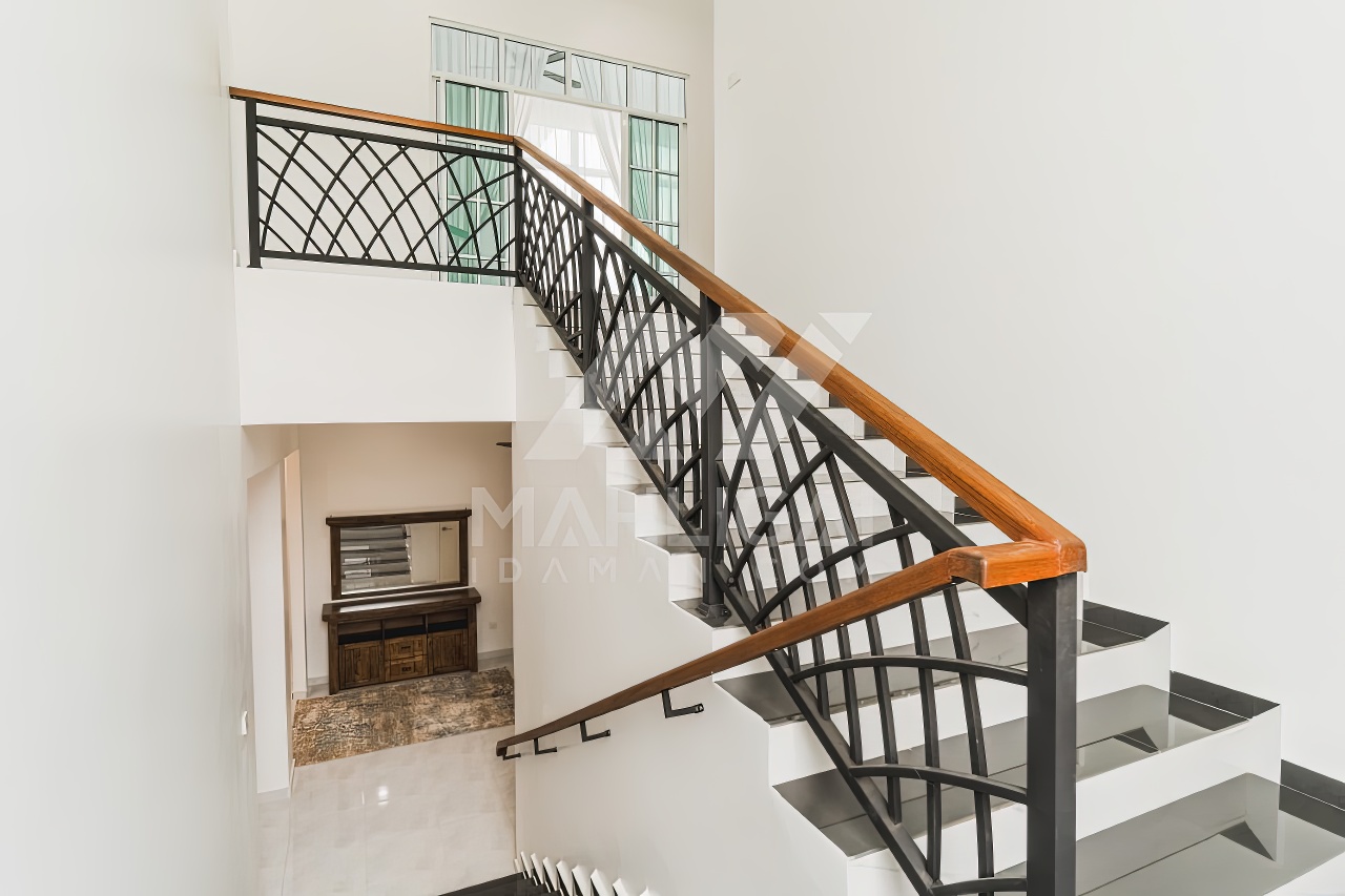 Banglo ini dibina dengan spesifikasi asas pakej gold dengan penambahan aksesori iaitu pemasangan cornice pada keseluruhan tingkap dan dinding luar rumah, groove line pada dinding di bahagian luar rumah