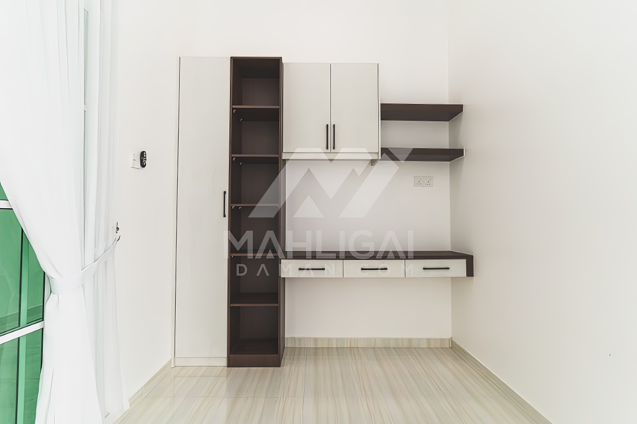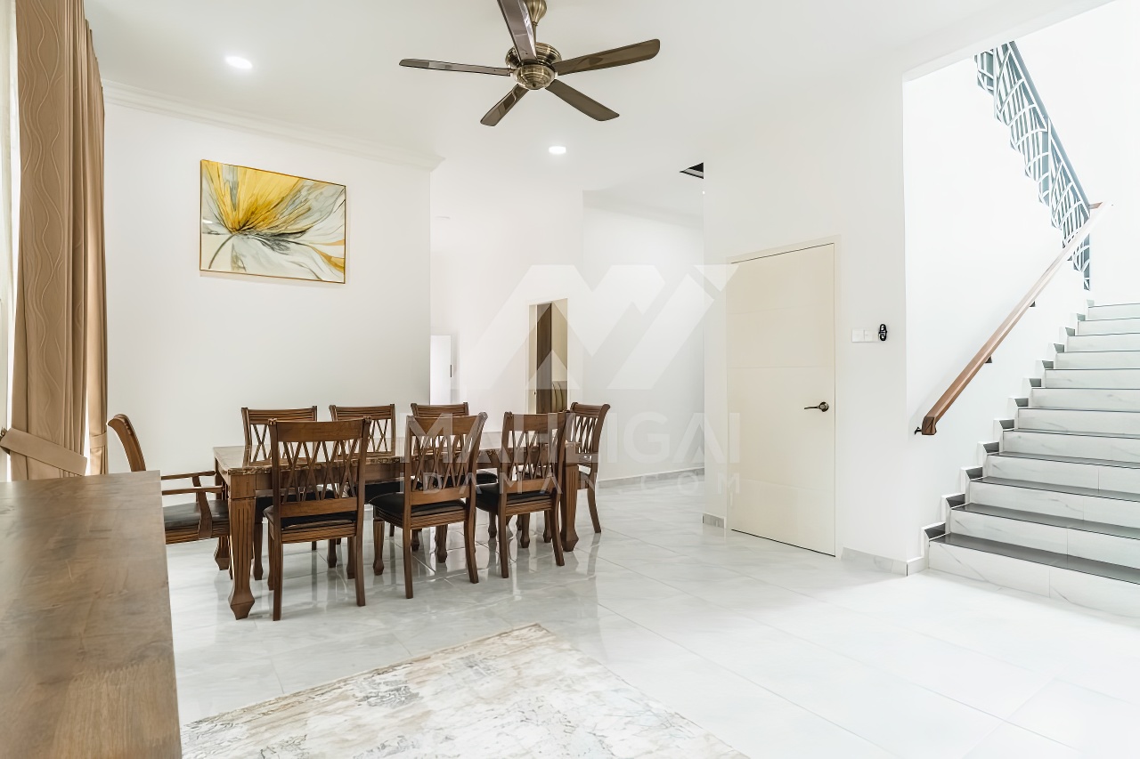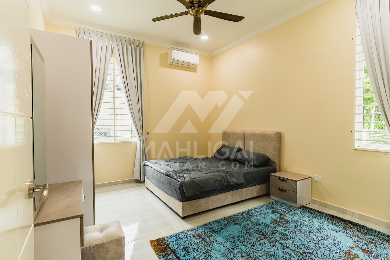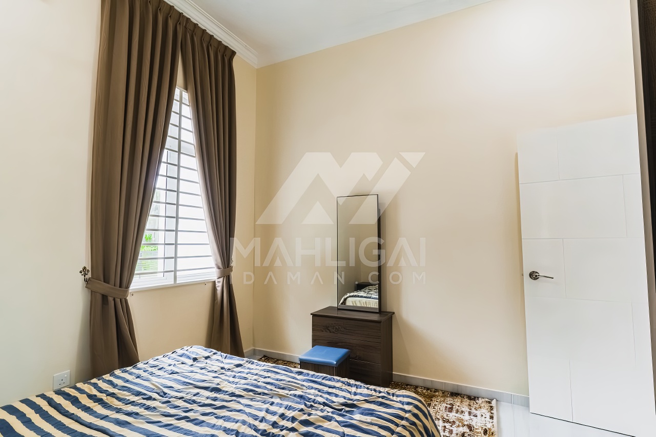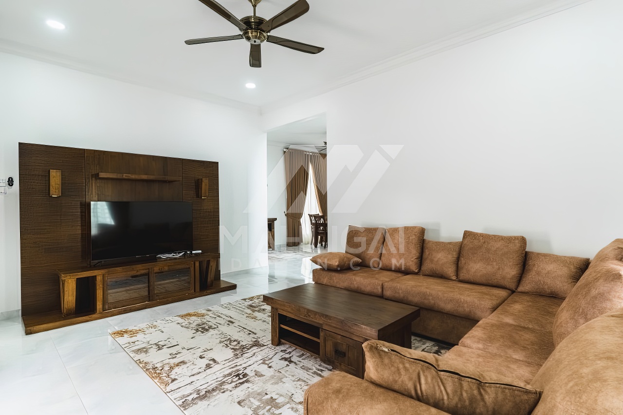 Banglo ini dibina dengan spesifikasi asas pakej gold dengan penambahan aksesori iaitu pemasangan cornice pada keseluruhan tingkap dan dinding luar rumah, groove line pada dinding di bahagian luar rumah