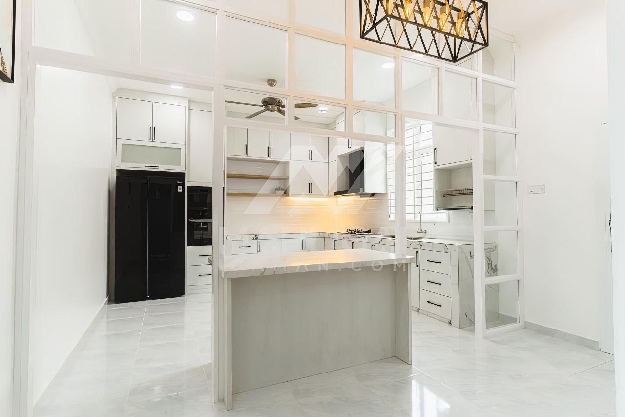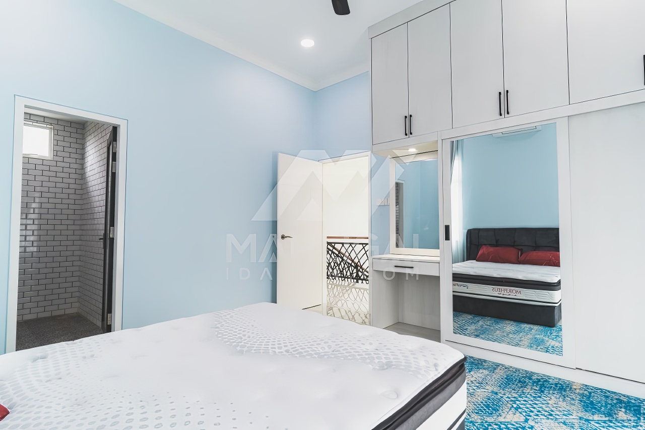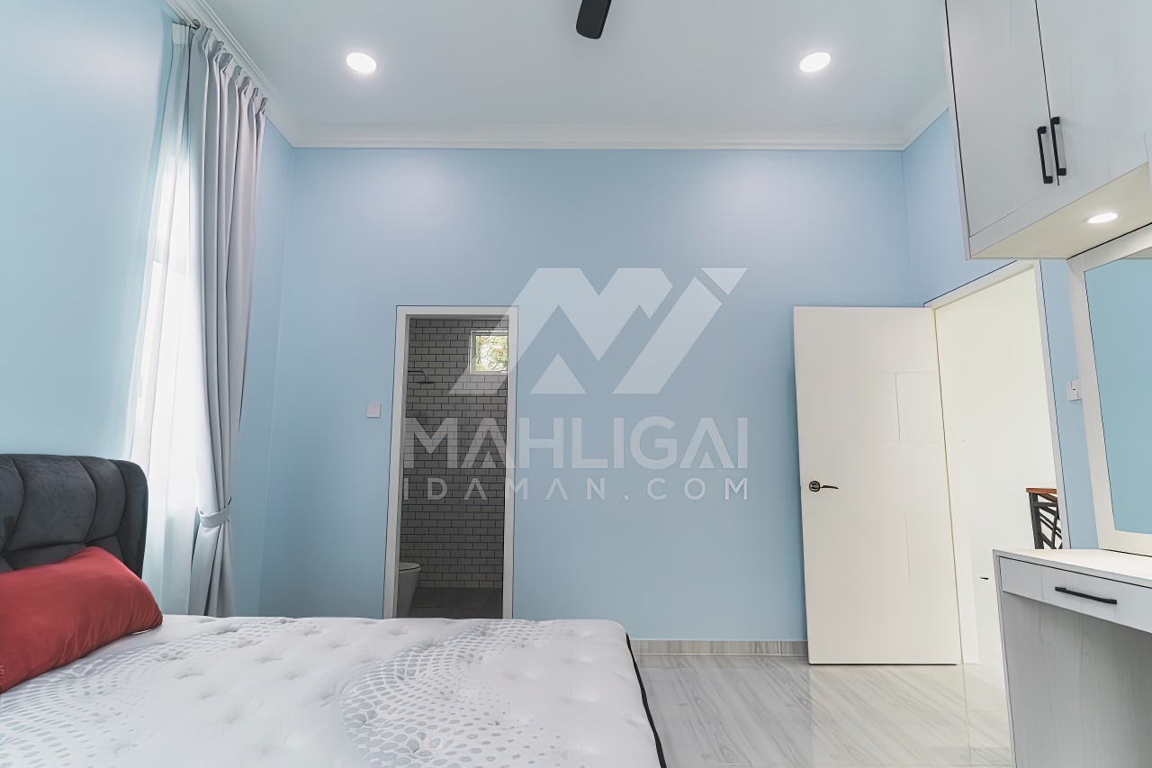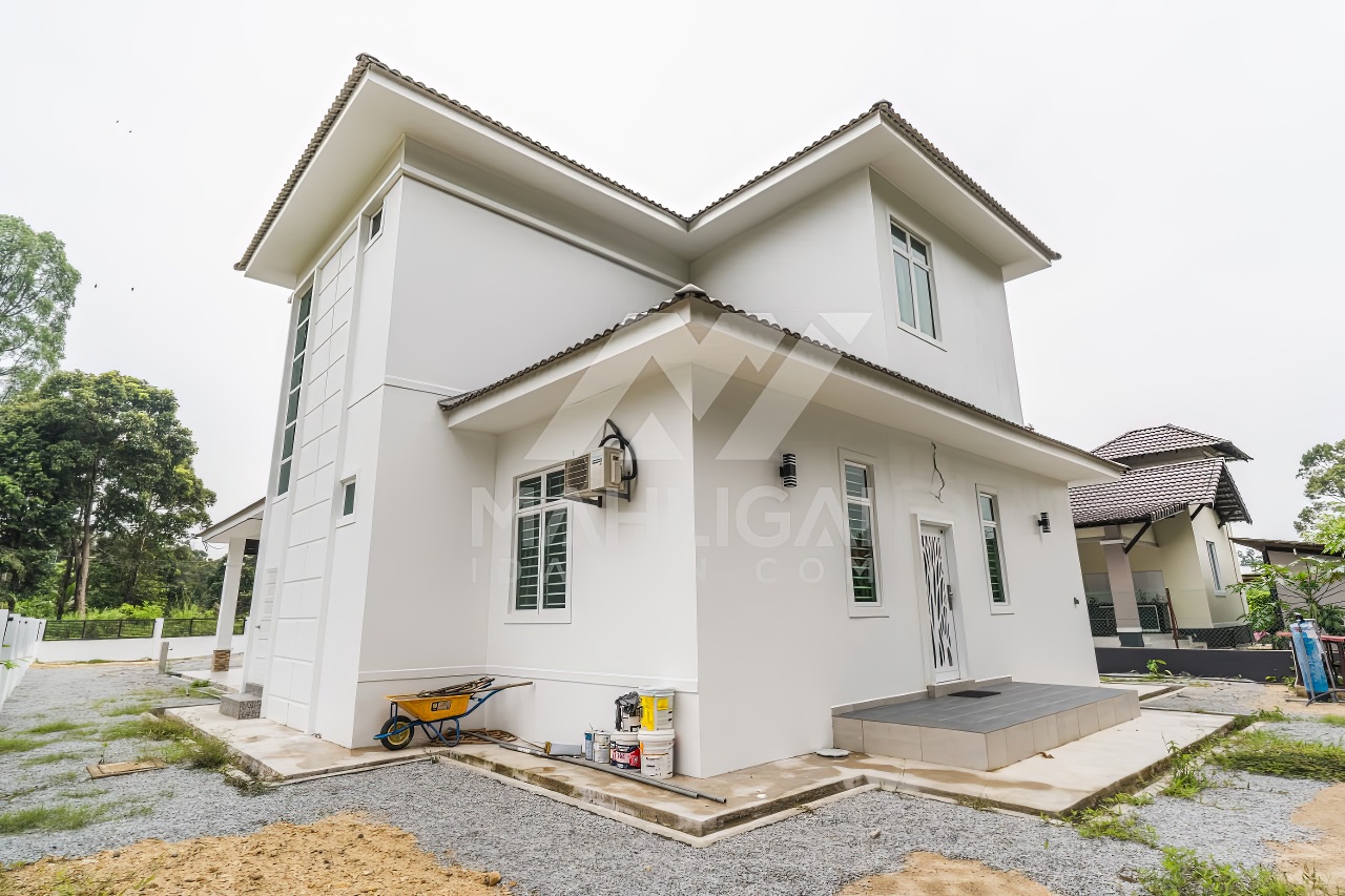 Banglo dua tingkat milik klien kami Encik Nazreen kini telah siap dibina sepenuhnya di Peringat, Kota Bharu, Kelantan. Banglo ini dilengkapi dengan empat (4) bilik tidur dan tiga (3) bilik air. Banglo yang berkeluasan 2,920 kaki persegi ini menggabungkan ciri-ciri banglo moden iaitu dari segi rekabentuk dalaman dan luaran yang sangat menarik. Dari segi penggunaan tona putih. Bahagian dalam rumah pula mereka memilih warna biru dan kuning muda, menaikan lagi seri dan kemewahan dalam rumah.
