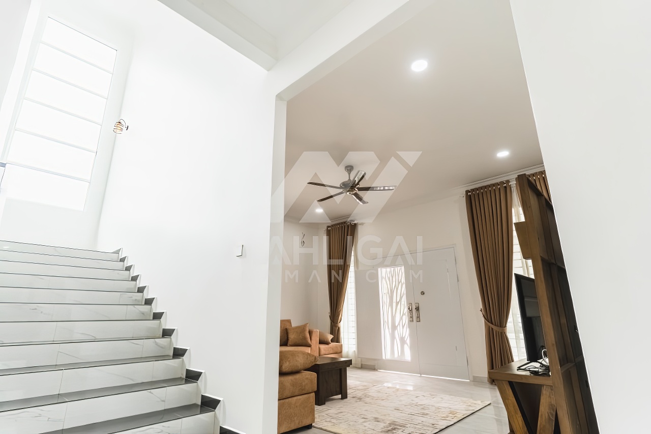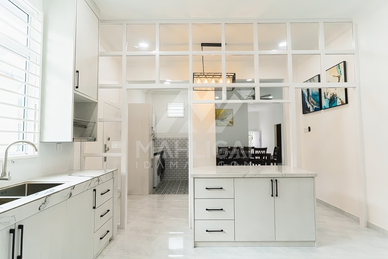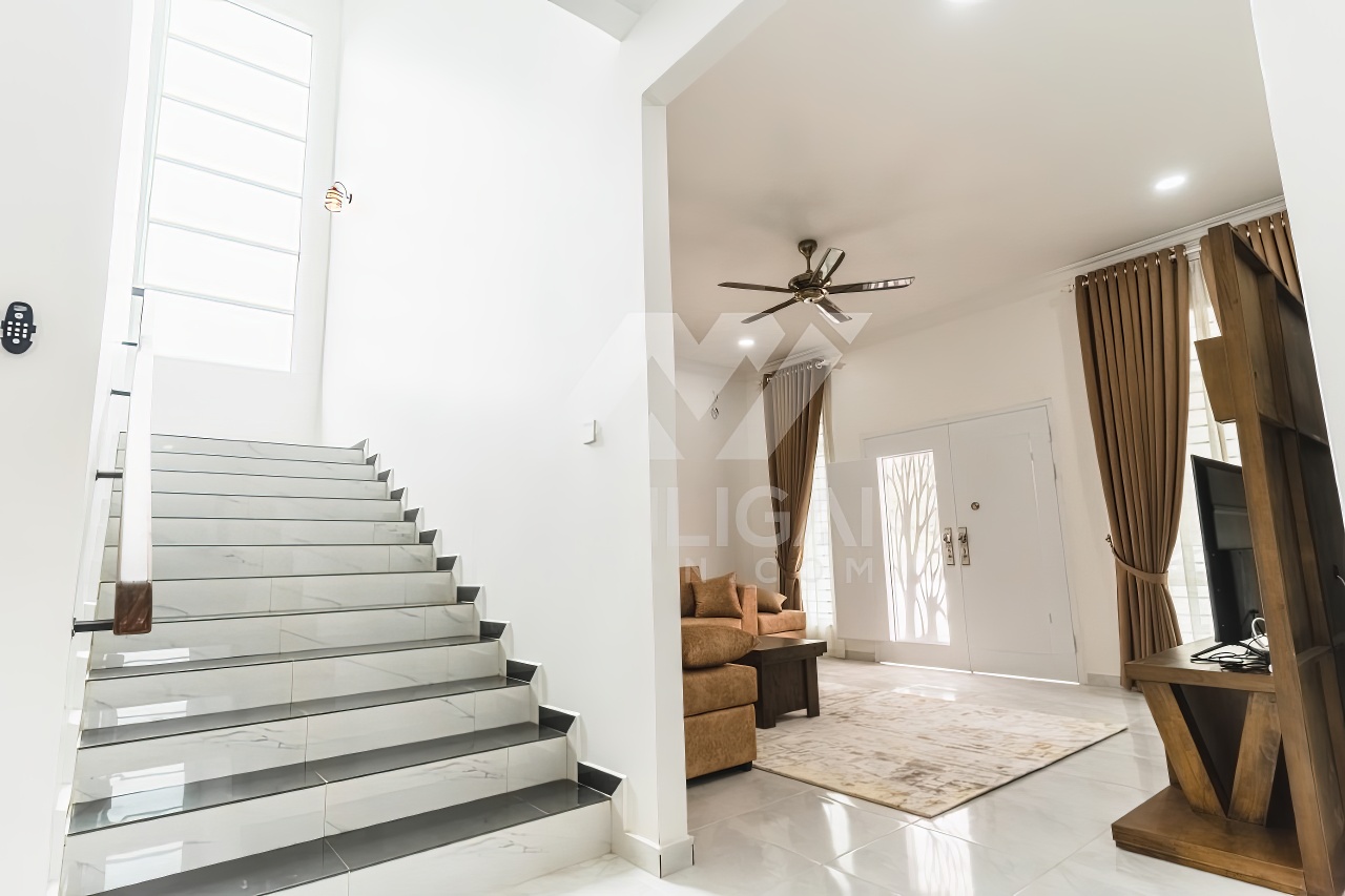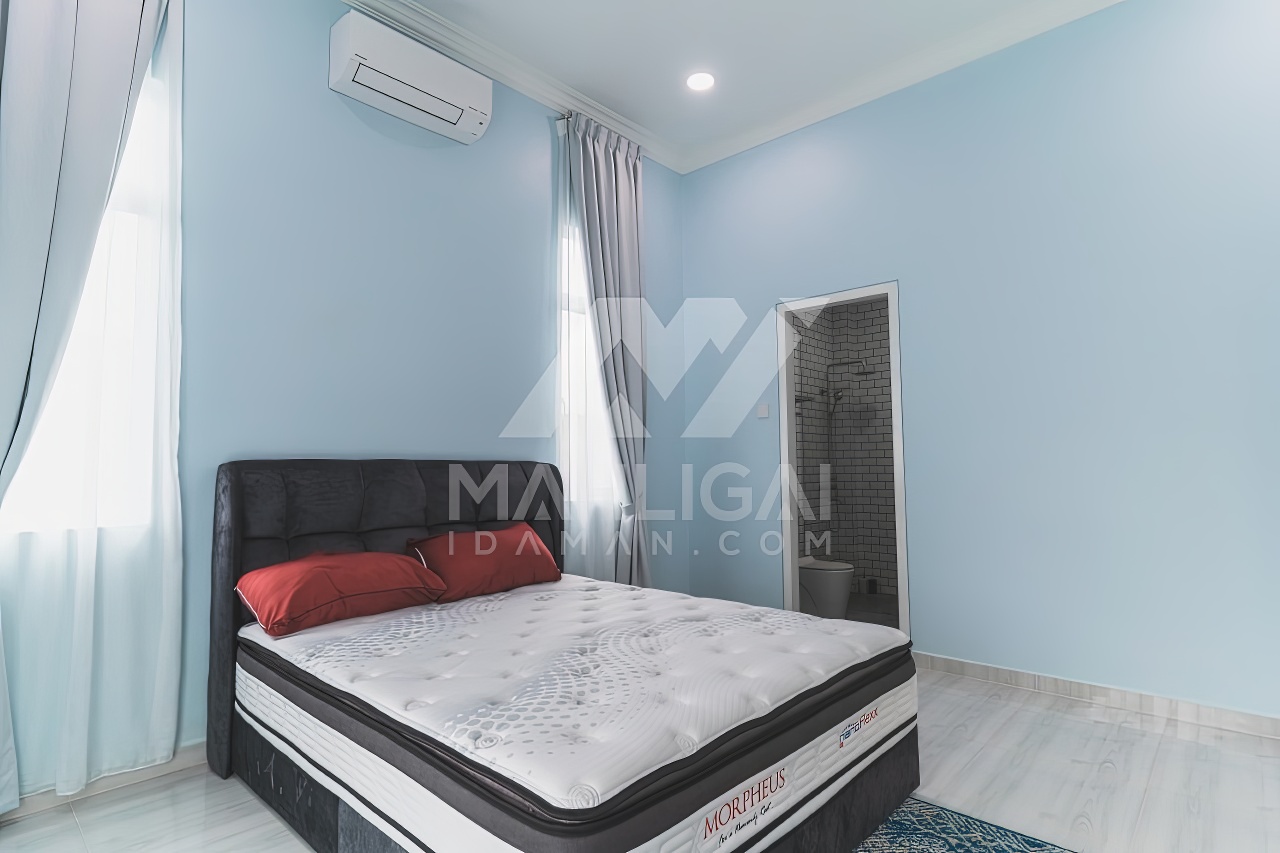 Banglo dua tingkat milik klien kami Encik Nazreen kini telah siap dibina sepenuhnya di Peringat, Kota Bharu, Kelantan. Banglo ini dilengkapi dengan empat (4) bilik tidur dan tiga (3) bilik air. Banglo yang berkeluasan 2,920 kaki persegi ini menggabungkan ciri-ciri banglo moden iaitu dari segi rekabentuk dalaman dan luaran yang sangat menarik. Dari segi penggunaan tona putih. Bahagian dalam rumah pula mereka memilih warna biru dan kuning muda, menaikan lagi seri dan kemewahan dalam rumah.