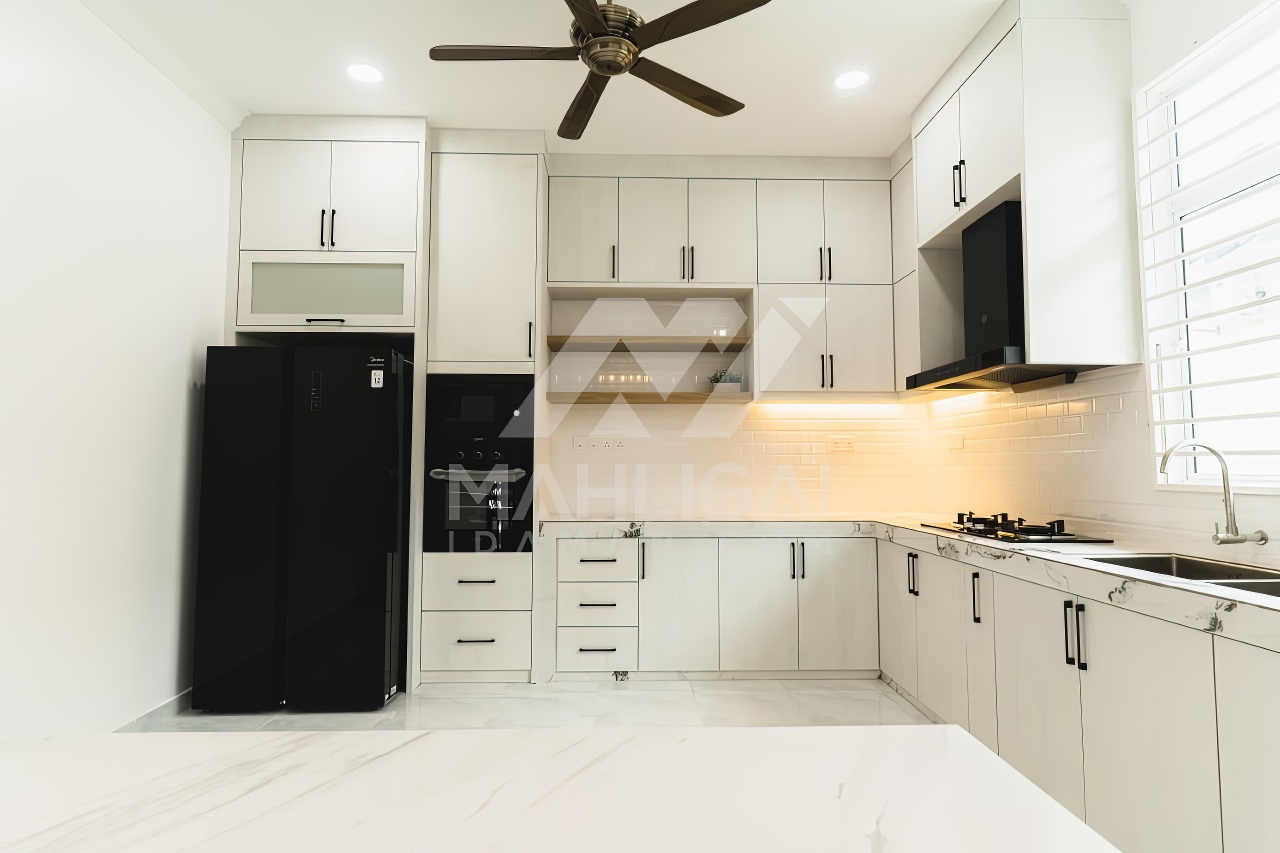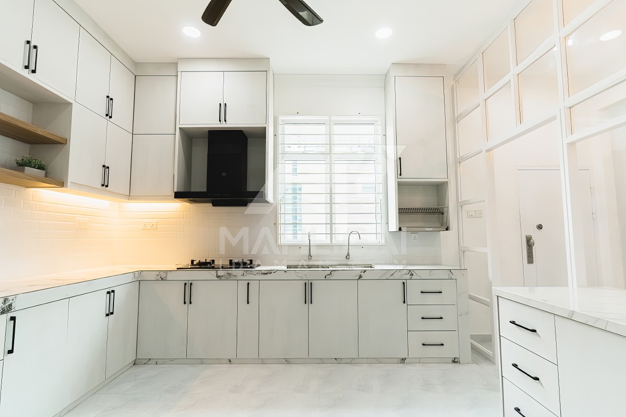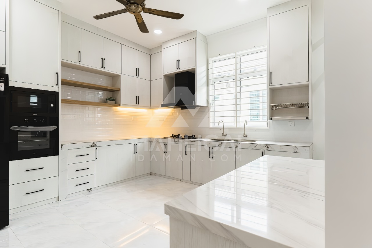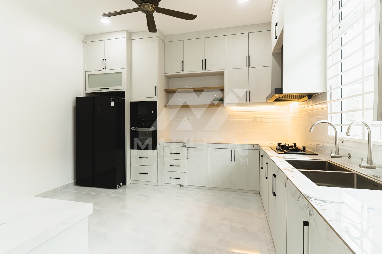 Banglo dua tingkat milik klien kami Encik Nazreen kini telah siap dibina sepenuhnya di Peringat, Kota Bharu, Kelantan. Banglo ini dilengkapi dengan empat (4) bilik tidur dan tiga (3) bilik air. Banglo yang berkeluasan 2,920 kaki persegi ini menggabungkan ciri-ciri banglo moden iaitu dari segi rekabentuk dalaman dan luaran yang sangat menarik. Dari segi penggunaan tona putih. Bahagian dalam rumah pula mereka memilih warna biru dan kuning muda, menaikan lagi seri dan kemewahan dalam rumah.