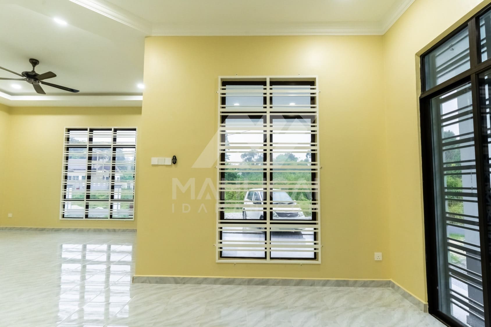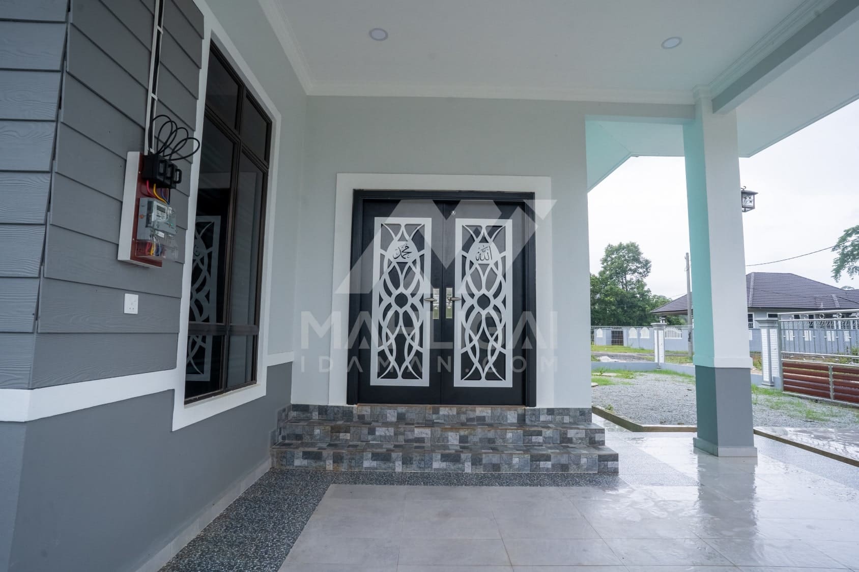 Banglo ini dibina dengan spesifikasi asas Pakej Silver dengan penambahan aksesori iaitu pemasangan cornice pada keseluruhan tingkap dan dinding luar rumah, groove line pada dinding di bahagian luar rumah.