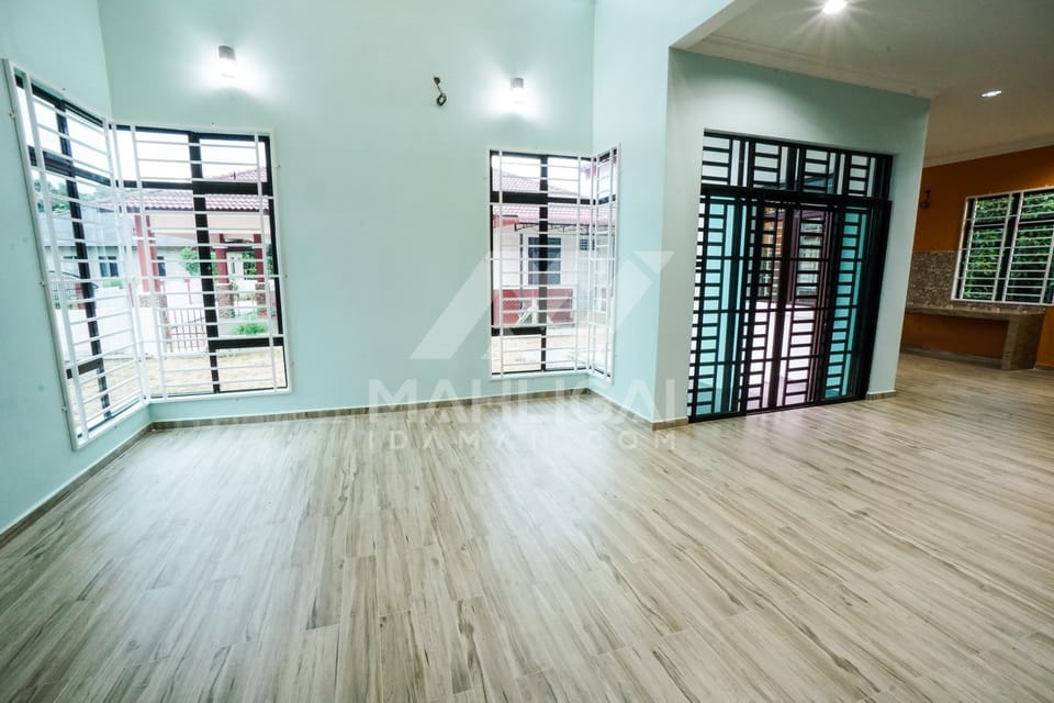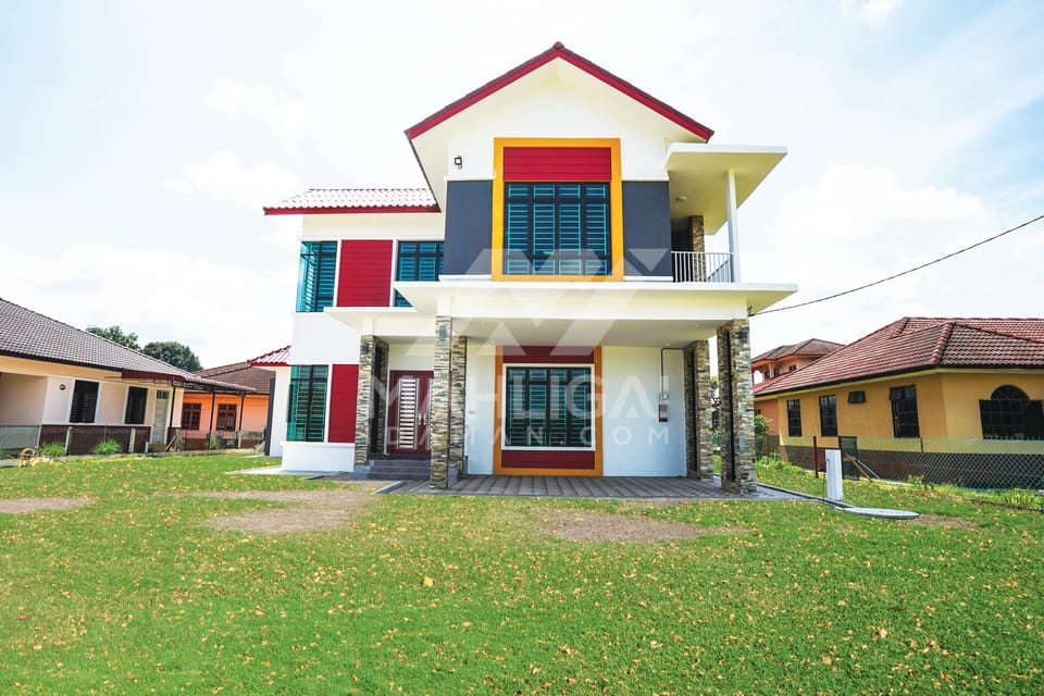 Banglo ini dibina dengan spesifikasi asas Pakej Gold dan beberapa penambahan dari sudut design seperti penggunaan batu hiasan pada tiang luar rumah, groove lines dan naik taraf cermin hitam kepada cermin berwarna hijau.