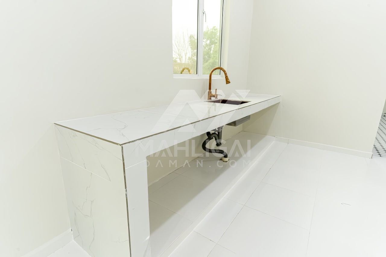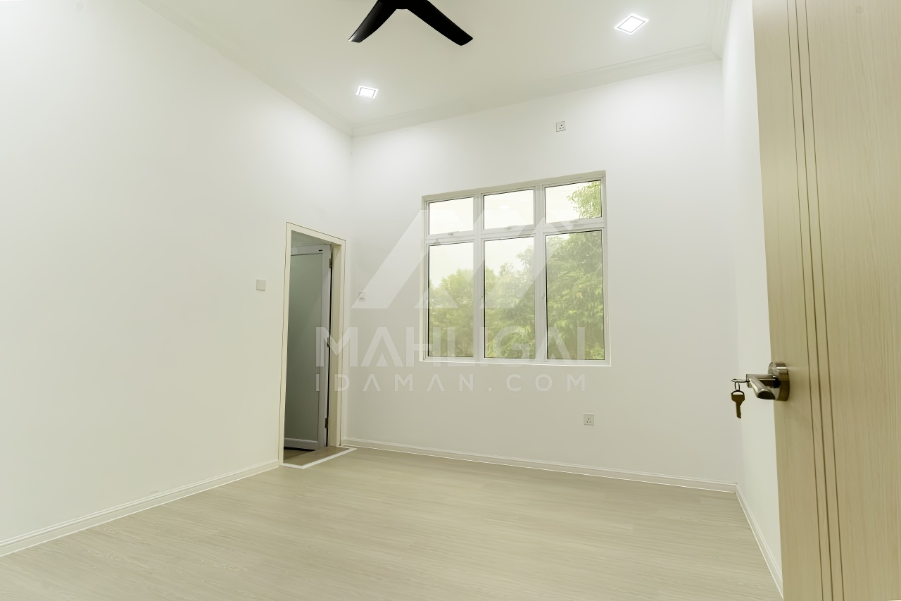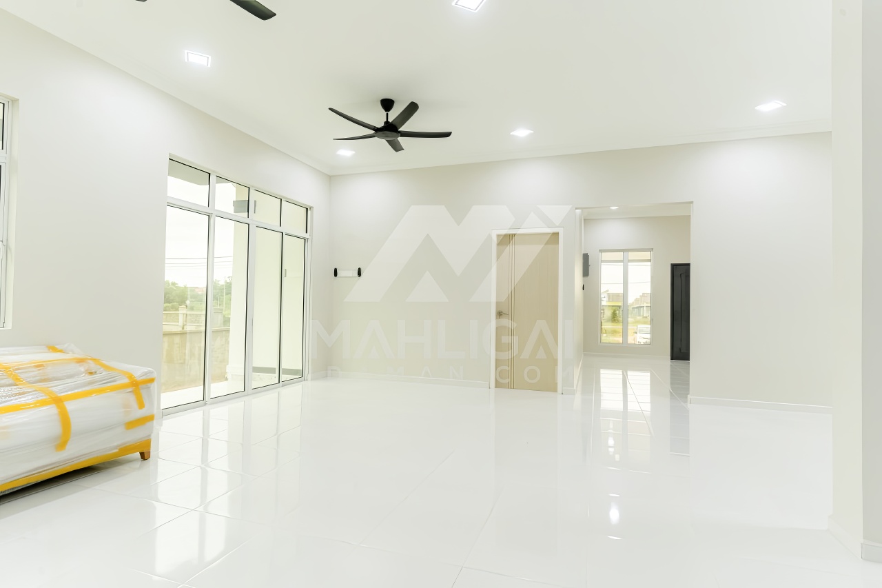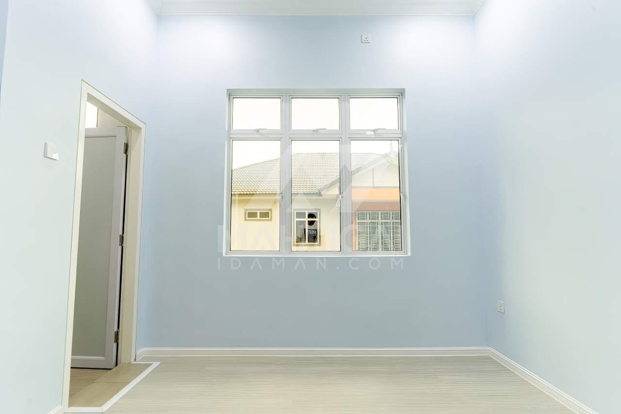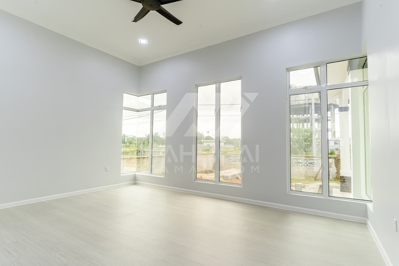 Banglo ini dibina dengan spesifikasi asas pakej gold dengan penambahan aksesori iaitu pemasangan cornice pada keseluruhan tingkap dan dinding luar rumah, groove line pada dinding di bahagian luar rumah