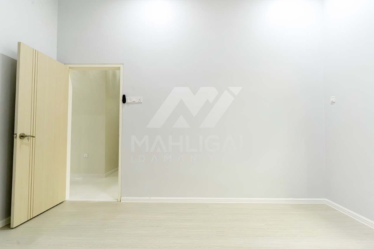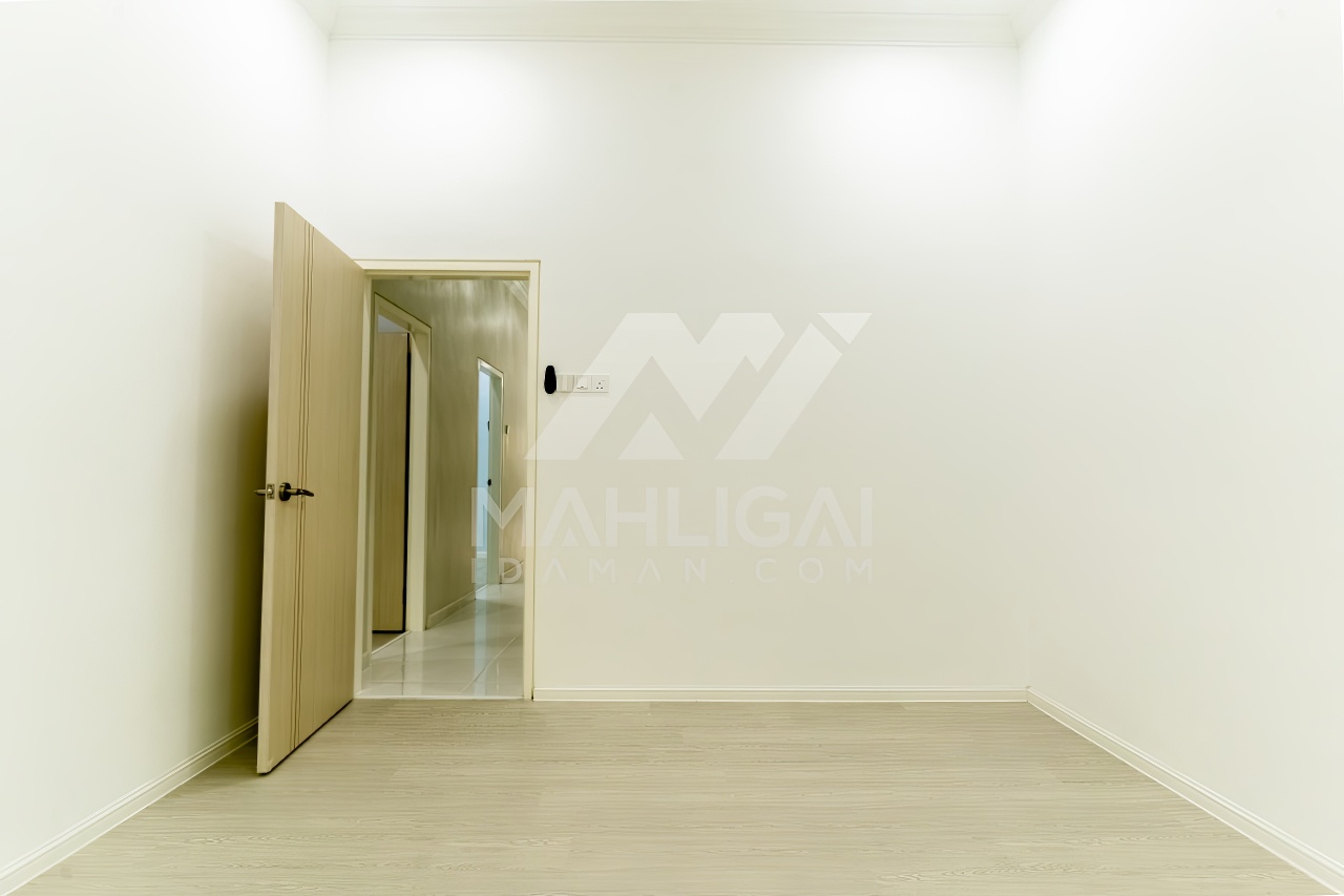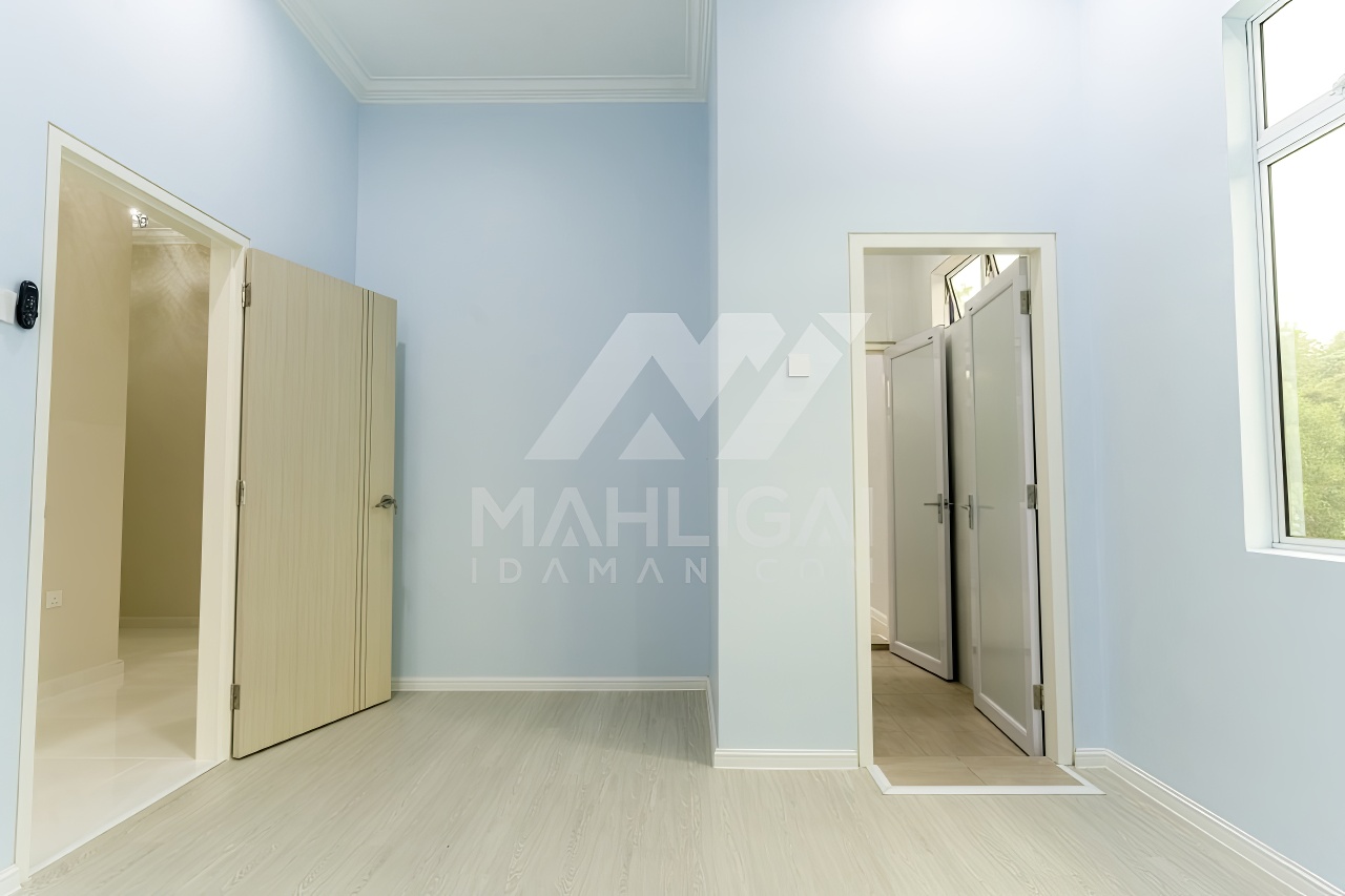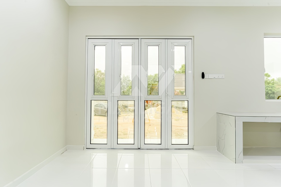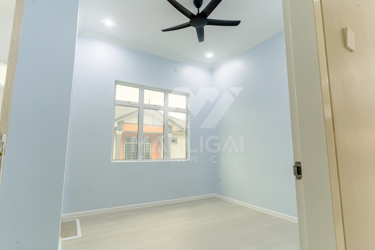Banglo ini dibina dengan spesifikasi asas pakej gold dengan penambahan aksesori iaitu pemasangan cornice pada keseluruhan tingkap dan dinding luar rumah, groove line pada dinding di bahagian luar rumah