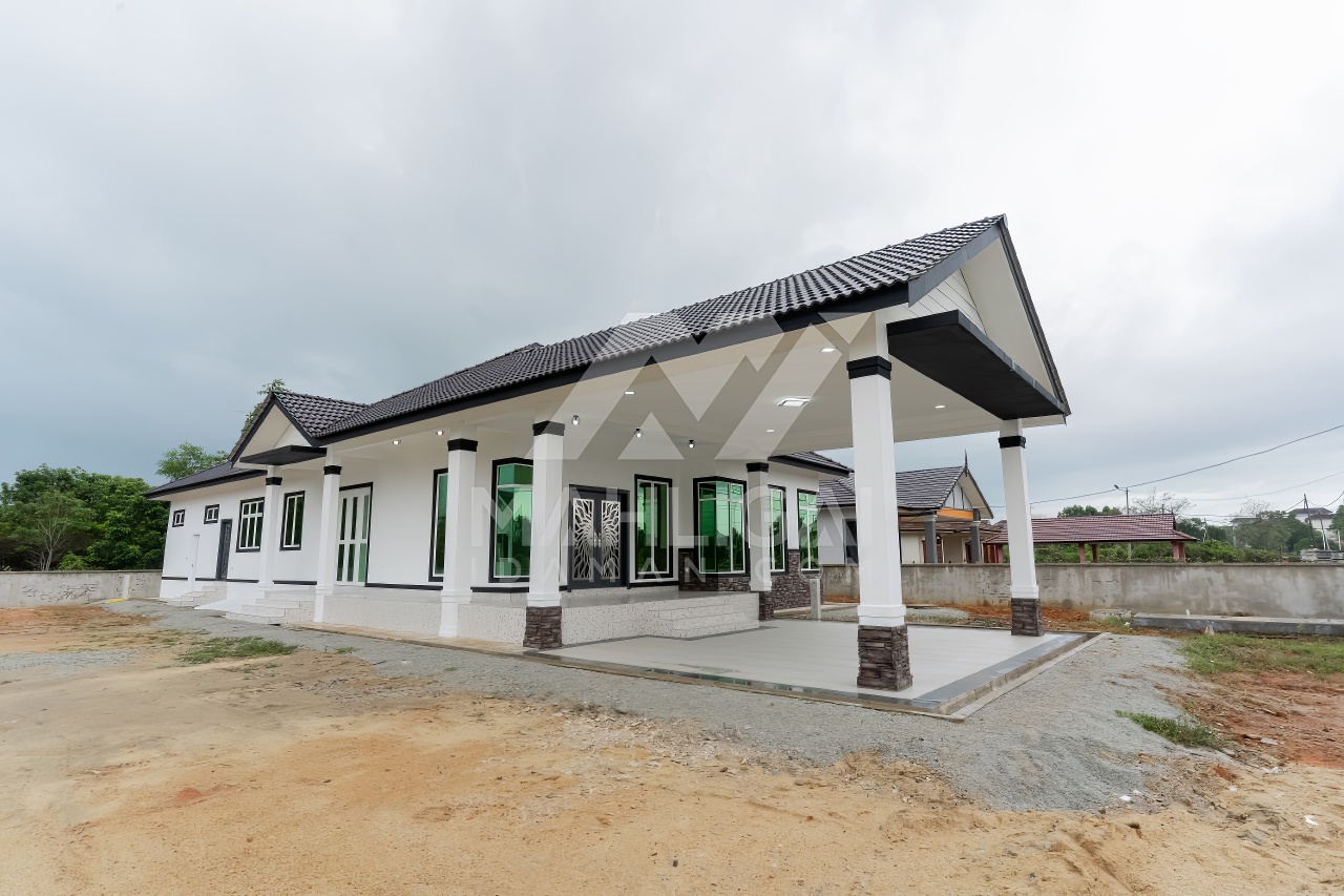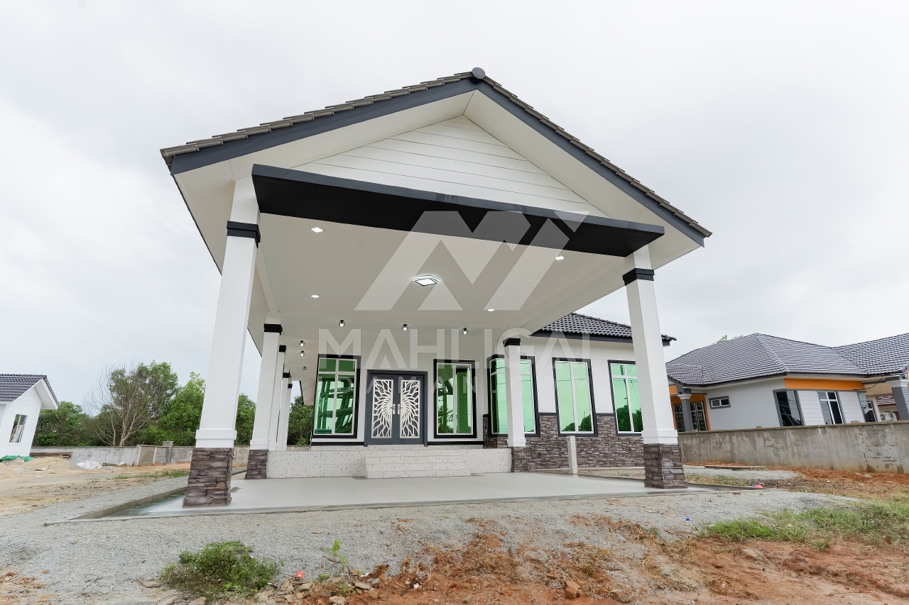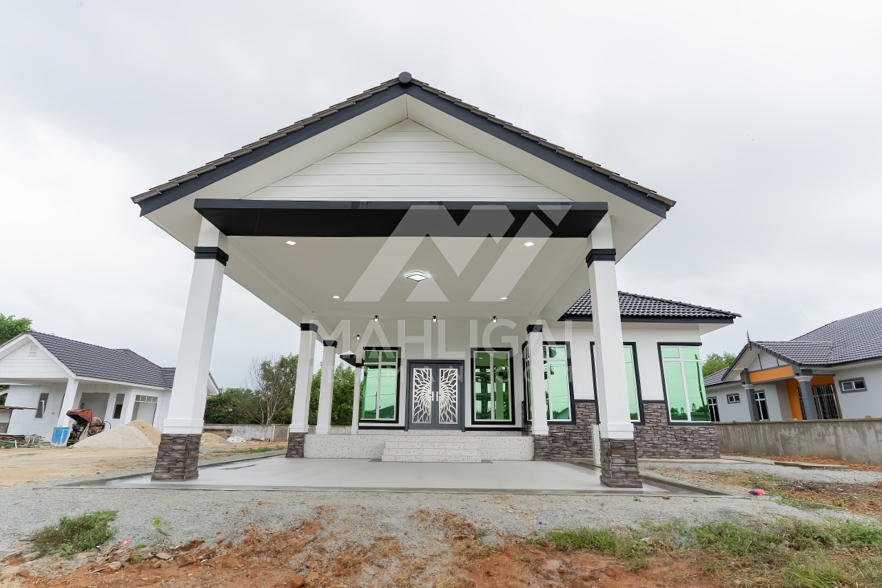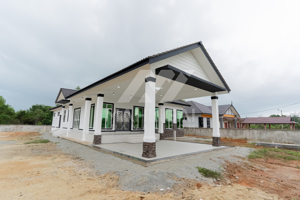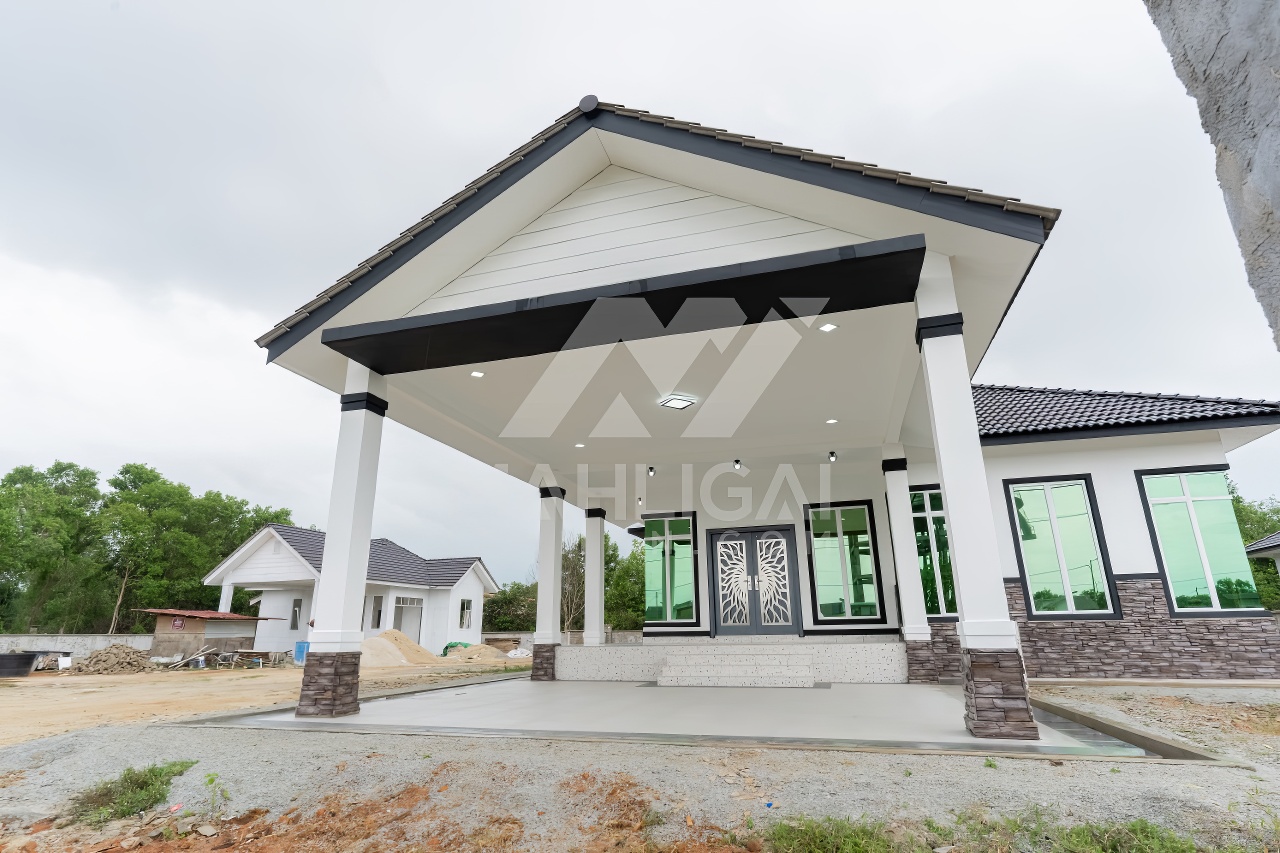 Banglo satu tingkat milik klien kami Encik Zulkifli kini telah siap dibina sepenuhnya di Kuala Besut, Terengganu. Banglo ini dilengkapi dengan empat (4) bilik tidur dan lima (5) bilik air. Banglo yang berkeluasan 2,877 kaki persegi ini menggabungkan ciri-ciri banglo moden iaitu dari segi rekabentuk dalaman dan luaran yang sangat menarik. Dari segi penggunaan warna kelabu dan putih. Bahagian dalam rumah pula mereka memilih warna putih dan biru, menaikan lagi seri dan kemewahan dalam rumah.