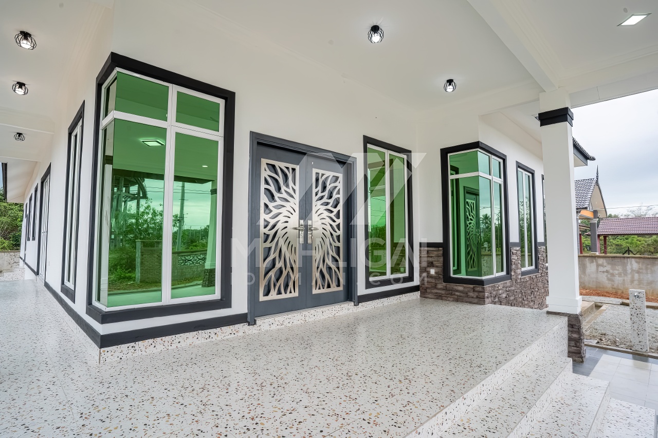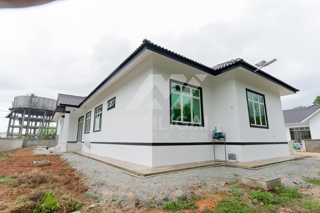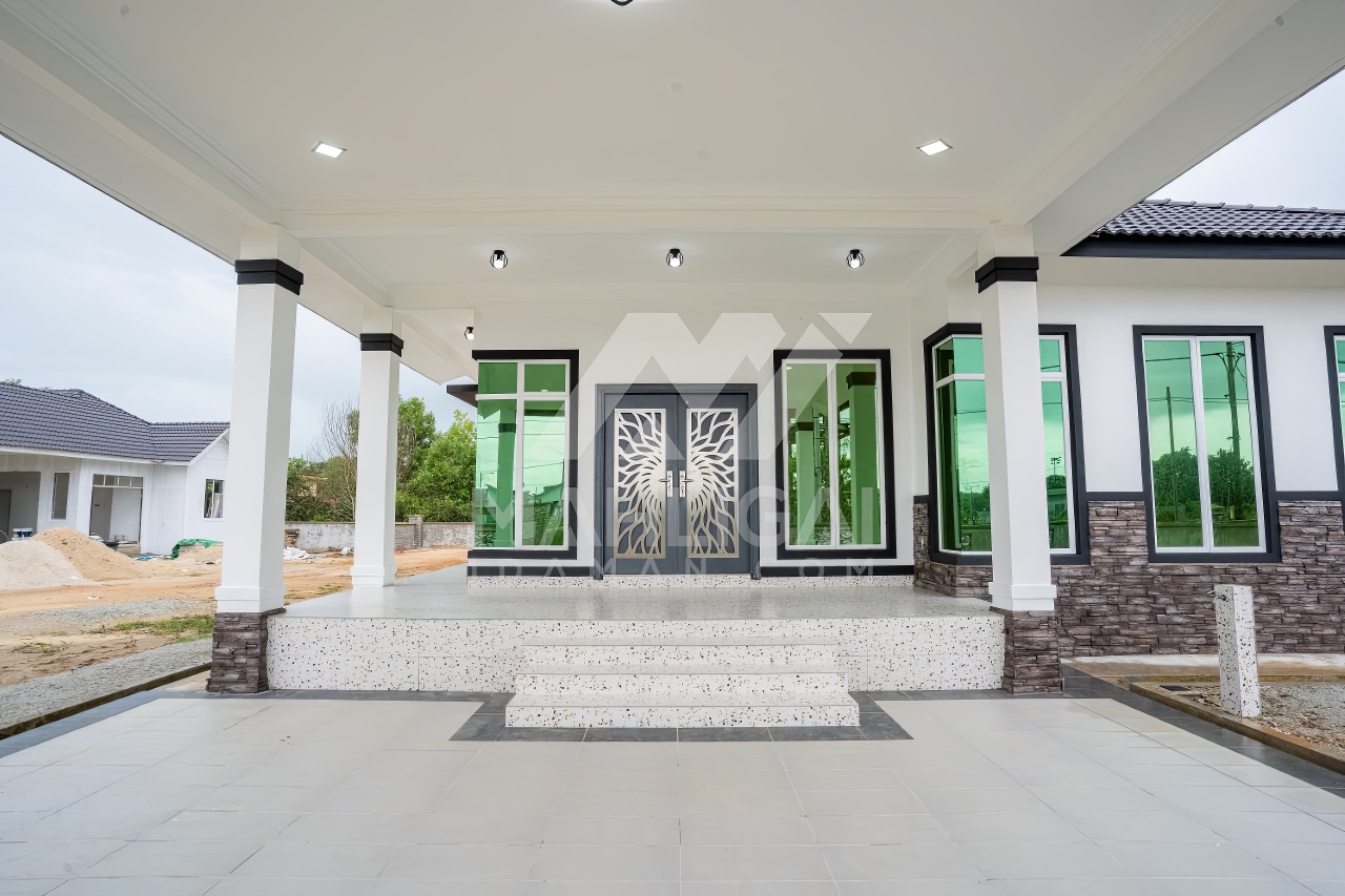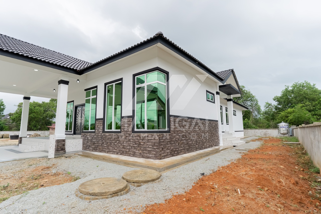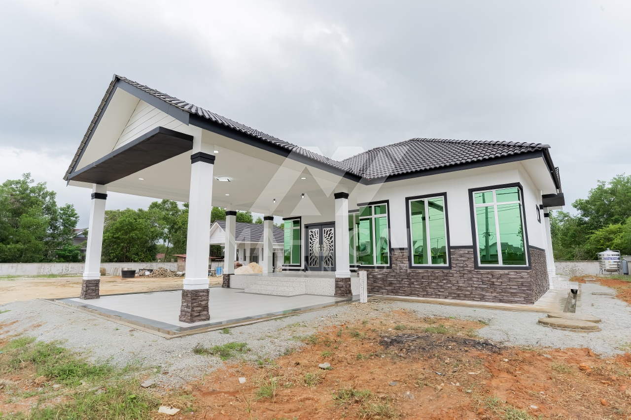 Banglo satu tingkat milik klien kami Encik Zulkifli kini telah siap dibina sepenuhnya di Kuala Besut, Terengganu. Banglo ini dilengkapi dengan empat (4) bilik tidur dan lima (5) bilik air. Banglo yang berkeluasan 2,877 kaki persegi ini menggabungkan ciri-ciri banglo moden iaitu dari segi rekabentuk dalaman dan luaran yang sangat menarik. Dari segi penggunaan warna kelabu dan putih. Bahagian dalam rumah pula mereka memilih warna putih dan biru, menaikan lagi seri dan kemewahan dalam rumah.