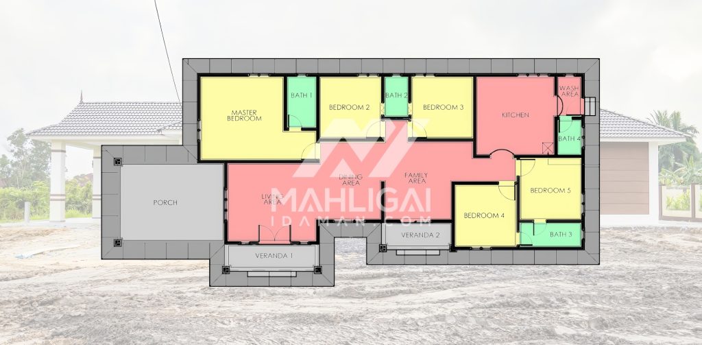 Banglo satu tingkat milik klien kami Puan Hasnah Ali telah siap dibina sepenuhnya di Marang, Terengganu. Banglo ini dilengkapi dengan lima (5) bilik tidur dan empat (4) bilik air. Banglo yang berkeluasan 2,500 kaki persegi ini menggabungkan ciri-ciri banglo moden iaitu dari segi rekabentuk dalaman dan luaran yang sangat menarik. Dari segi penggunaan warna coklat dan kuning. Bahagian dalam rumah pula mereka memilih warna putih, menaikan lagi seri dan kemewahan dalam rumah.