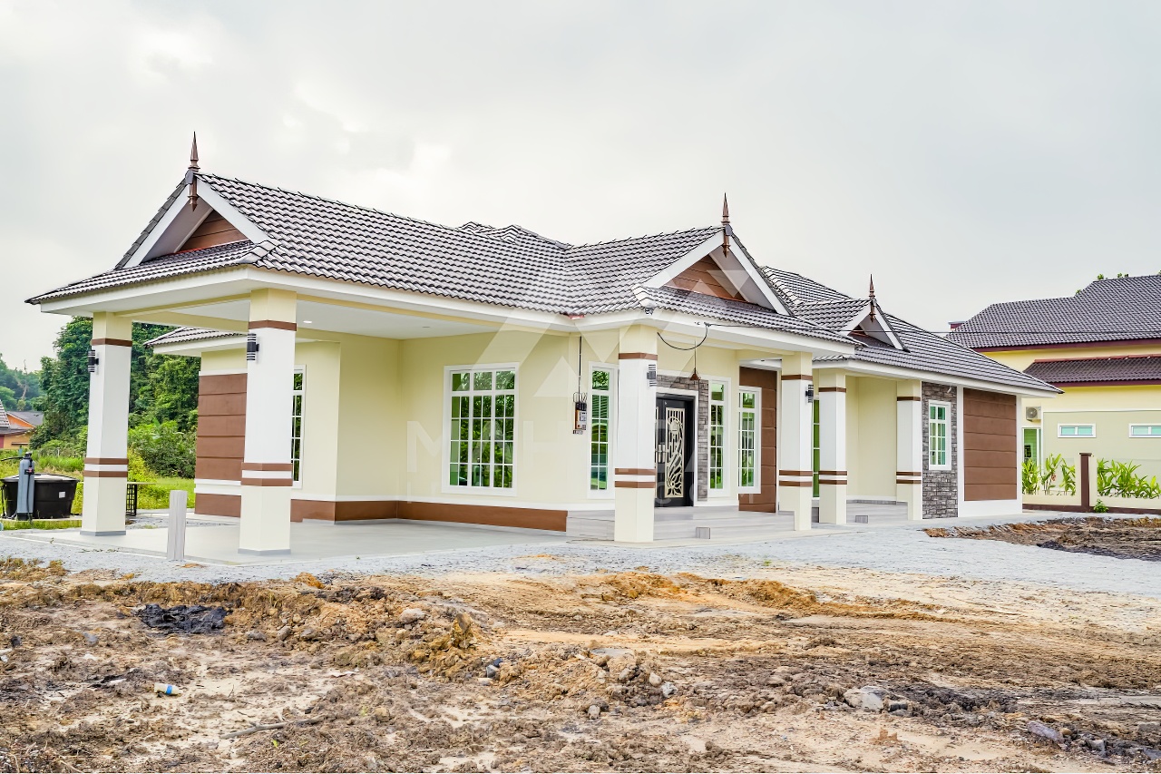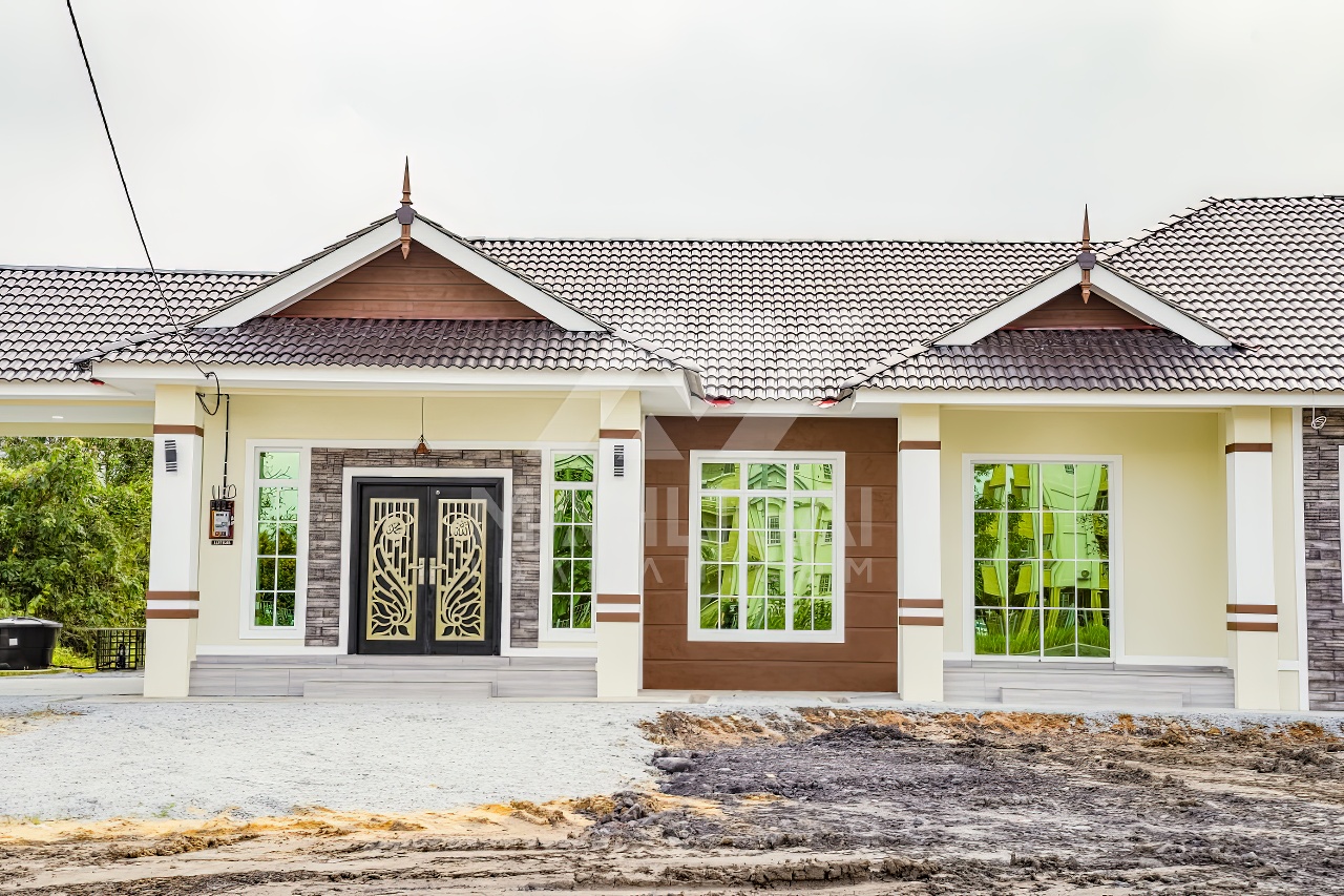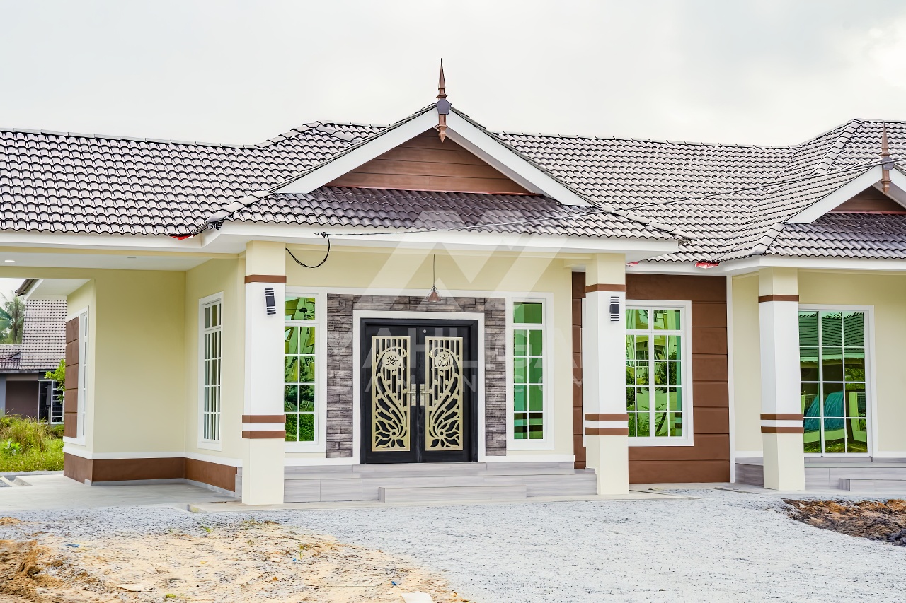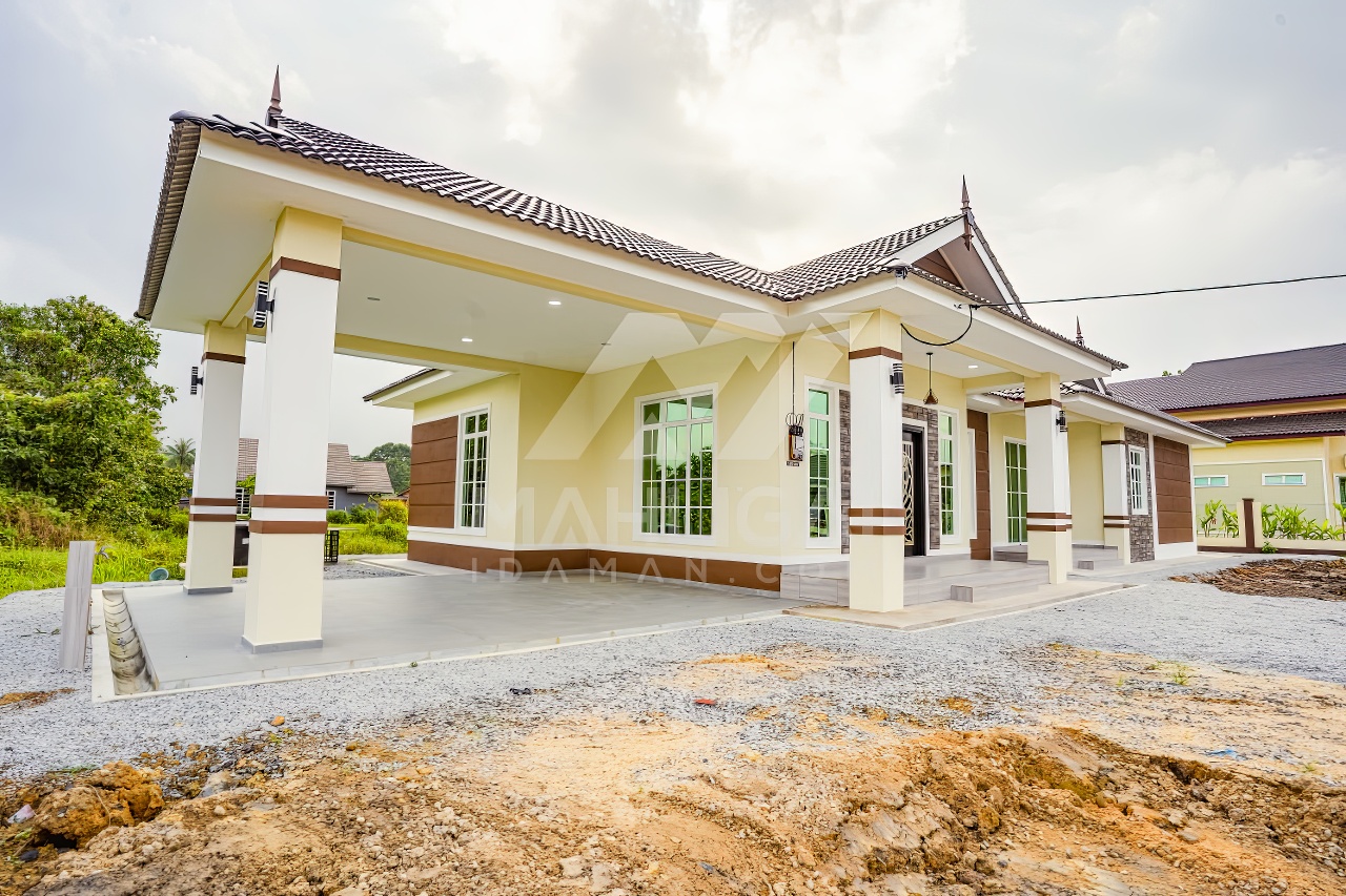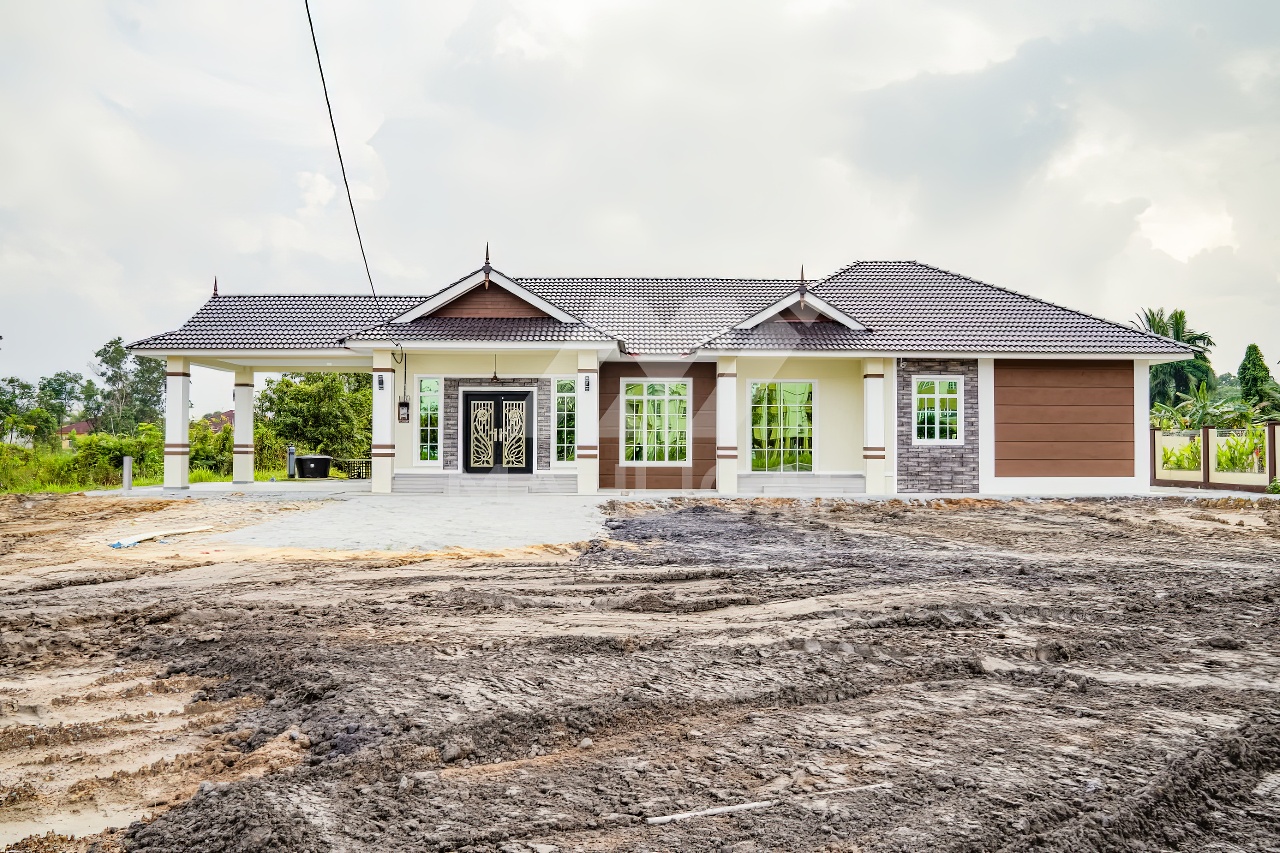Banglo satu tingkat milik klien kami Puan Hasnah Ali telah siap dibina sepenuhnya di Marang, Terengganu. Banglo ini dilengkapi dengan lima (5) bilik tidur dan empat (4) bilik air. Banglo yang berkeluasan 2,500 kaki persegi ini menggabungkan ciri-ciri banglo moden iaitu dari segi rekabentuk dalaman dan luaran yang sangat menarik. Dari segi penggunaan warna coklat dan kuning. Bahagian dalam rumah pula mereka memilih warna putih, menaikan lagi seri dan kemewahan dalam rumah.