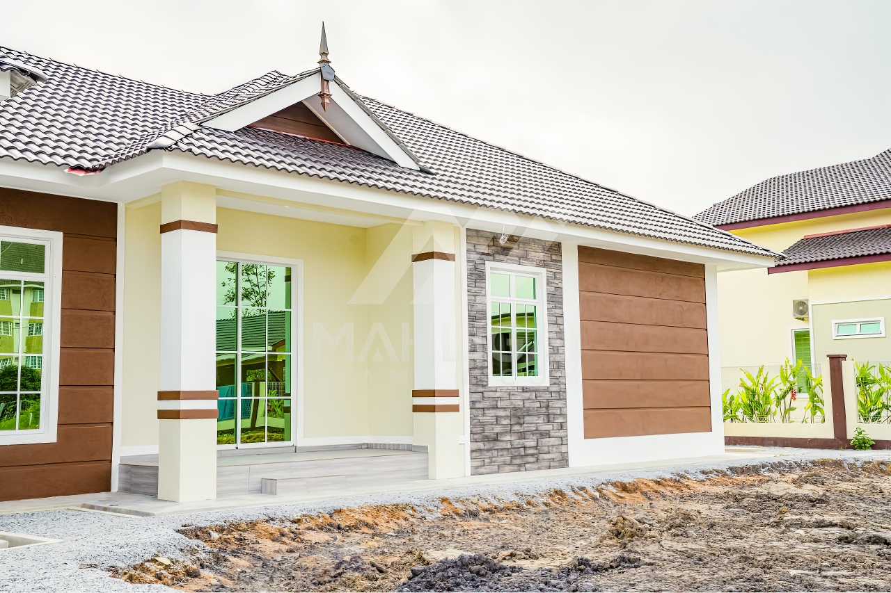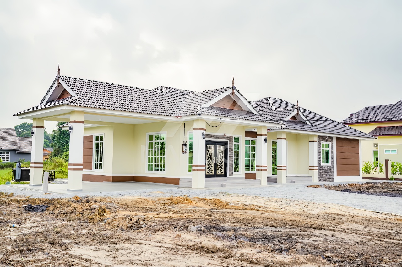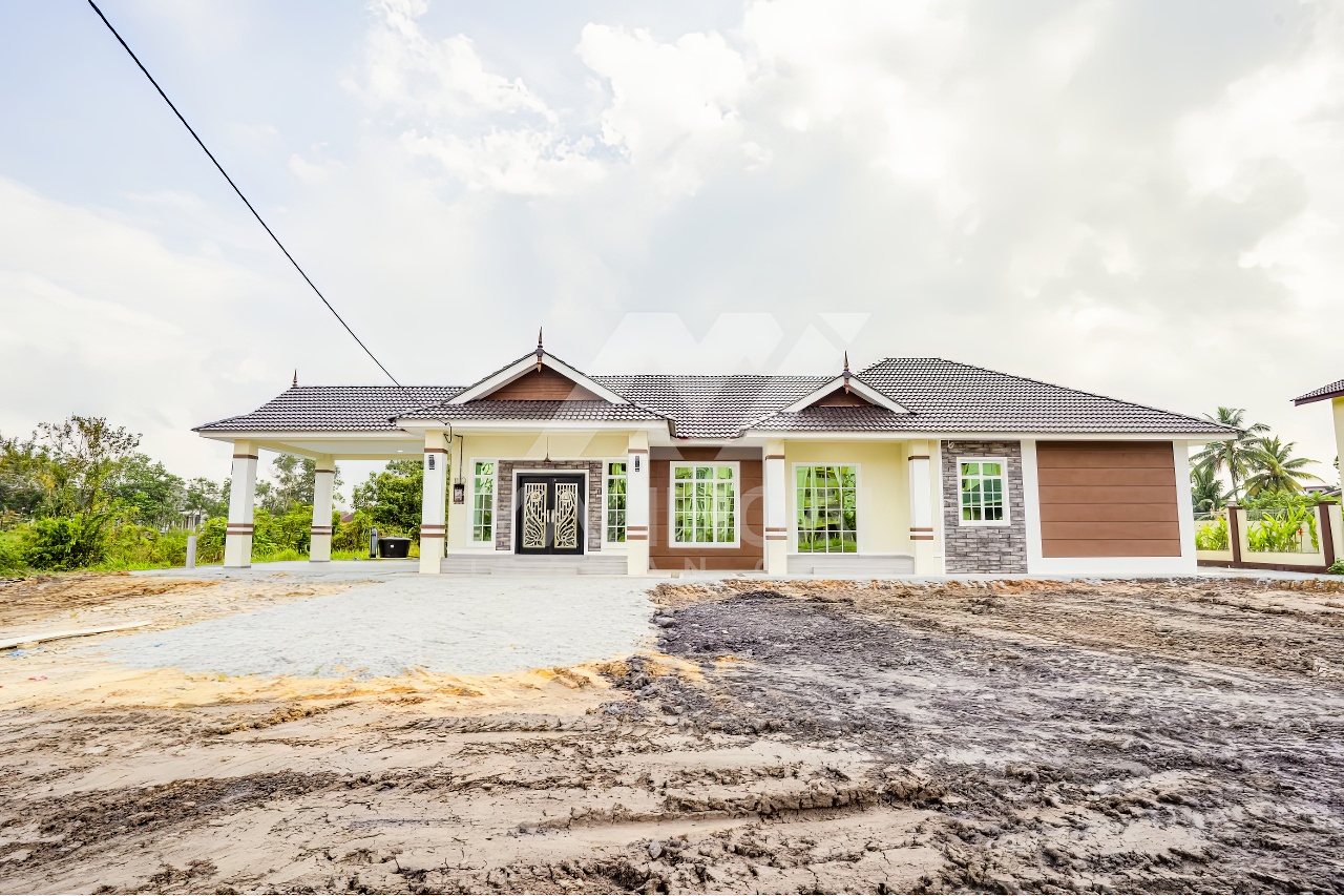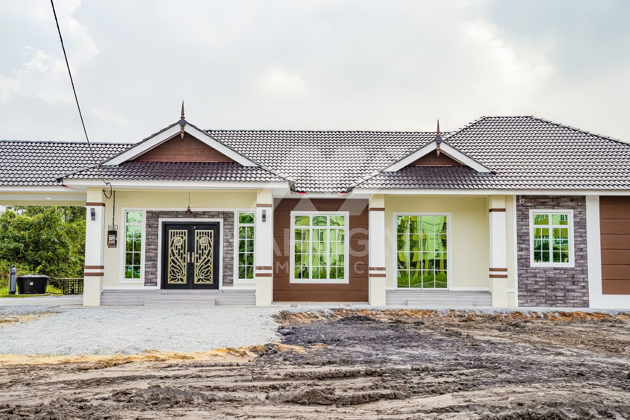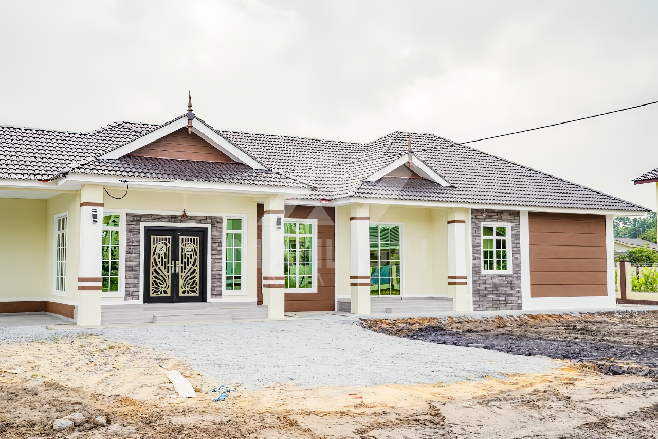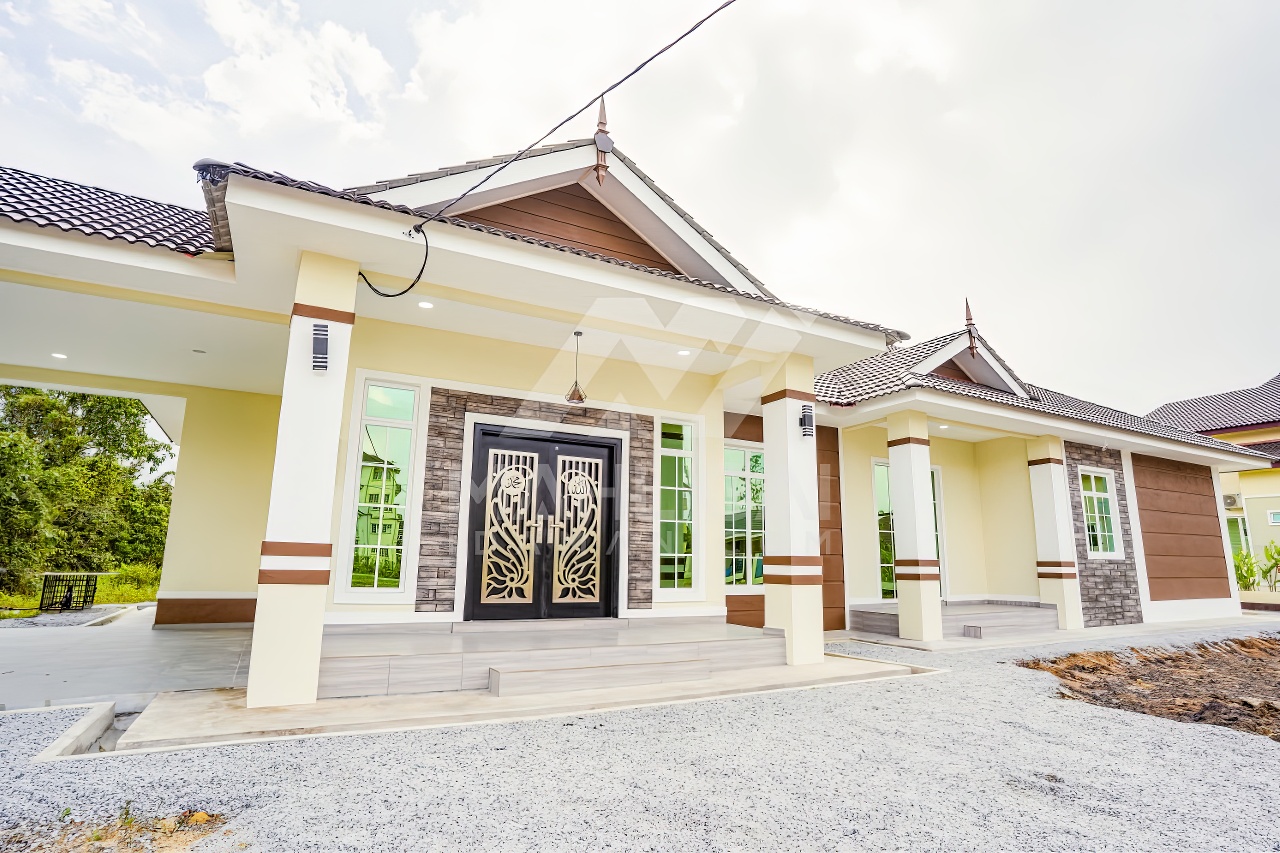 Banglo satu tingkat milik klien kami Puan Hasnah Ali telah siap dibina sepenuhnya di Marang, Terengganu. Banglo ini dilengkapi dengan lima (5) bilik tidur dan empat (4) bilik air. Banglo yang berkeluasan 2,500 kaki persegi ini menggabungkan ciri-ciri banglo moden iaitu dari segi rekabentuk dalaman dan luaran yang sangat menarik. Dari segi penggunaan warna coklat dan kuning. Bahagian dalam rumah pula mereka memilih warna putih, menaikan lagi seri dan kemewahan dalam rumah.