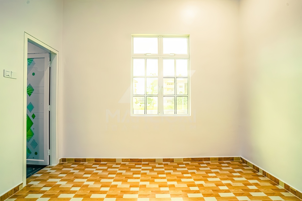 Banglo ini dibina dengan spesifikasi asas pakej silver dengan penambahan aksesori iaitu pemasangan cornice pada keseluruhan tingkap dan dinding luar rumah, groove line pada dinding di bahagian luar rumah