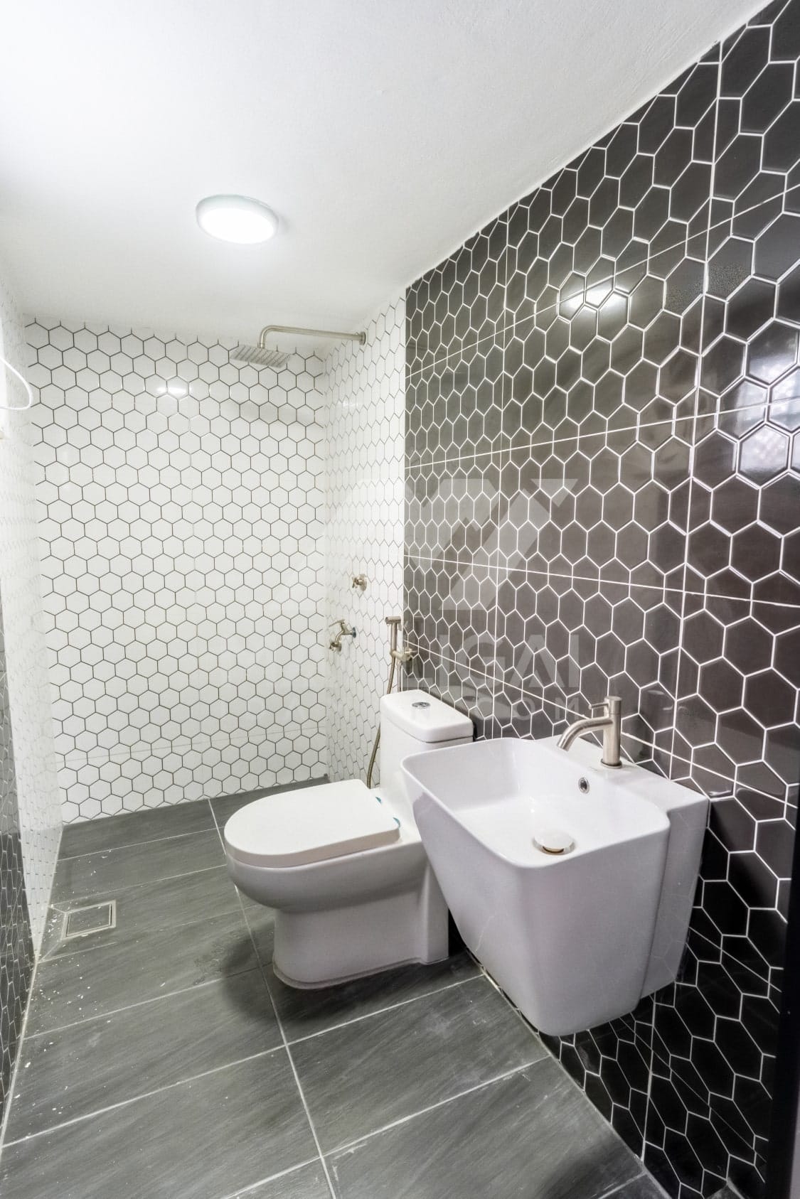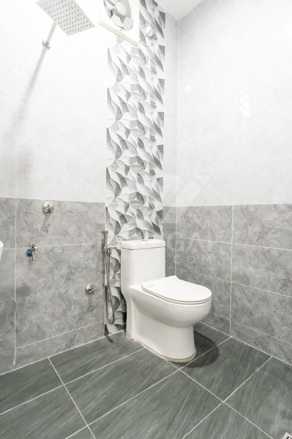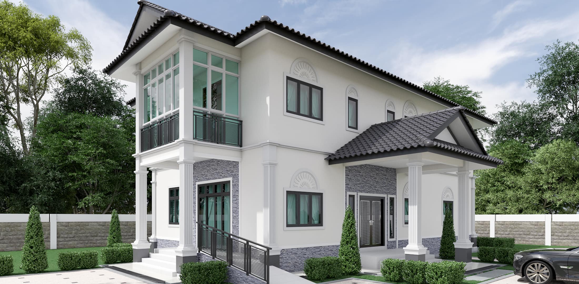 Banglo ini dibina dengan spesifikasi asas Pakej Gold dengan penambahan aksesori iaitu pemasangan cornice pada keseluruhan tingkap dan dinding luar rumah, groove line pada dinding di bahagian luar rumah.