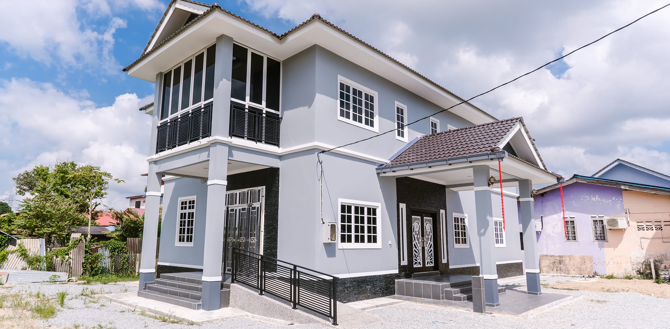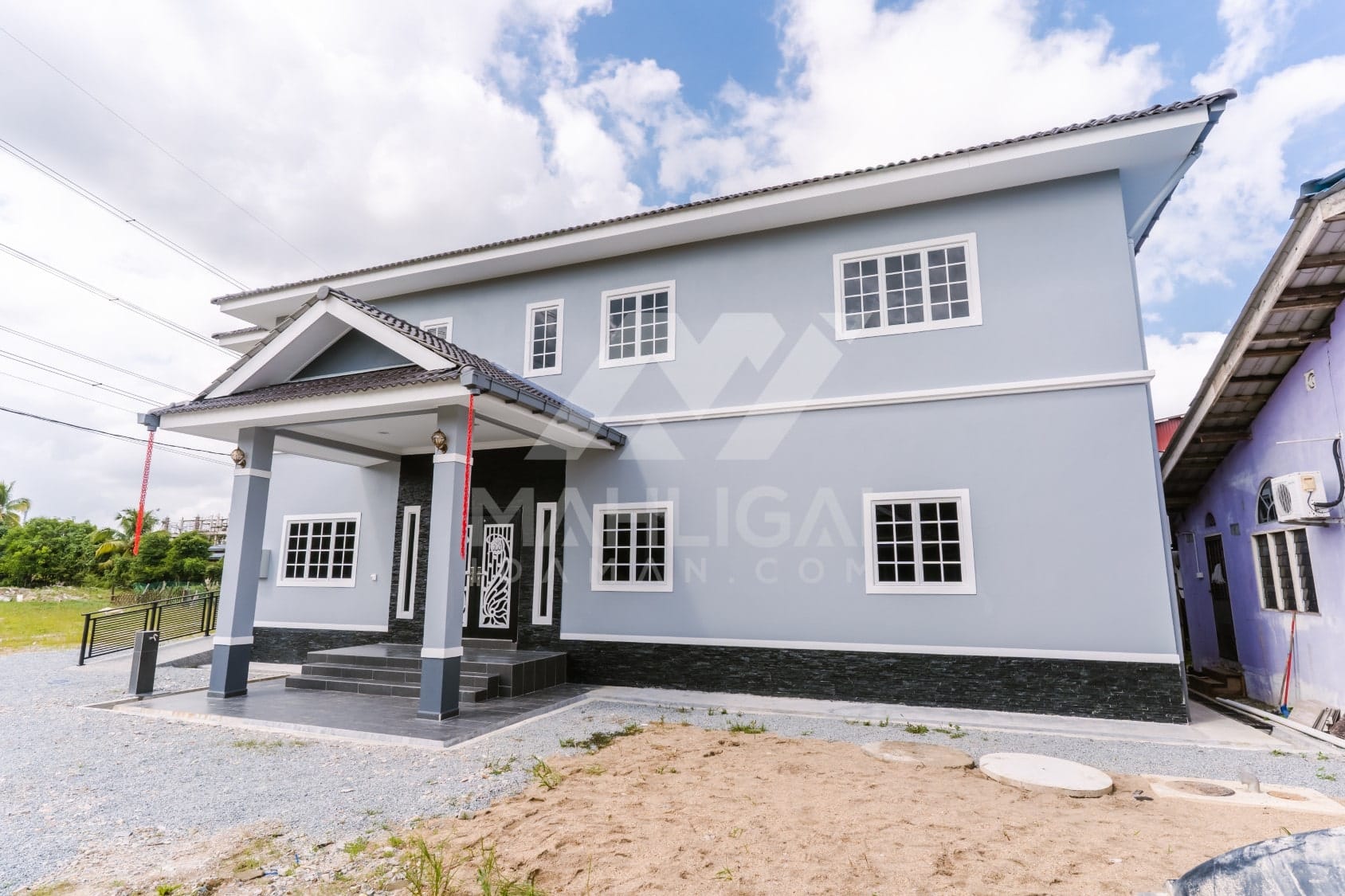Kini banglo 2 tingkat milik klien kami Pn Siti Rosmani telah siap dibina sepenuhnya di Padang Siam, Tanah Merah, Kelantan. Banglo ini dilengkapi dengan lima bilik tidur dan empat bilik air. Banglo yang berkeluasan 3,246 kaki persegi ini menggabungkan ciri-ciri banglo moden iaitu dari segi rekabentuk dalaman dan luaran yang sangat menarik. Dari segi penggunaan warna hitam dan biru kelabu. Bahagian dalam rumah pula mereka memilih warna putih dan ungu, menaikan lagi seri dan kemewahan dalam rumah.