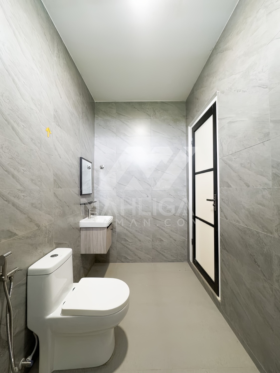 Banglo ini dibina dengan spesifikasi asas pakej gold dengan penambahan aksesori iaitu pemasangan cornice pada keseluruhan tingkap dan dinding luar rumah, groove line pada dinding di bahagian luar rumah