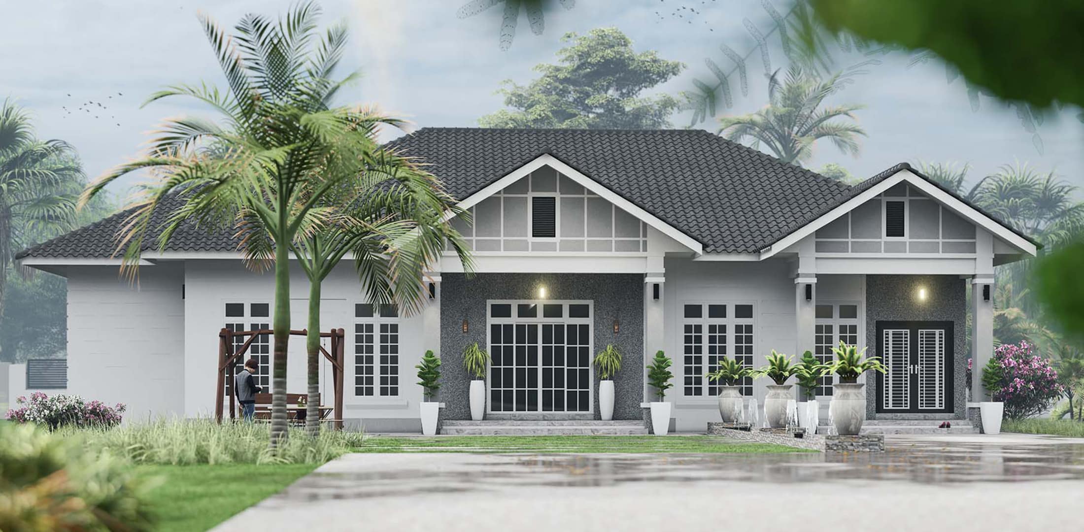 Kini banglo 1 tingkat milik klien kami Tn Suhaimi Fajri telah siap dibina sepenuhnya di Melor, Kelantan. Banglo ini dilengkapi dengan empat bilik tidur dan tiga bilik air. Banglo yang berkeluasan 2,426 kaki persegi ini menggabungkan ciri-ciri banglo moden iaitu dari segi rekabentuk dalaman dan luaran yang sangat menarik dari segi penggunaan warna putih dan Kelabu. Bahagian dalam rumah pula mereka memilih warna biru dan hijau menaikan lagi seri dan kemewahan dalam rumah.