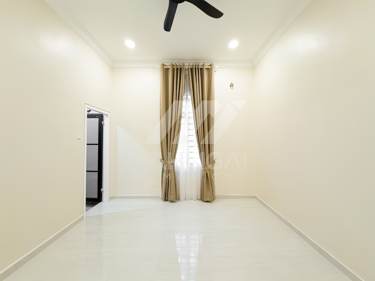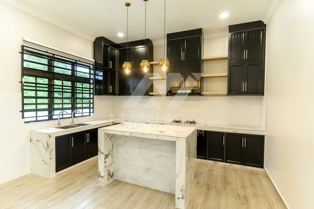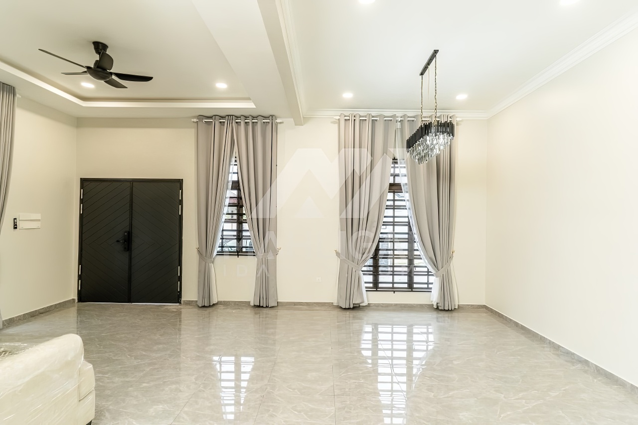 Banglo ini dibina dengan spesifikasi asas pakej gold dengan penambahan aksesori iaitu pemasangan cornice pada keseluruhan tingkap dan dinding luar rumah, groove line pada dinding di bahagian luar rumah