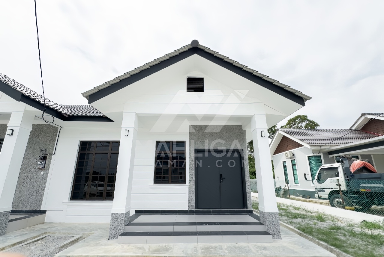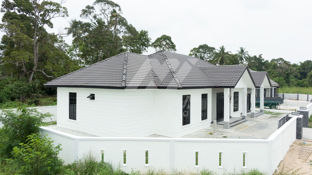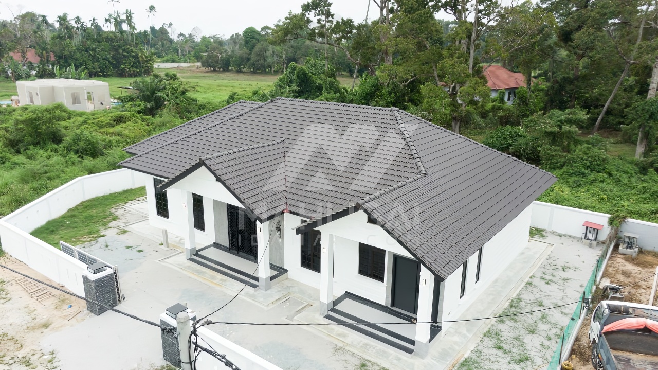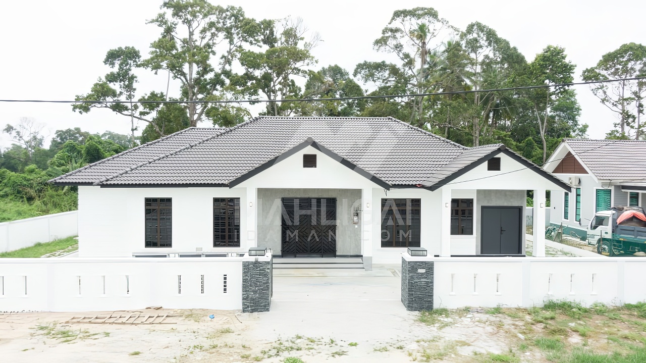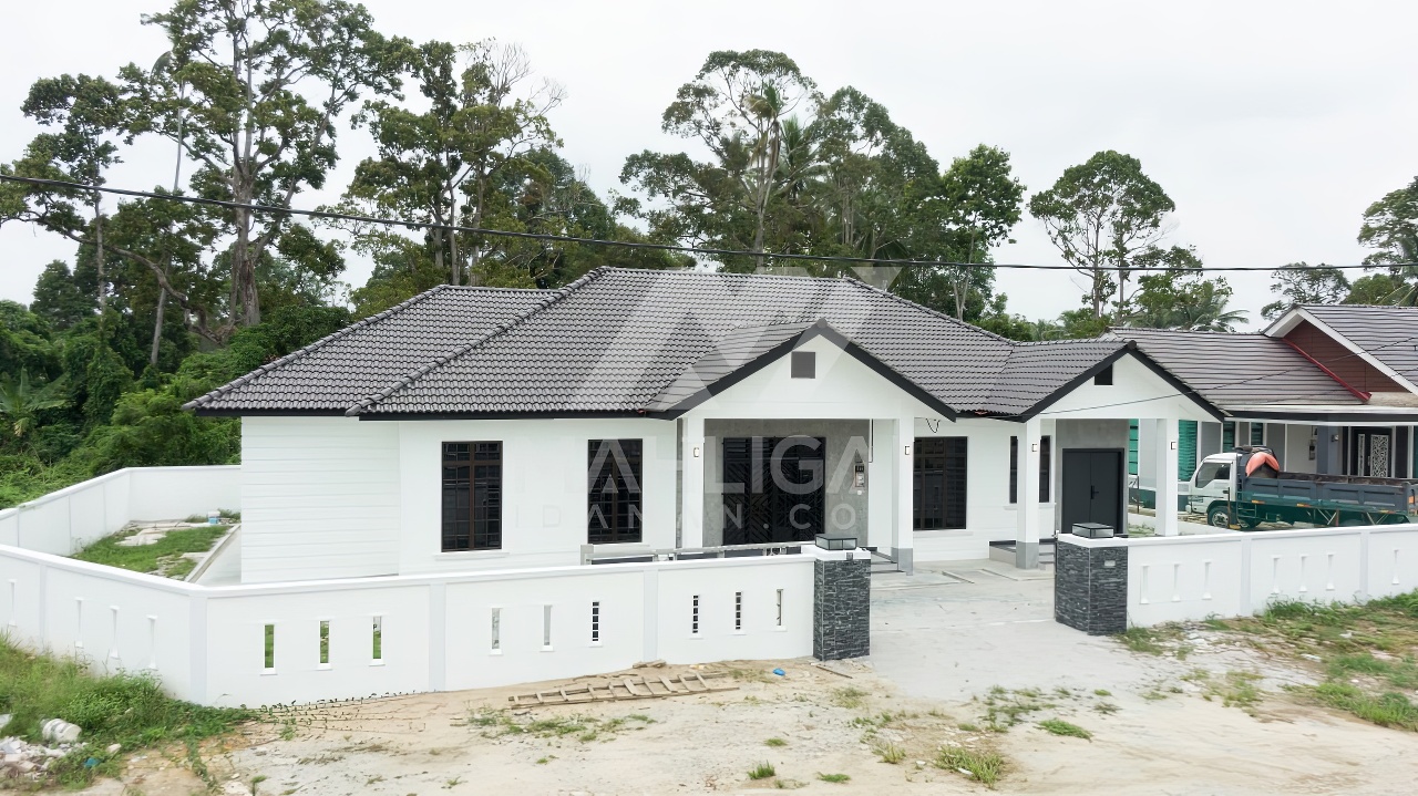 Banglo satu tingkat milik klien kami Tuan Suhaimi Fajri telah siap dibina sepenuhnya di Melor, Kelantan. Banglo ini dilengkapi dengan empat (4) bilik tidur dan tiga (3) bilik air. Banglo yang berkeluasan 2,426 kaki persegi ini menggabungkan ciri-ciri banglo moden iaitu dari segi rekabentuk dalaman dan luaran yang sangat menarik dari segi penggunaan warna putih dan Kelabu. Bahagian dalam rumah pula mereka memilih warna biru dan hijau menaikan lagi seri dan kemewahan dalam rumah.