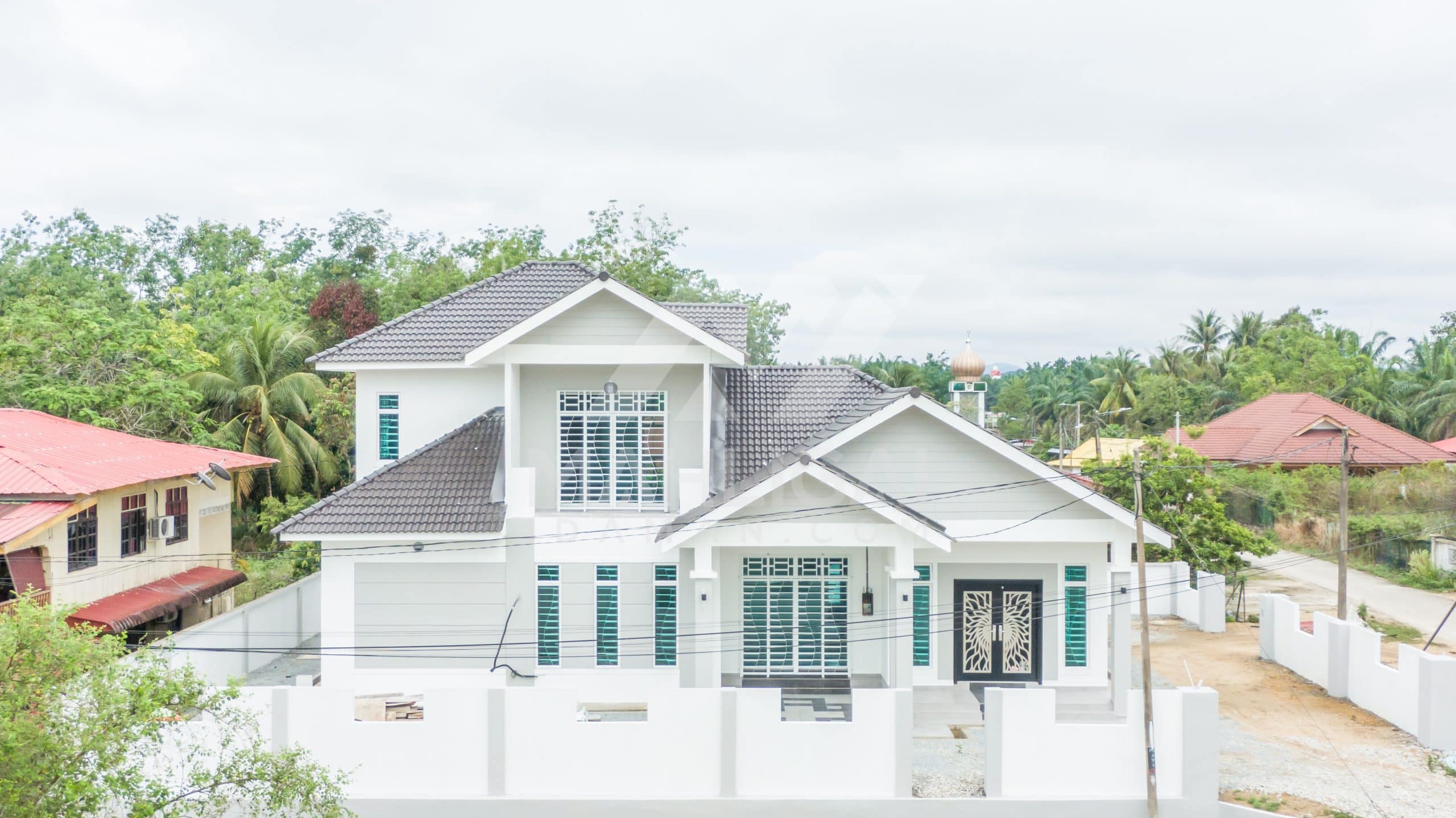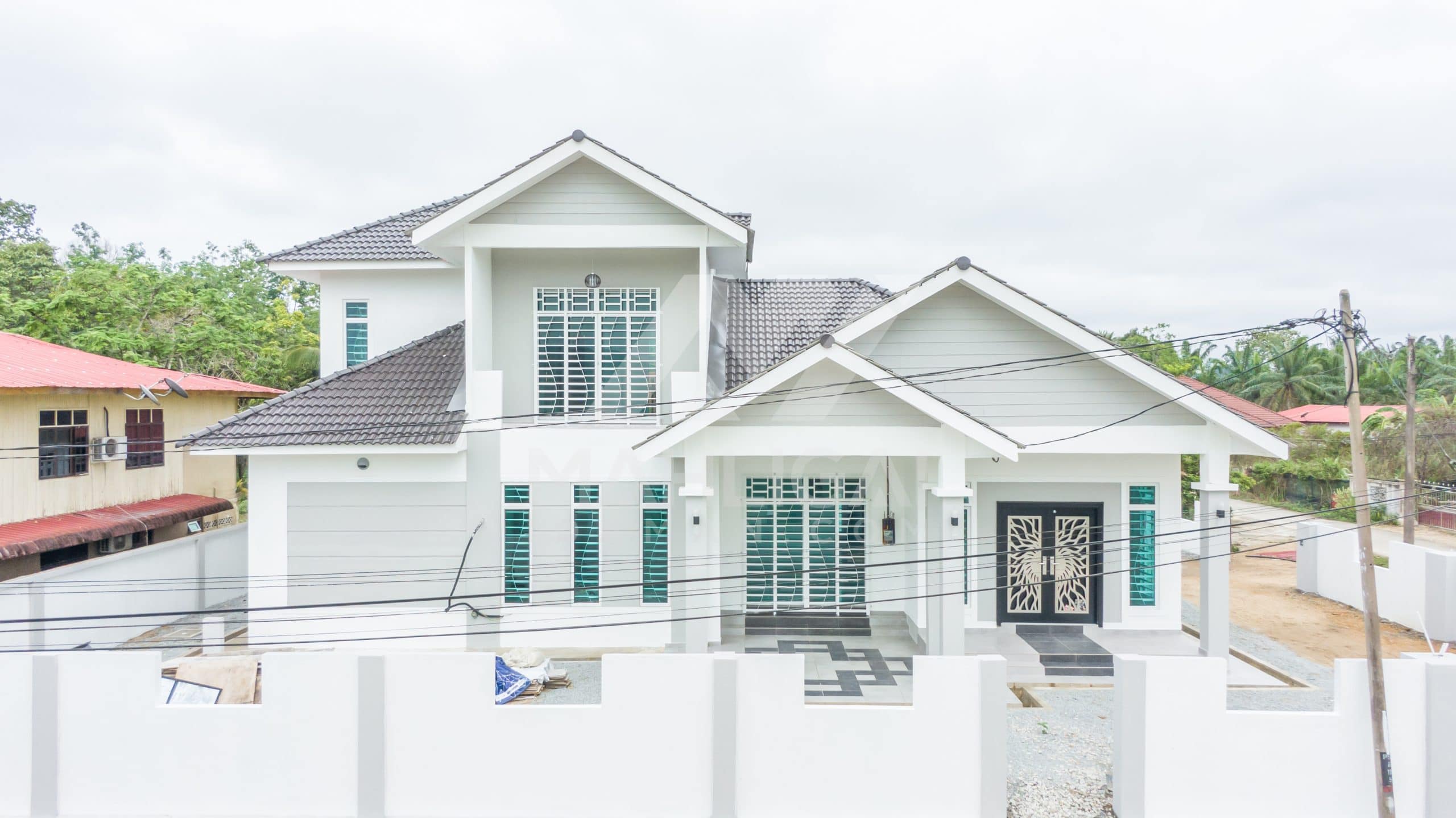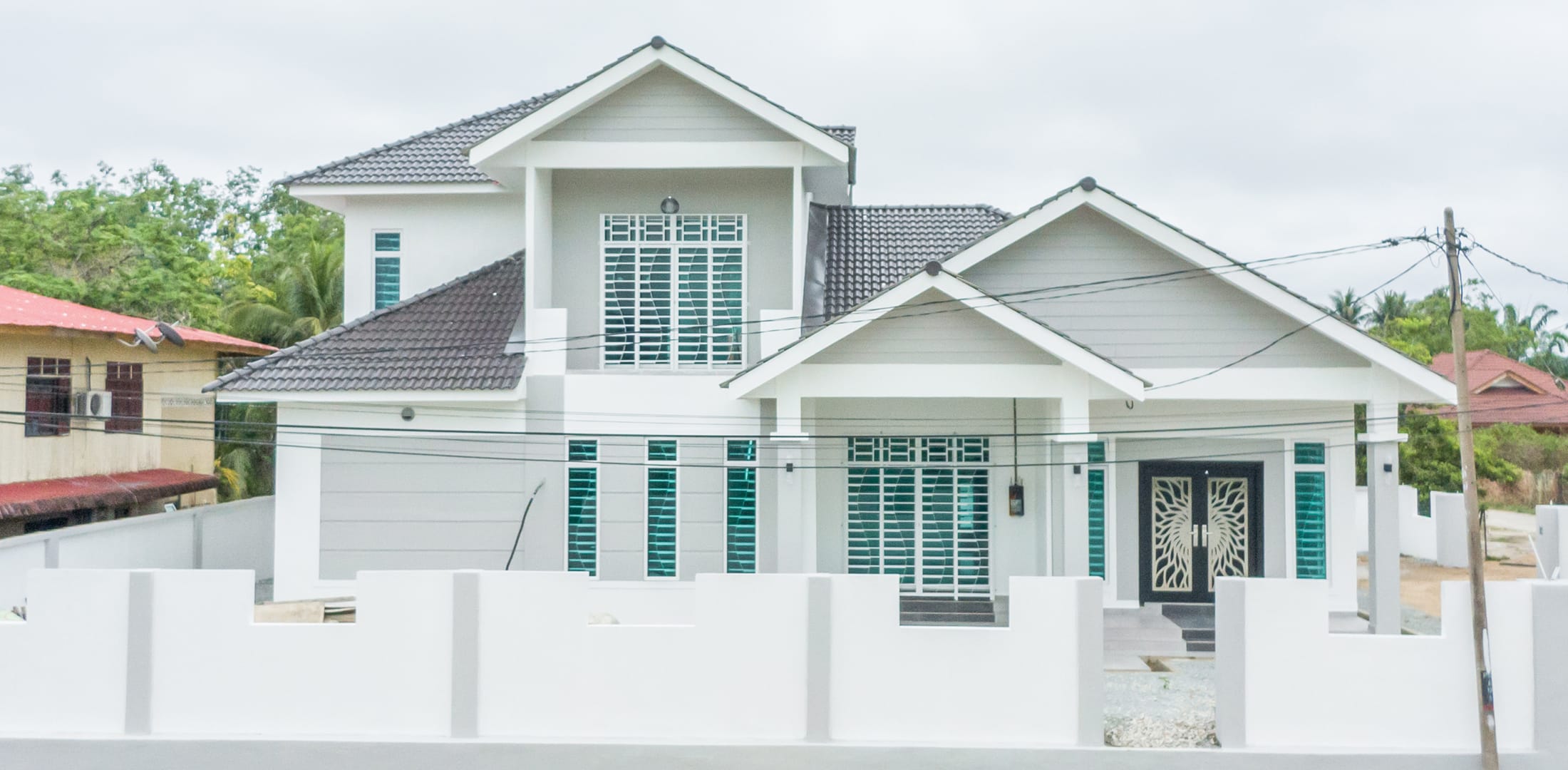 Kini banglo 2 tingkat milik klien kami Puan Azlina telah siap dibina sepenuhnya di Sg Durian Kuala Krai, Kelantan. Banglo ini dilengkapi dengan lima bilik tidur dan empat bilik air. Banglo yang berkeluasan 2,912 kaki persegi ini menggabungkan ciri-ciri banglo moden iaitu dari segi rekabentuk dalaman dan luaran yang sangat menarik dari segi penggunaan warna putih dan Kelabu. Bahagian dalam rumah pula mereka memilih warna putih, kuning dan biru menaikan lagi seri dan kemewahan dalam rumah.