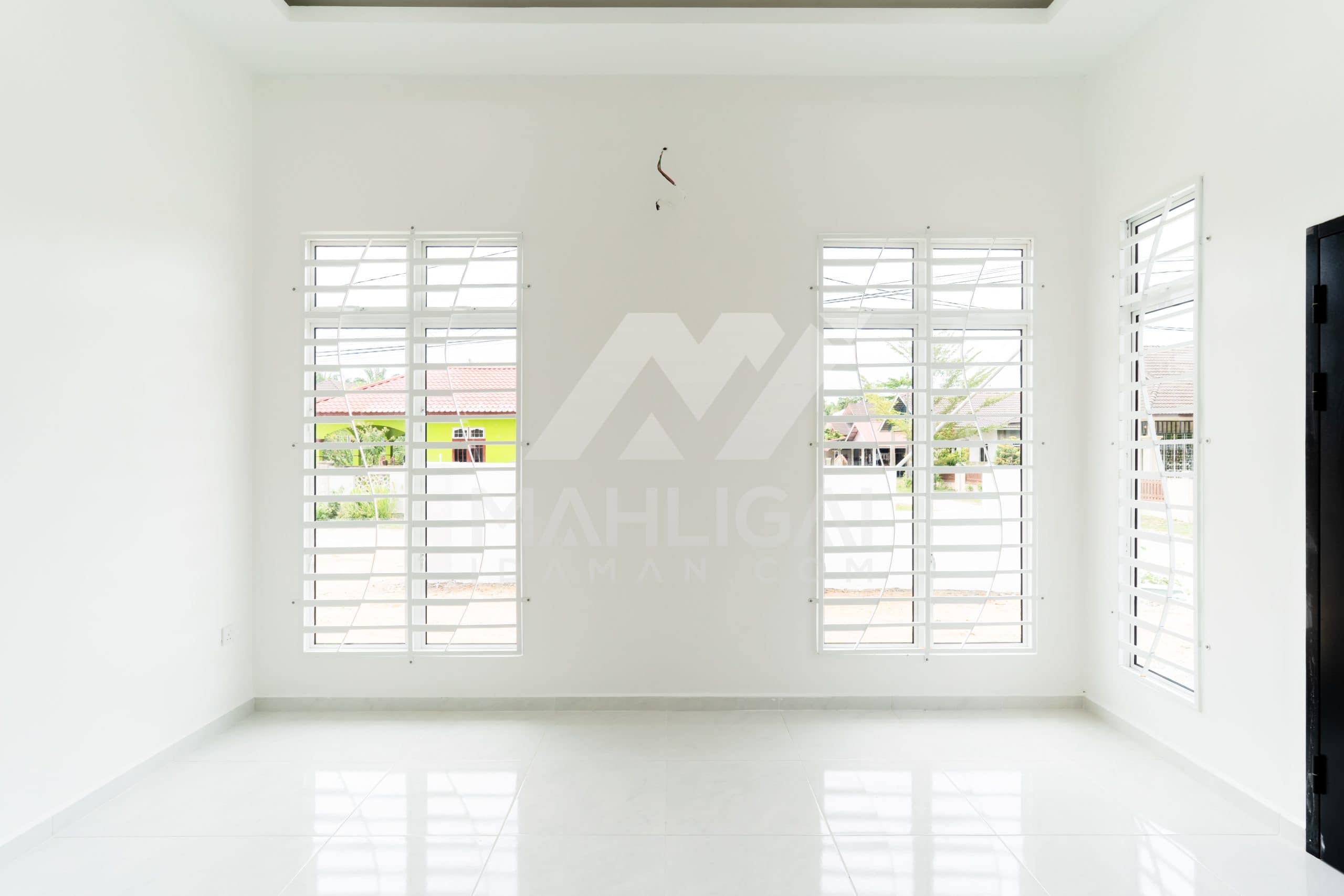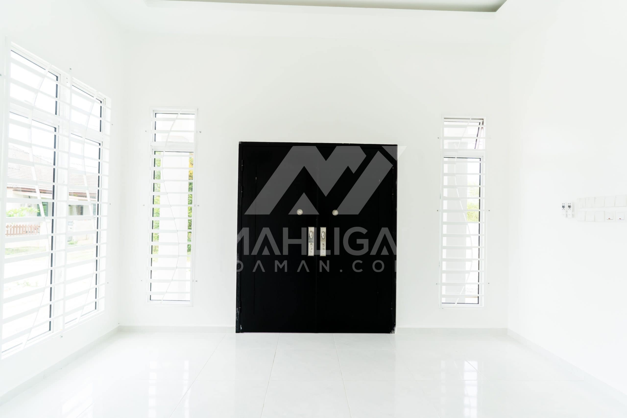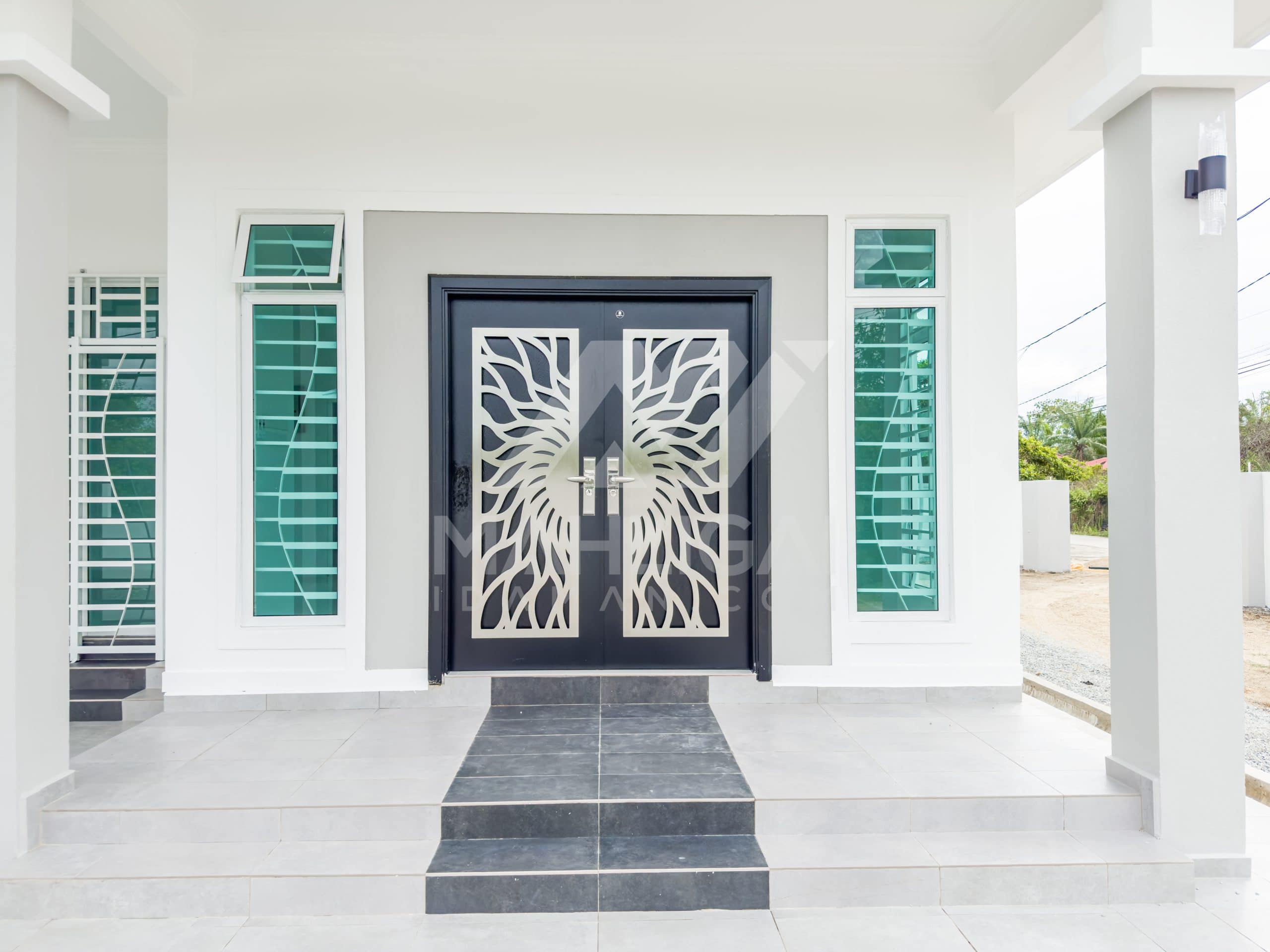 Banglo ini dibina dengan spesifikasi asas Pakej Gold dengan penambahan aksesori iaitu pemasangan cornice pada keseluruhan tingkap dan dinding luar rumah, groove line pada dinding di bahagian luar rumah.