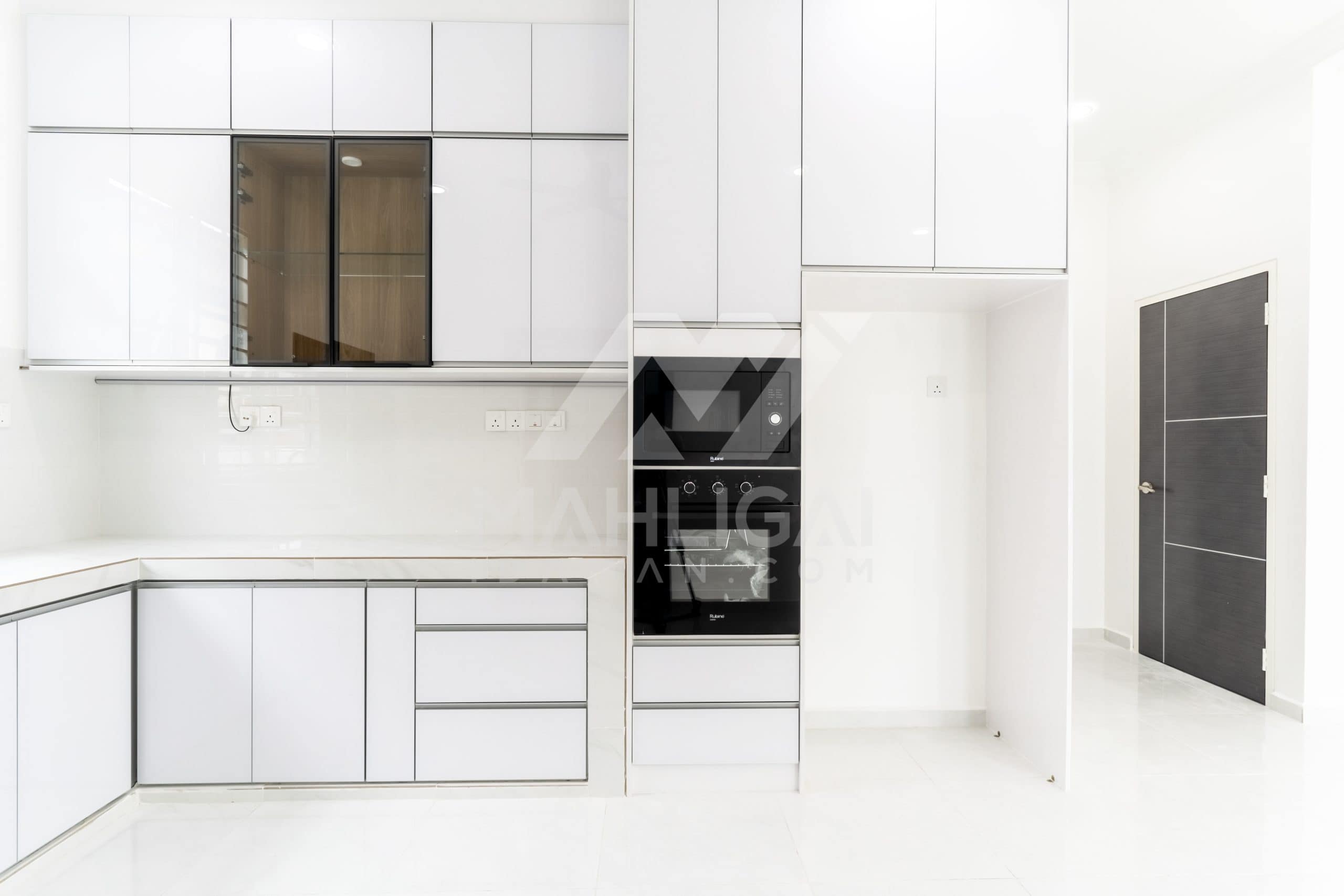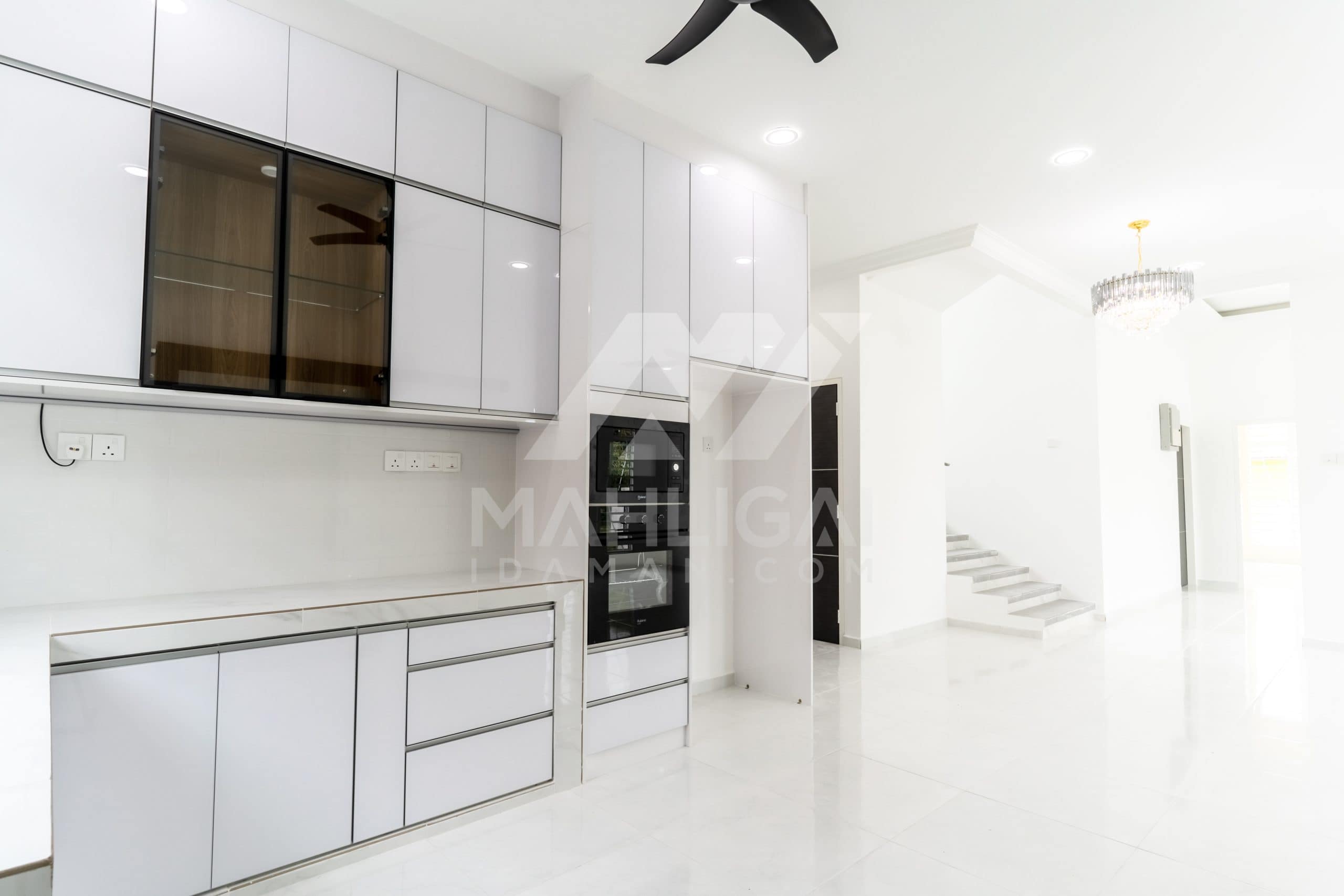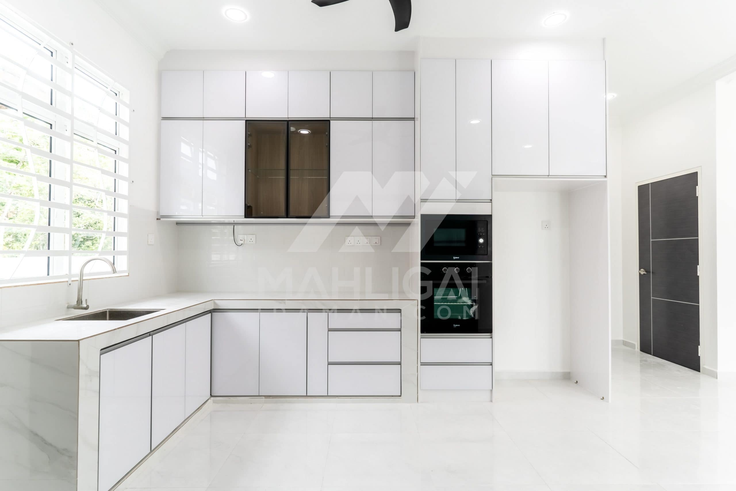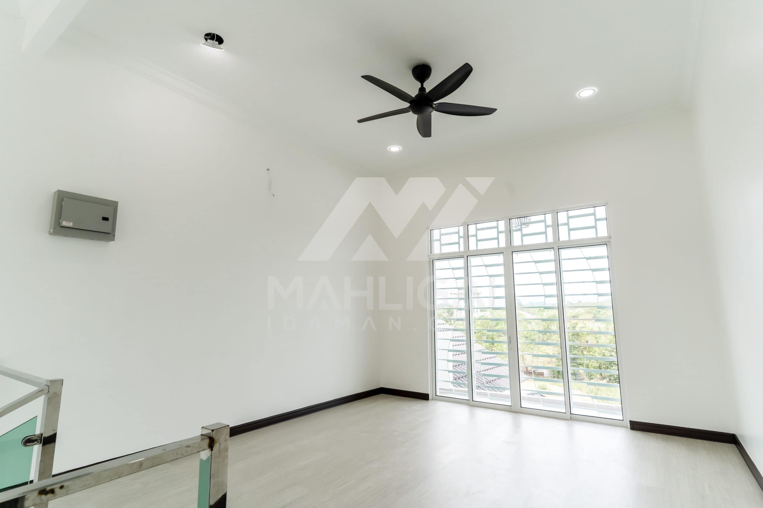 Banglo ini dibina dengan spesifikasi asas Pakej Gold dengan penambahan aksesori iaitu pemasangan cornice pada keseluruhan tingkap dan dinding luar rumah, groove line pada dinding di bahagian luar rumah.
