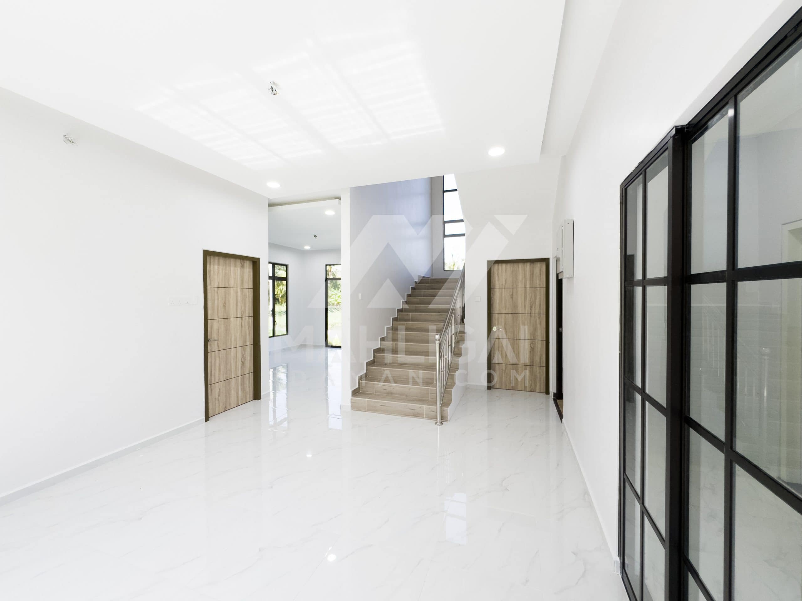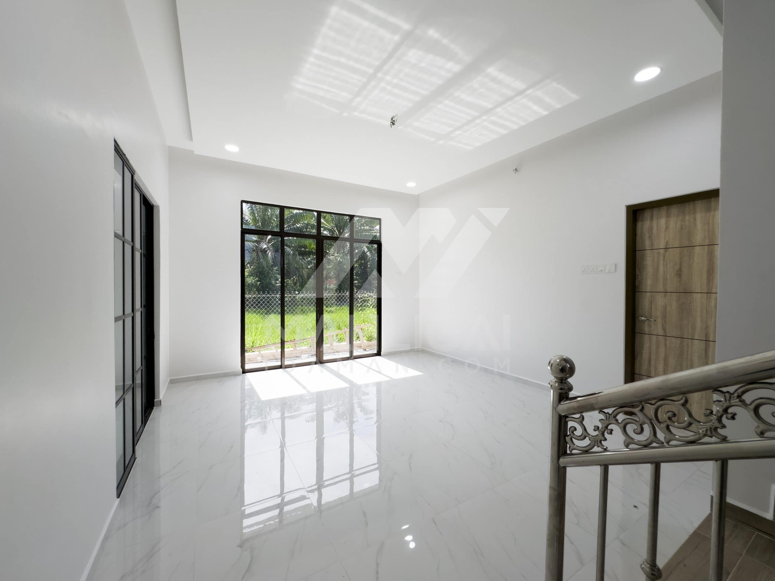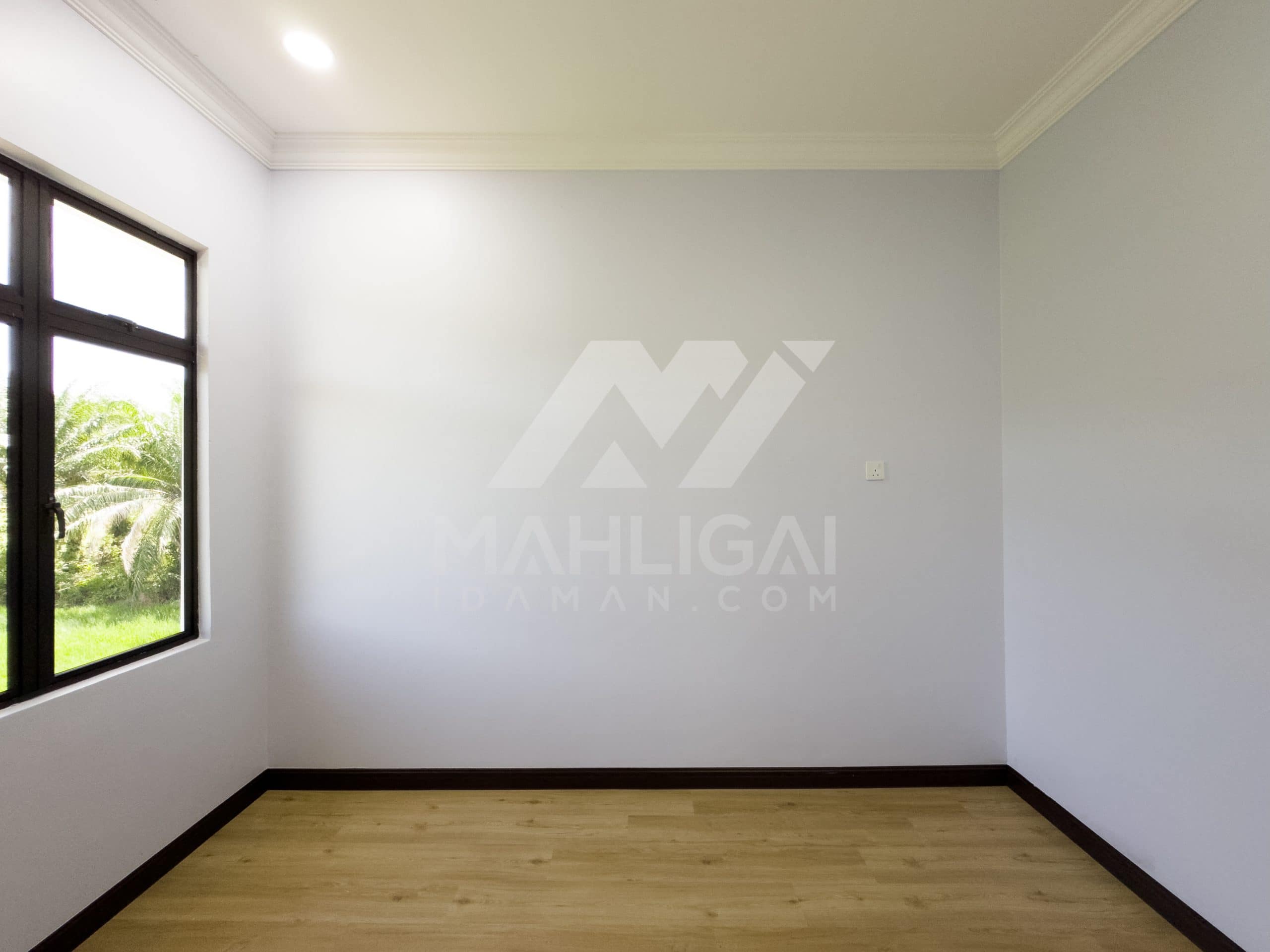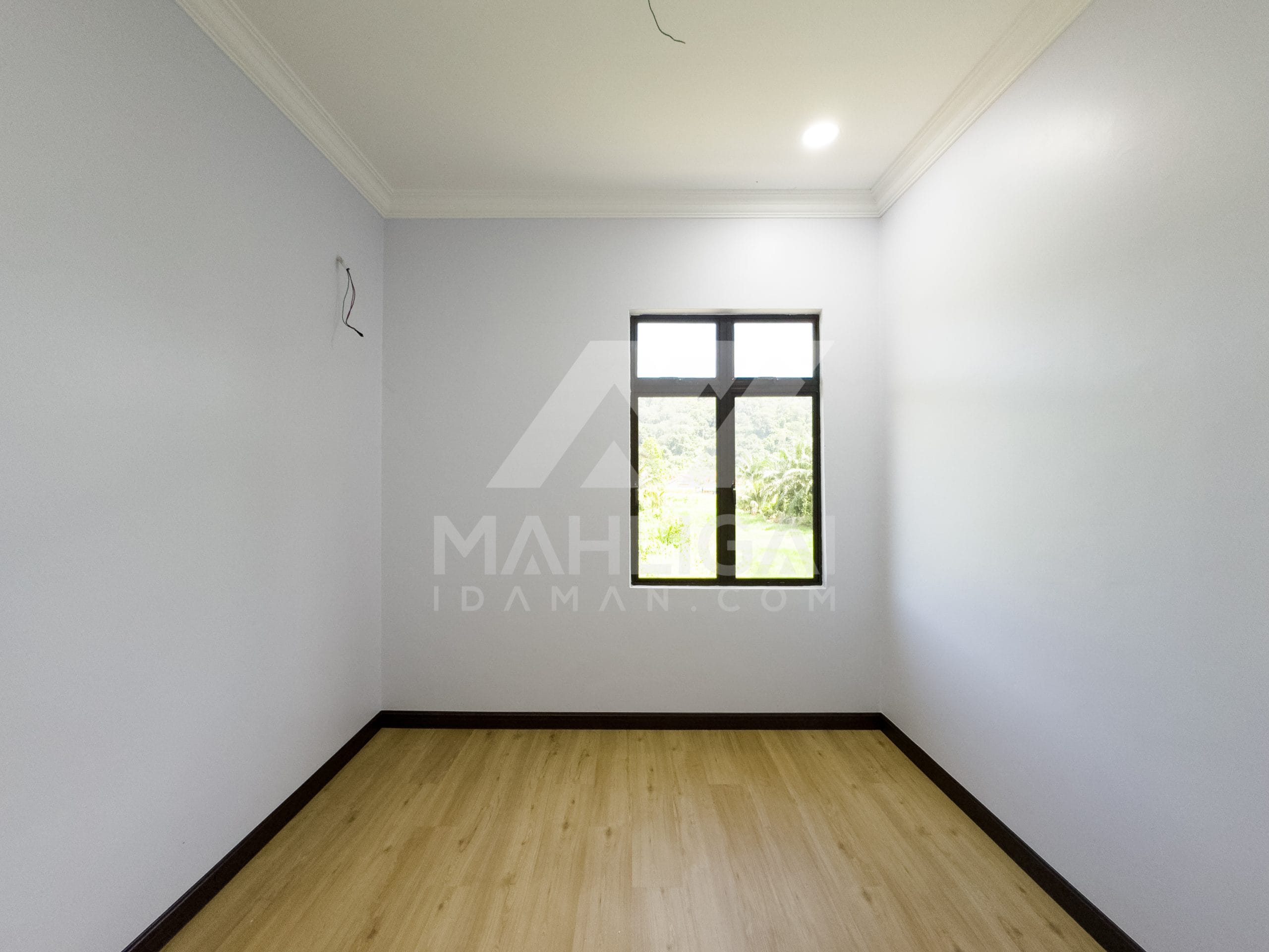 Banglo ini dibina dengan spesifikasi asas Pakej Gold dengan penambahan aksesori iaitu pemasangan cornice pada keseluruhan tingkap dan dinding luar rumah, groove line pada dinding di bahagian luar rumah.