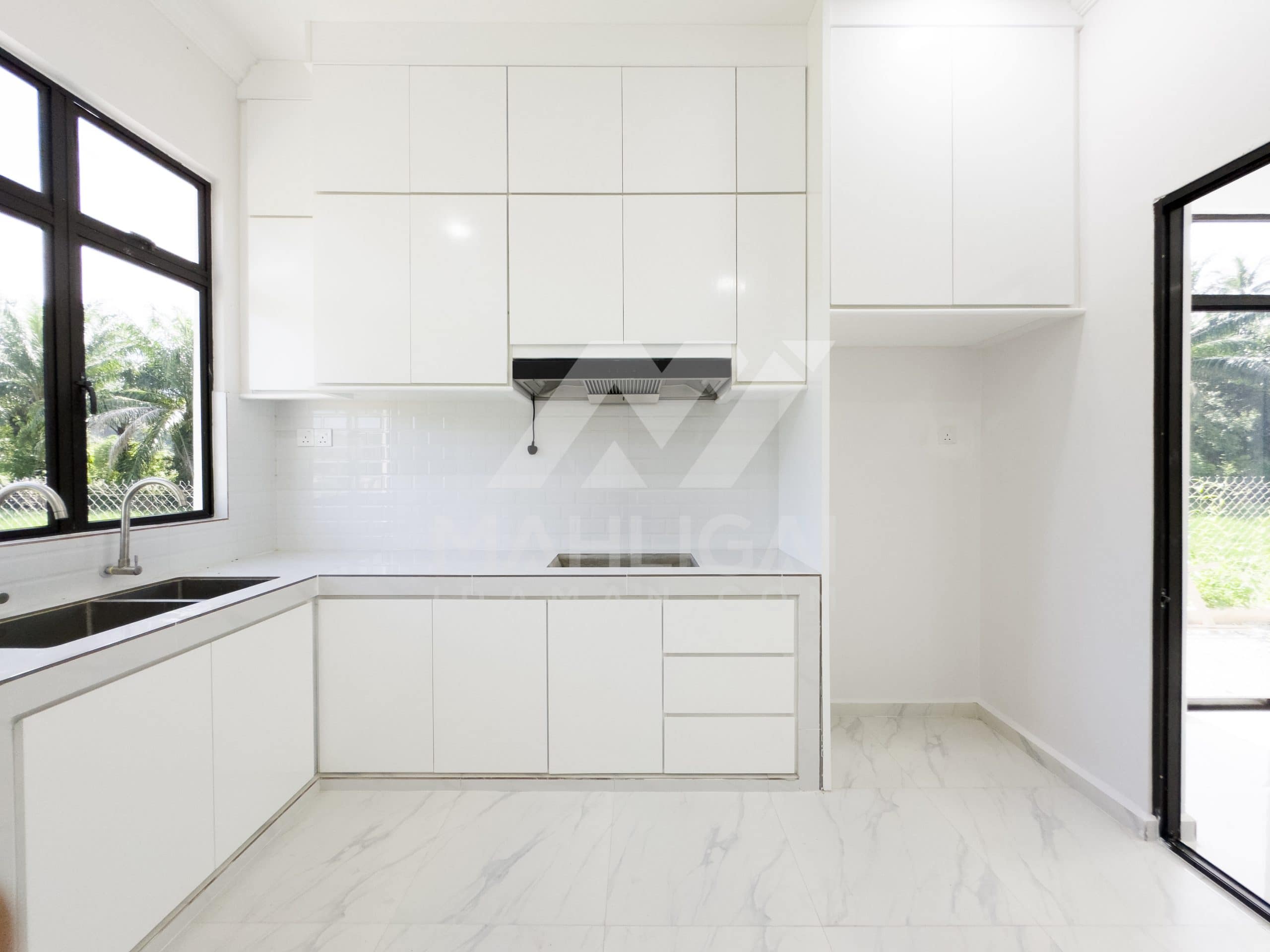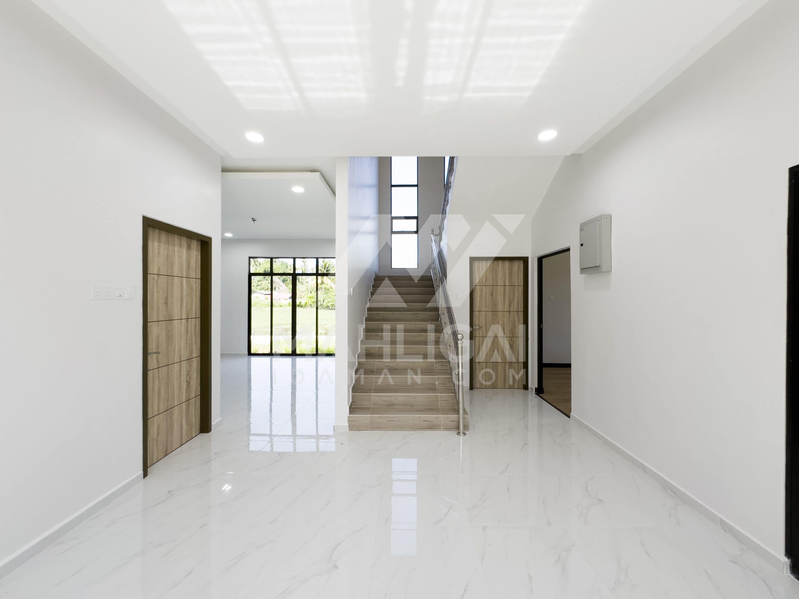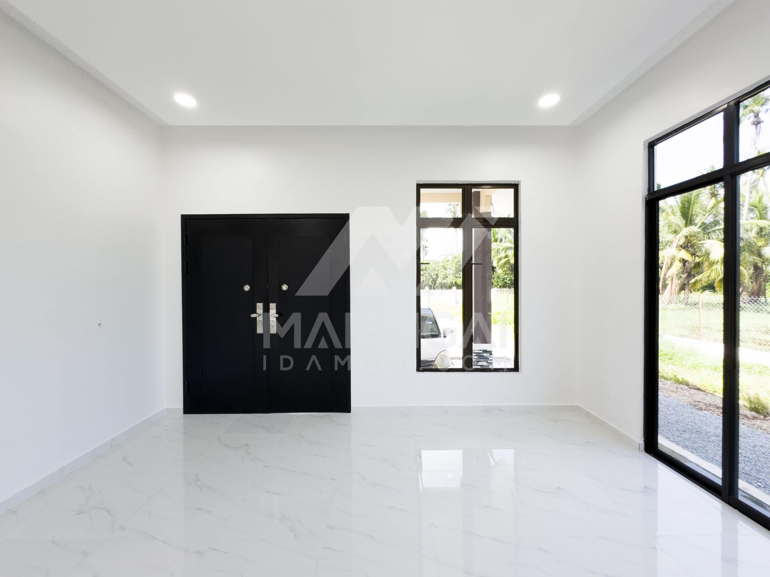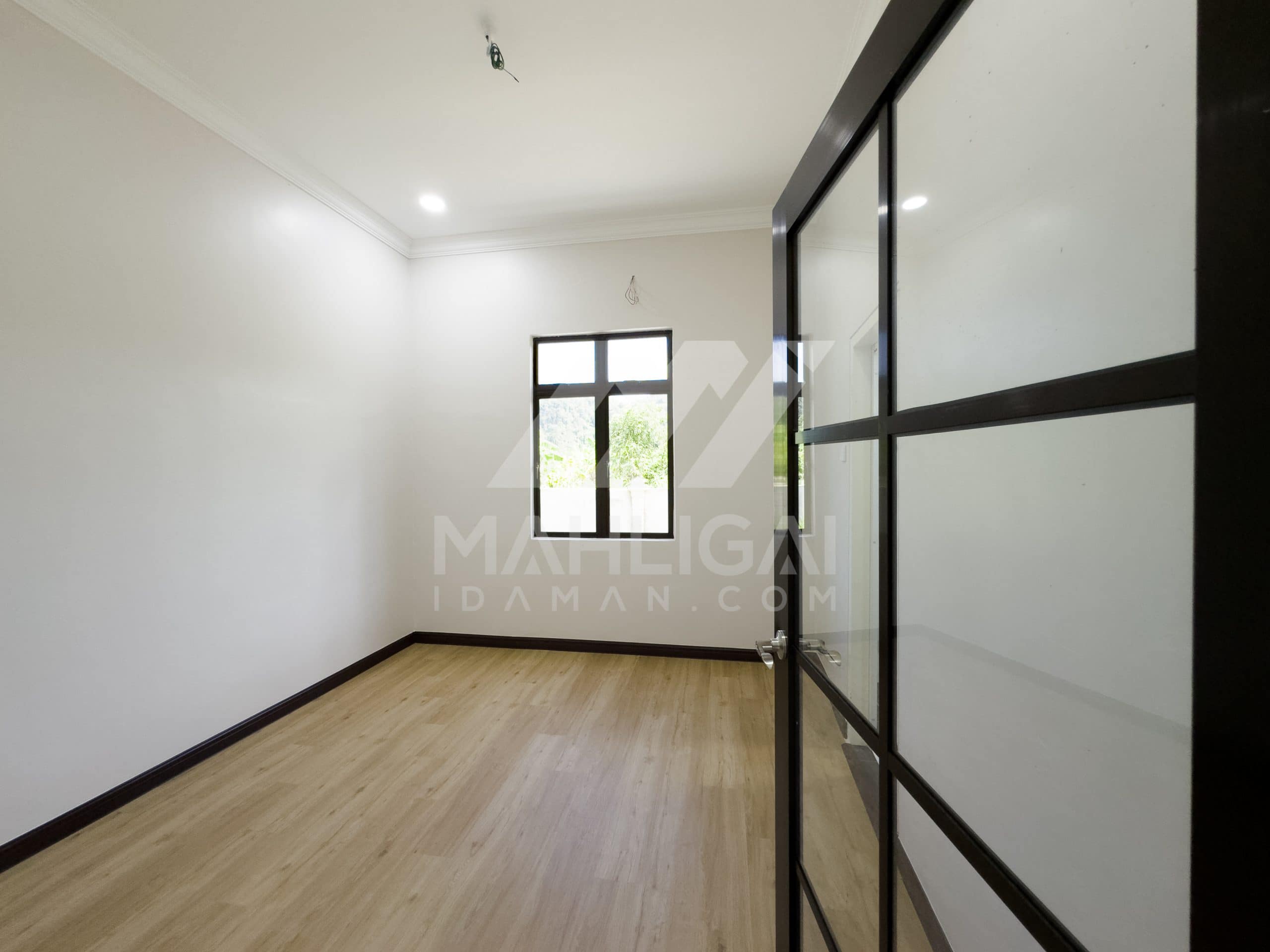 Banglo ini dibina dengan spesifikasi asas Pakej Gold dengan penambahan aksesori iaitu pemasangan cornice pada keseluruhan tingkap dan dinding luar rumah, groove line pada dinding di bahagian luar rumah.