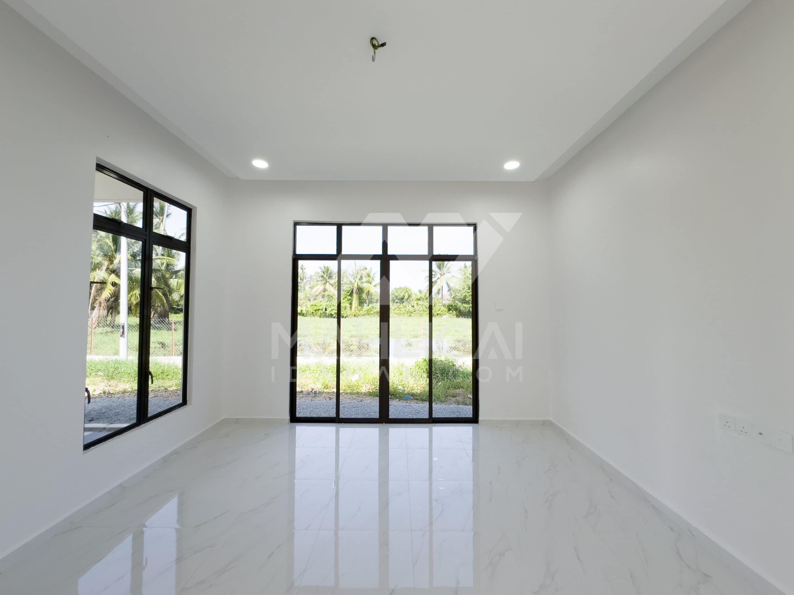 Kini banglo 2 tingkat milik klien kami Puan Che Rosmini telah siap dibina sepenuhnya di Gunong Bachok, Kelantan. Banglo ini dilengkapi dengan empat bilik tidur dan tiga bilik air. Banglo yang berkeluasan 1,854 kaki persegi ini menggabungkan ciri-ciri banglo moden iaitu dari segi rekabentuk dalaman dan luaran yang sangat menarik dari segi penggunaan warna cream dan coklat. Bahagian dalam rumah pula mereka memilih warna putih menaikkan lagi seri dan kemewahan dalam rumah.