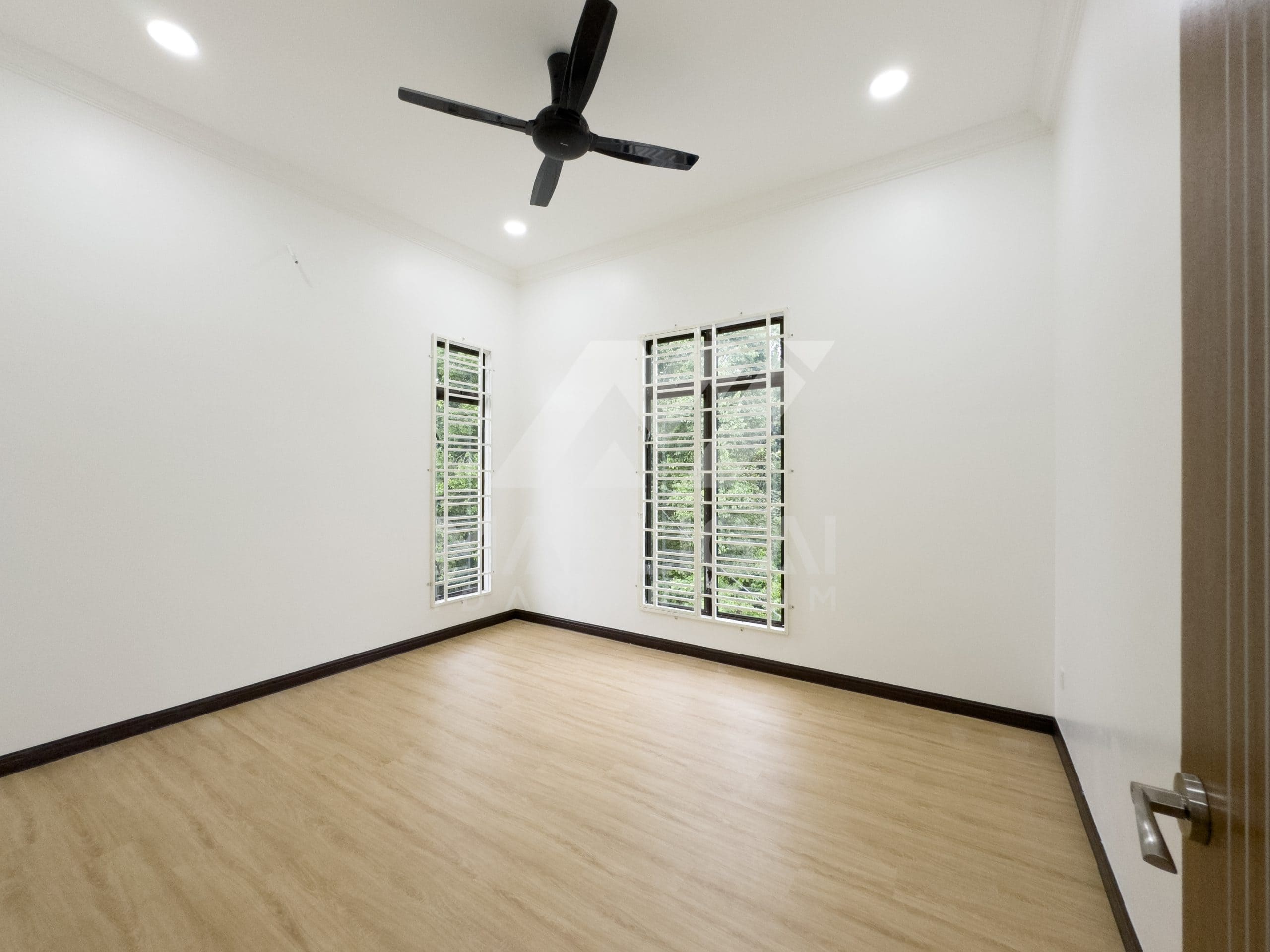Banglo ini dibina dengan spesifikasi asas Pakej Gold dengan penambahan aksesori iaitu pemasangan cornice pada keseluruhan tingkap dan dinding luar rumah, groove line pada dinding di bahagian luar rumah.