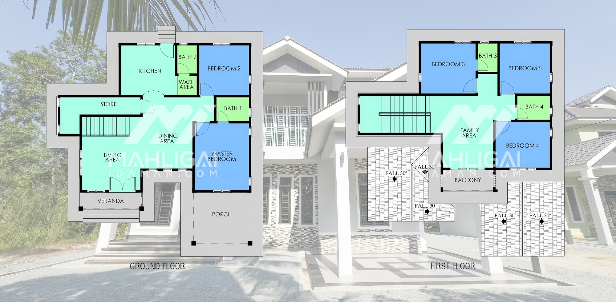 Banglo dua tingkat milik klien kami Puan Hasmaniza telah siap dibina sepenuhnya di Bakong, Pasir Mas, Kelantan. Banglo ini dilengkapi dengan lima (5) bilik tidur dan empat (4) bilik air. Banglo yang berkeluasan 2,431 kaki persegi ini menggabungkan ciri-ciri banglo moden iaitu dari segi rekabentuk dalaman dan luaran yang sangat menarik dari segi penggunaan warna Biru dan Purple. Bahagian dalam rumah pula mereka memilih warna putih , hijau dan violet menaikkan lagi seri dan kemewahan dalam rumah.