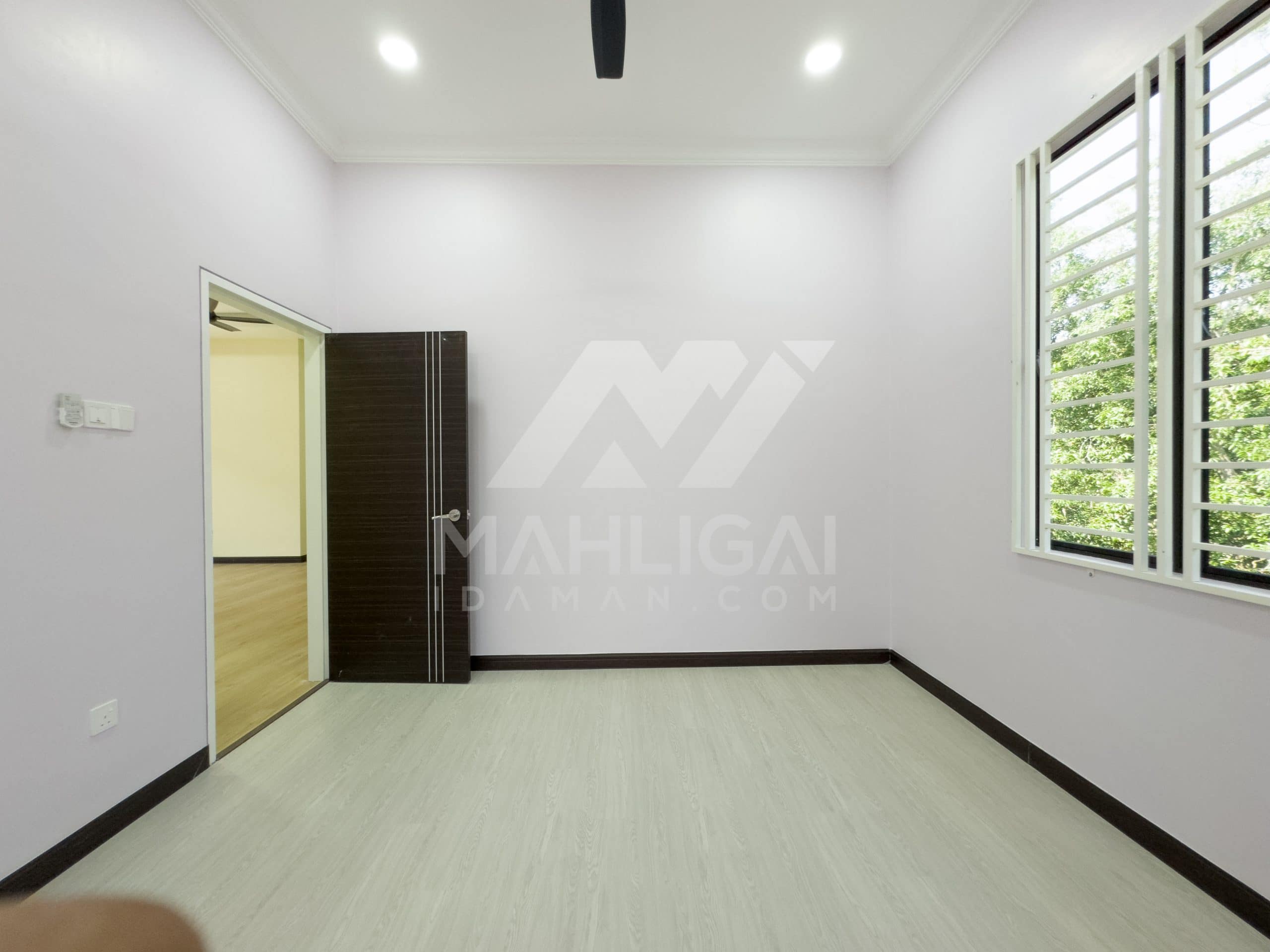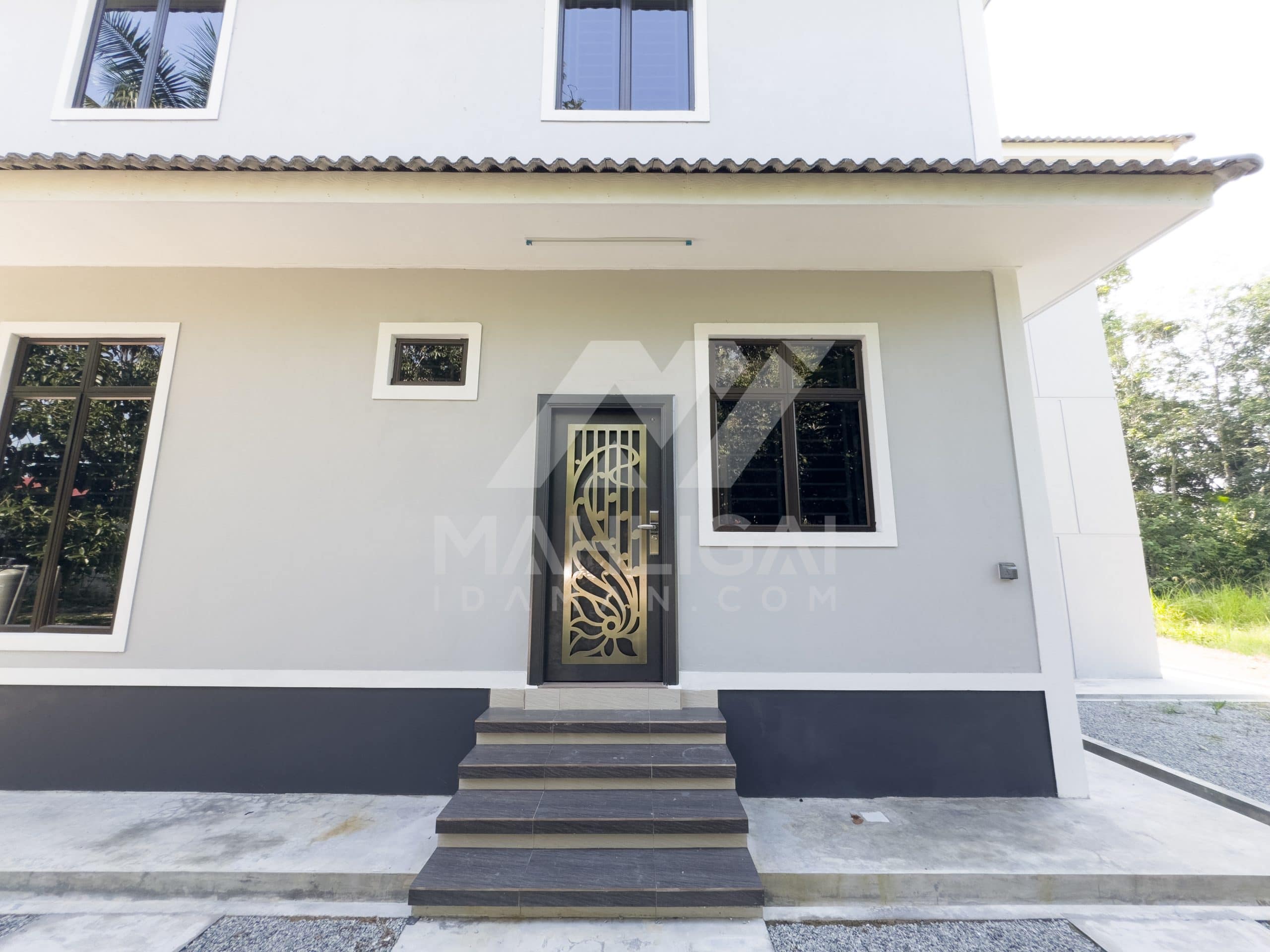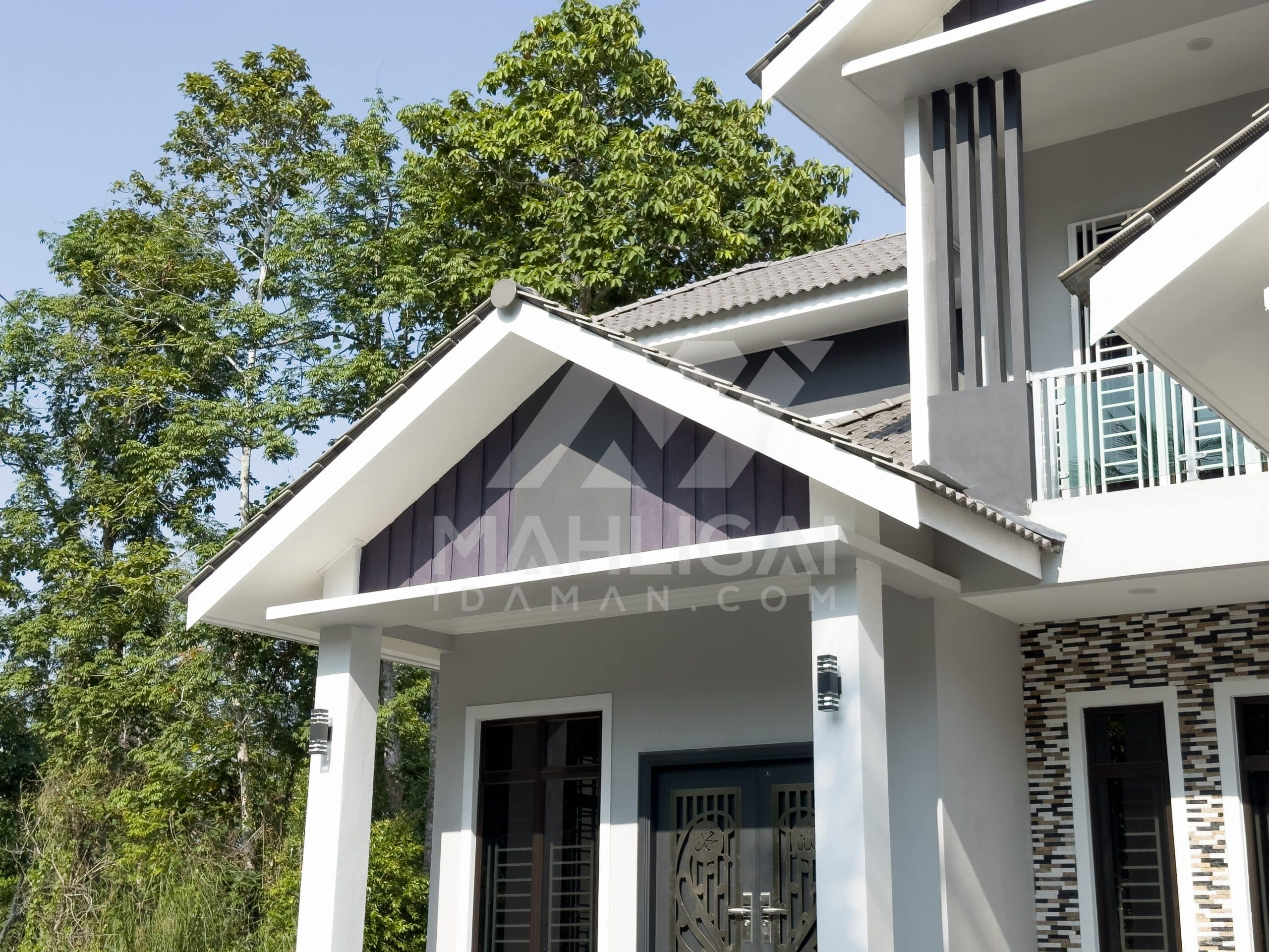 Banglo ini dibina dengan spesifikasi asas Pakej Gold dengan penambahan aksesori iaitu pemasangan cornice pada keseluruhan tingkap dan dinding luar rumah, groove line pada dinding di bahagian luar rumah.