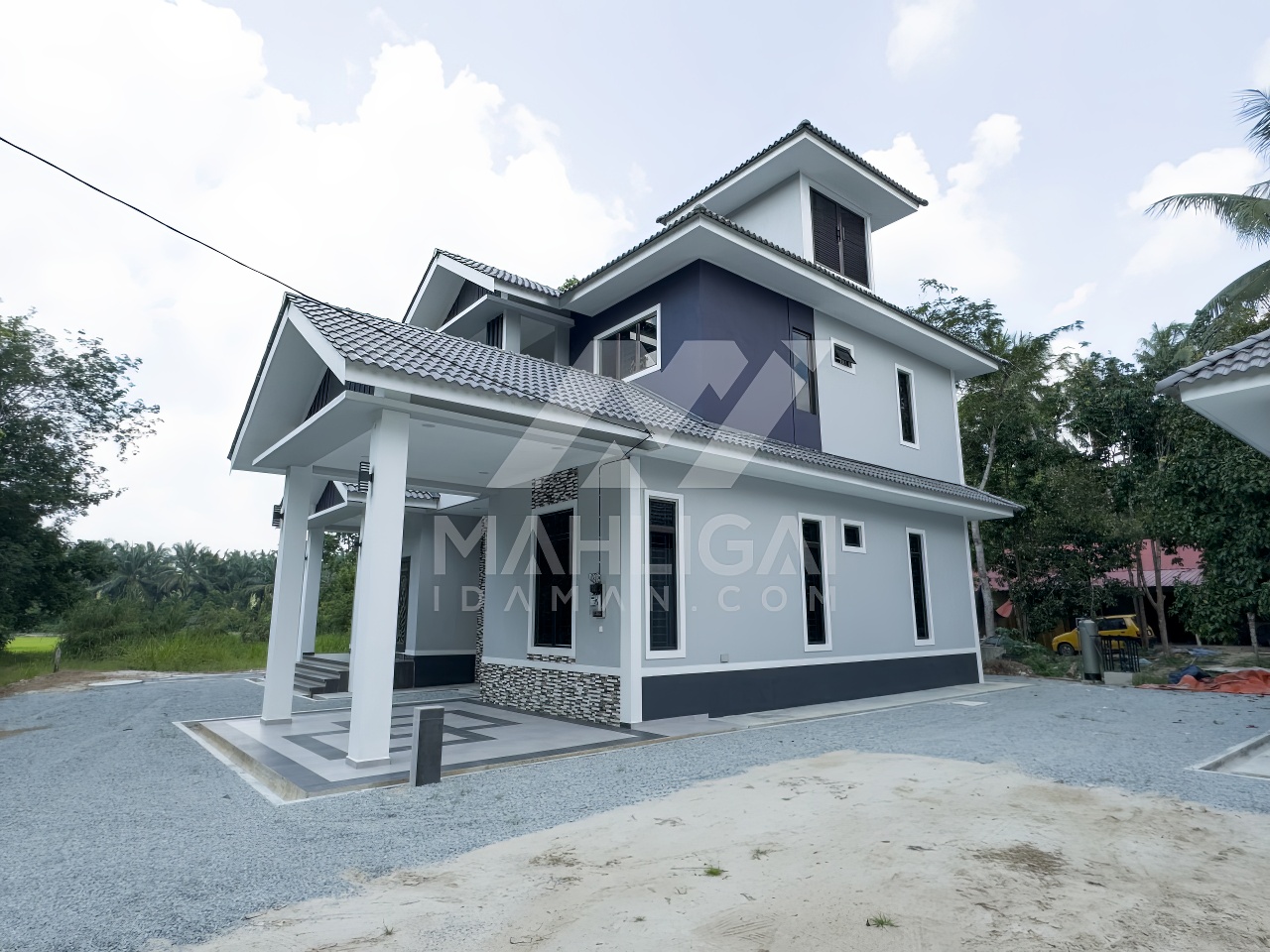 Banglo dua tingkat milik klien kami Puan Hasmaniza telah siap dibina sepenuhnya di Bakong, Pasir Mas, Kelantan. Banglo ini dilengkapi dengan lima (5) bilik tidur dan empat (4) bilik air. Banglo yang berkeluasan 2,431 kaki persegi ini menggabungkan ciri-ciri banglo moden iaitu dari segi rekabentuk dalaman dan luaran yang sangat menarik dari segi penggunaan warna Biru dan Purple. Bahagian dalam rumah pula mereka memilih warna putih , hijau dan violet menaikkan lagi seri dan kemewahan dalam rumah.